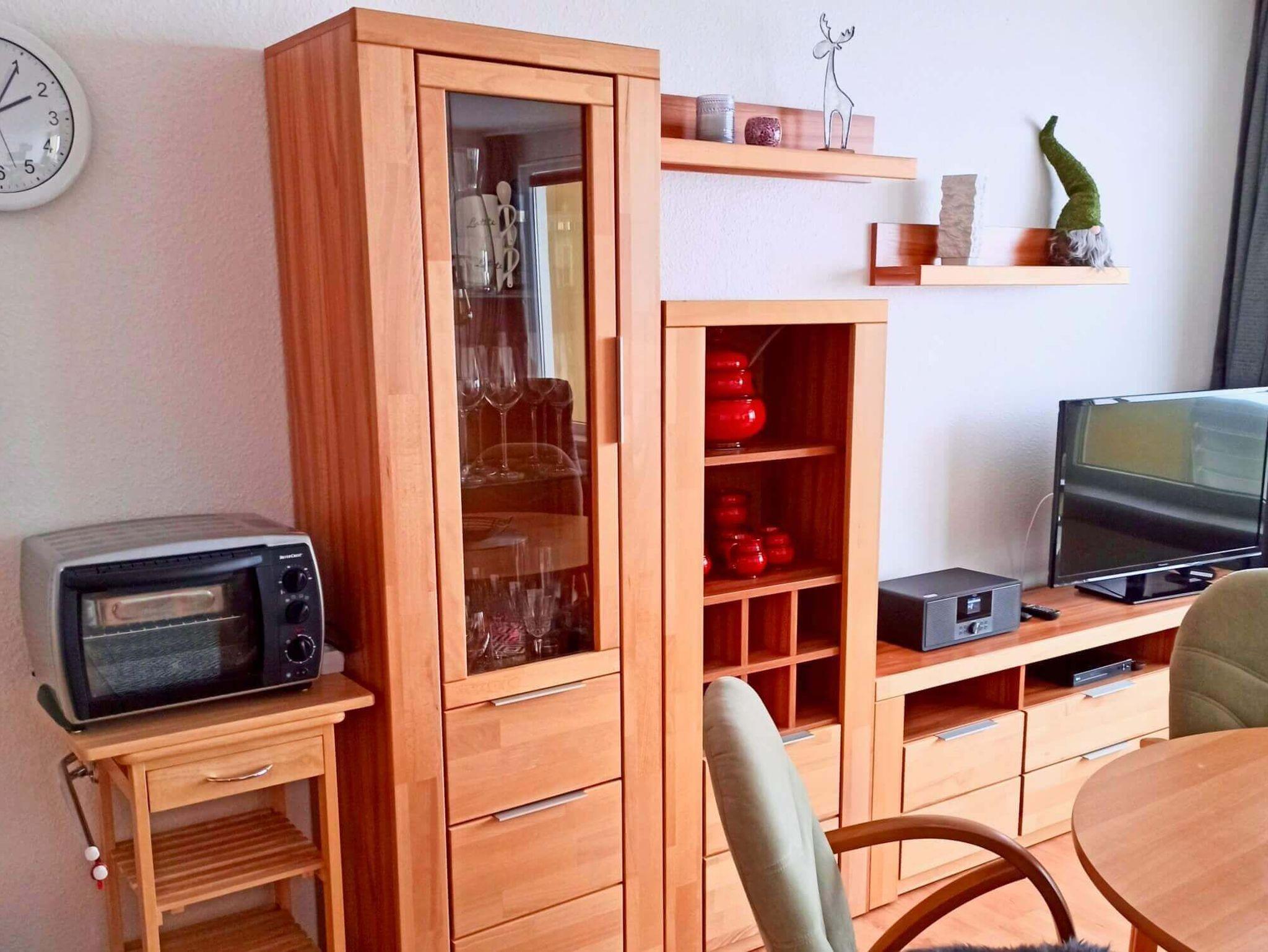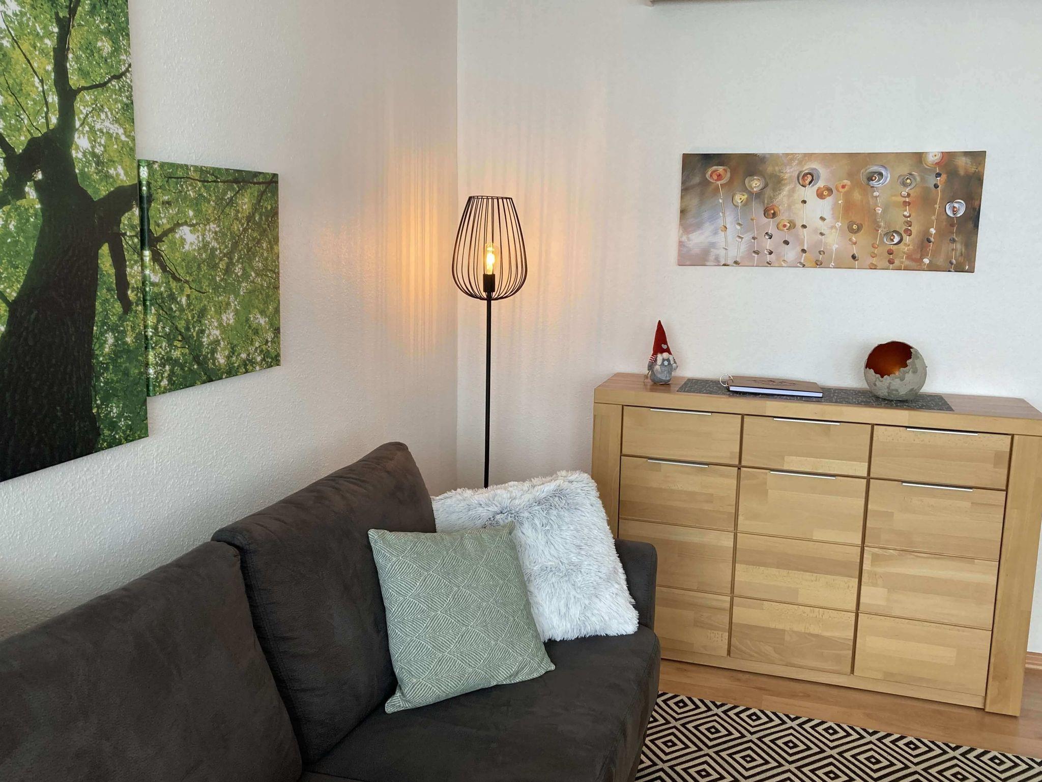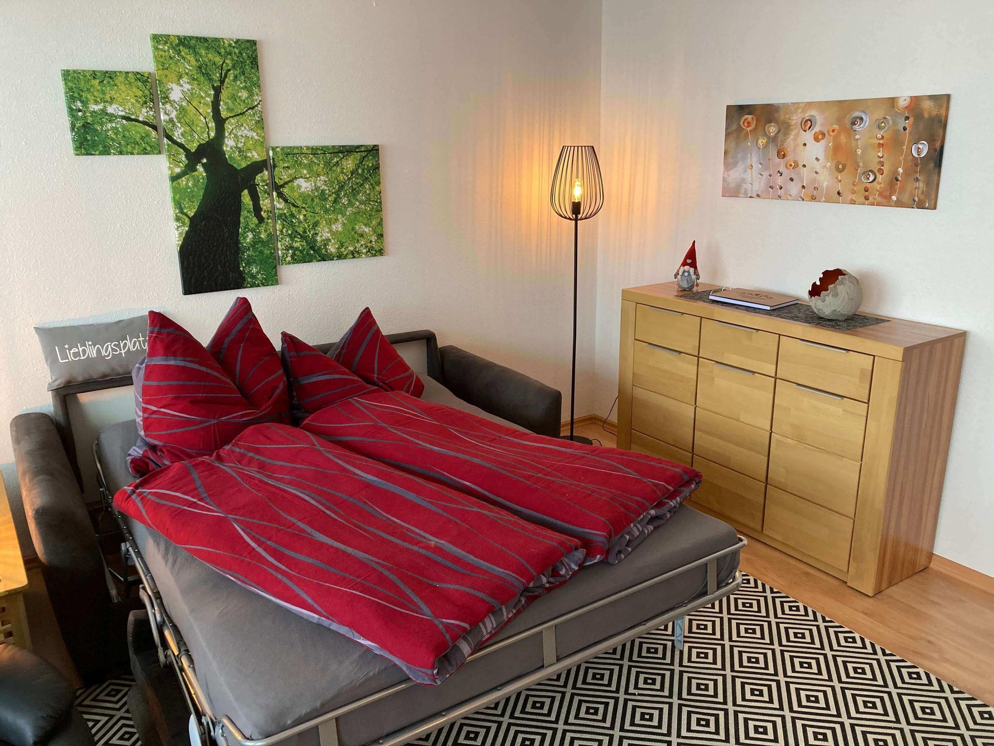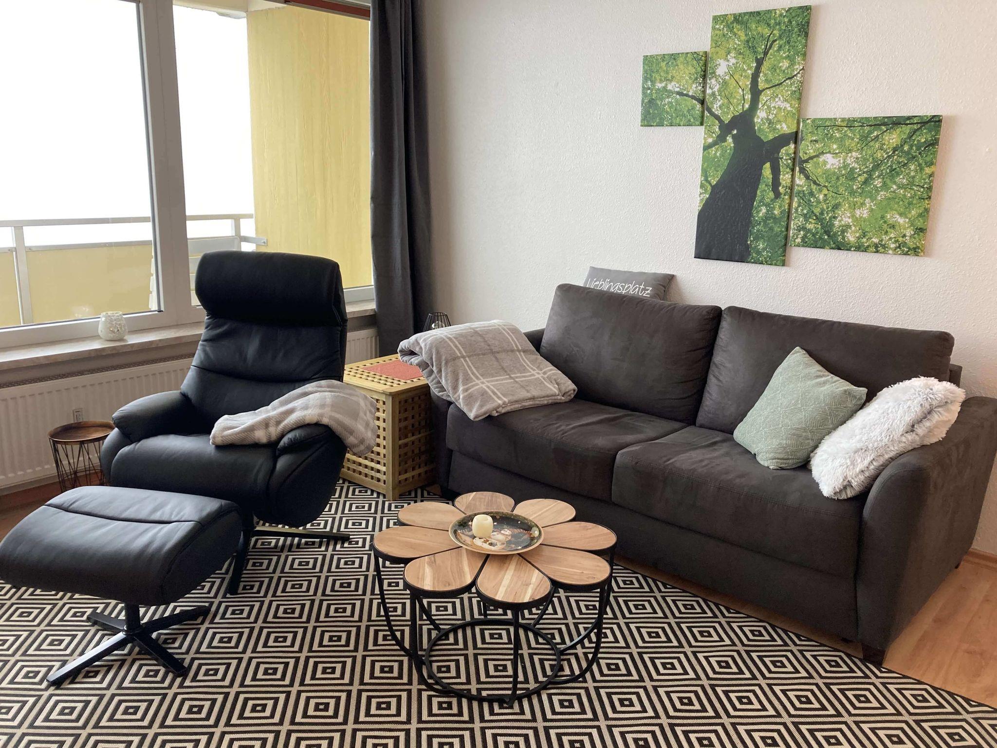Die Ferienwohnung ist modern, hochwertig und ansprechend ausgestattet. Das Apartment verfügt über ein separates Schlafzimmer mit 2 Einzelbetten und einem großen Kleiderschrank. Ein Schlafsofa (140 x 200 cm) im Wohnbereich bietet 2 weiteren Personen Platz. Es steht eine umfangreiche Medienausstattung mit Smart-TV, Blu-ray Player, WLAN, Internetradio mit Spotify-Connect und CD-Player zur Verfügung.