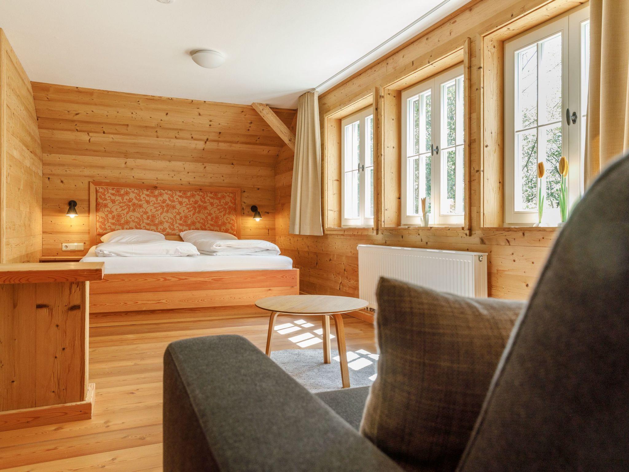 Two bathrooms, an additional WC, a fully equipped kitchen as well as an electric charging station and parking spaces on the property ensure comfort. Numerous hiking trails, mountain bike routes and winter sports facilities start right outside the door - a stylish retreat for every season.