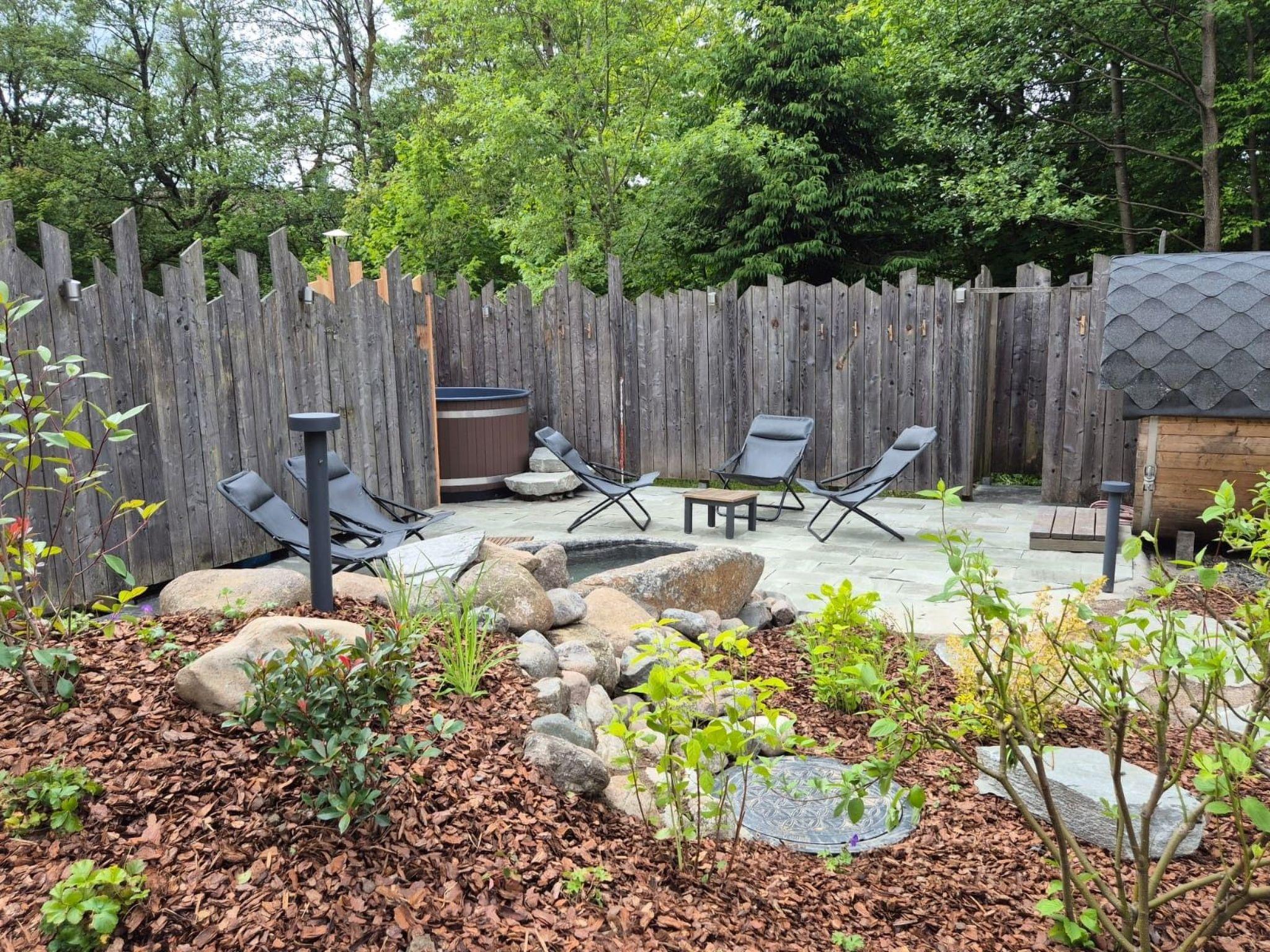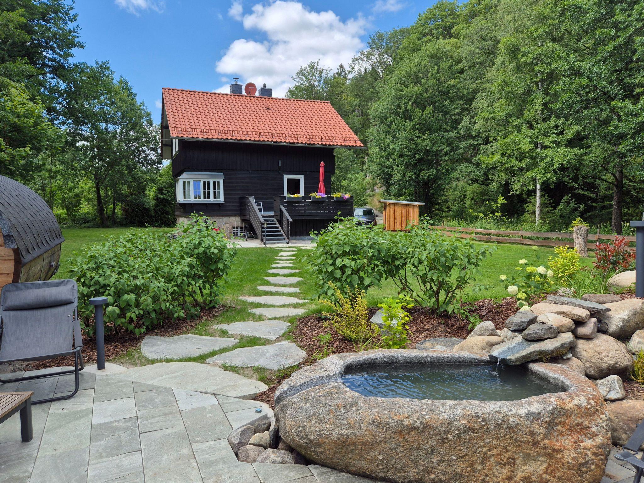 A highlight is the private sauna garden with outdoor sauna, rock tub, hot tub and outdoor shower - perfect for relaxing hours in the open air. The fully fenced property offers plenty of space and privacy, ideal for families, couples or nature lovers.