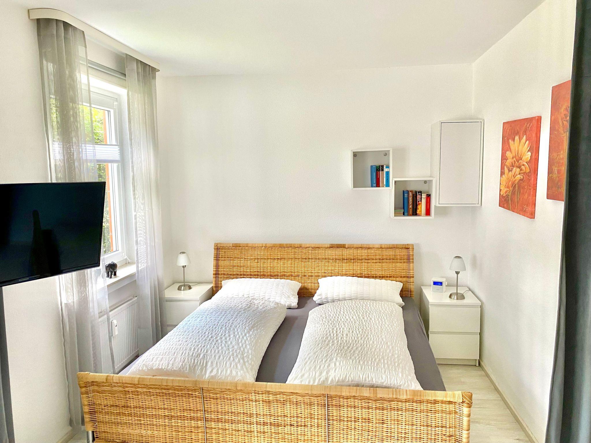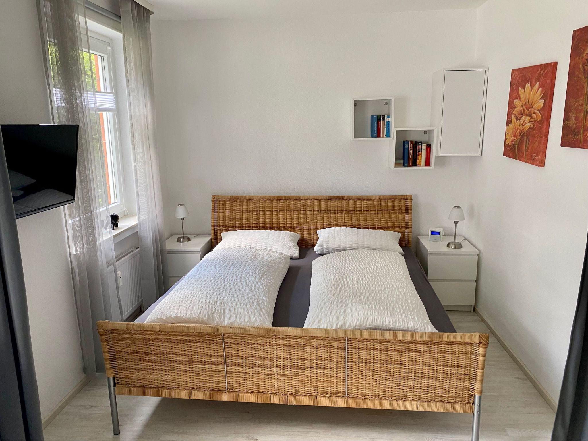 The approx. 35m² flat is characterised by a practical and well thought-out interior. A cosy double bed in a separate alcove in the living room guarantees restful nights. Entertainment is provided by an HD flat-screen TV and a radio with CD player. Thanks to the efficiently equipped kitchen with dishwasher, two hotplates, a mini oven, a filter coffee machine, kettle and other useful kitchen utensils, you can easily cater for yourself during your stay. A beautifully designed bathroom with shower completes the offer. WLAN is of course at your disposal.