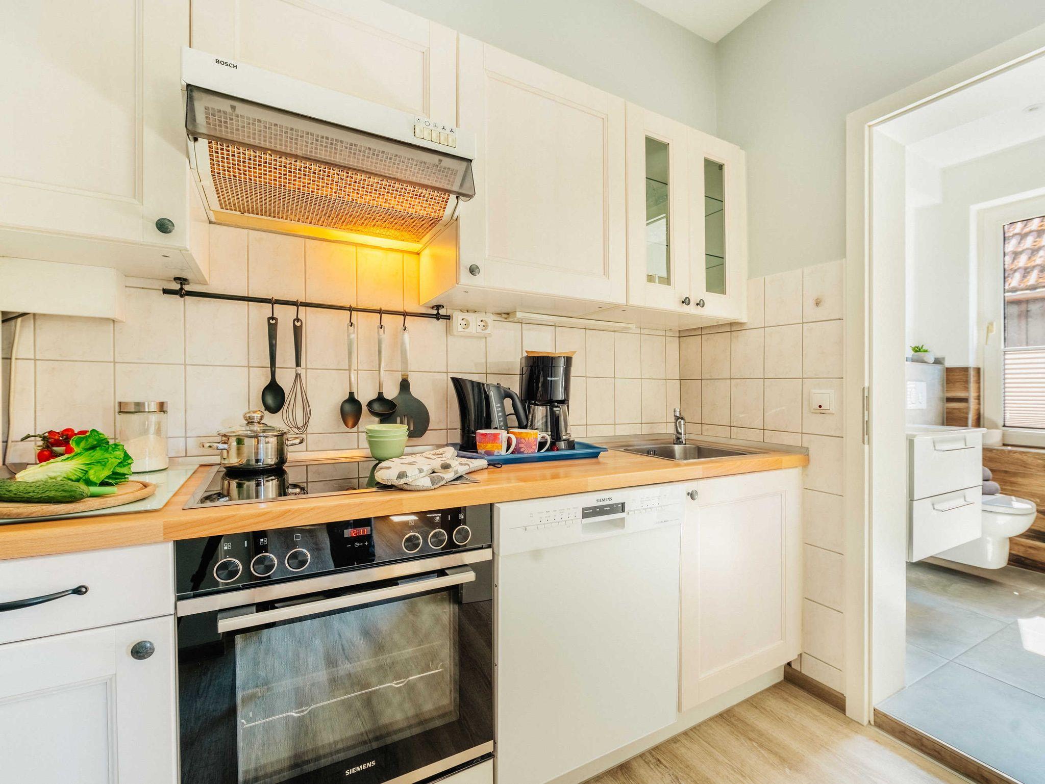 Küche mit Ceran-Kochfeld, Mikrowelle, Geschirrspüler, elektrischen Wasserkocher und Toaster sind selbstverständlich.