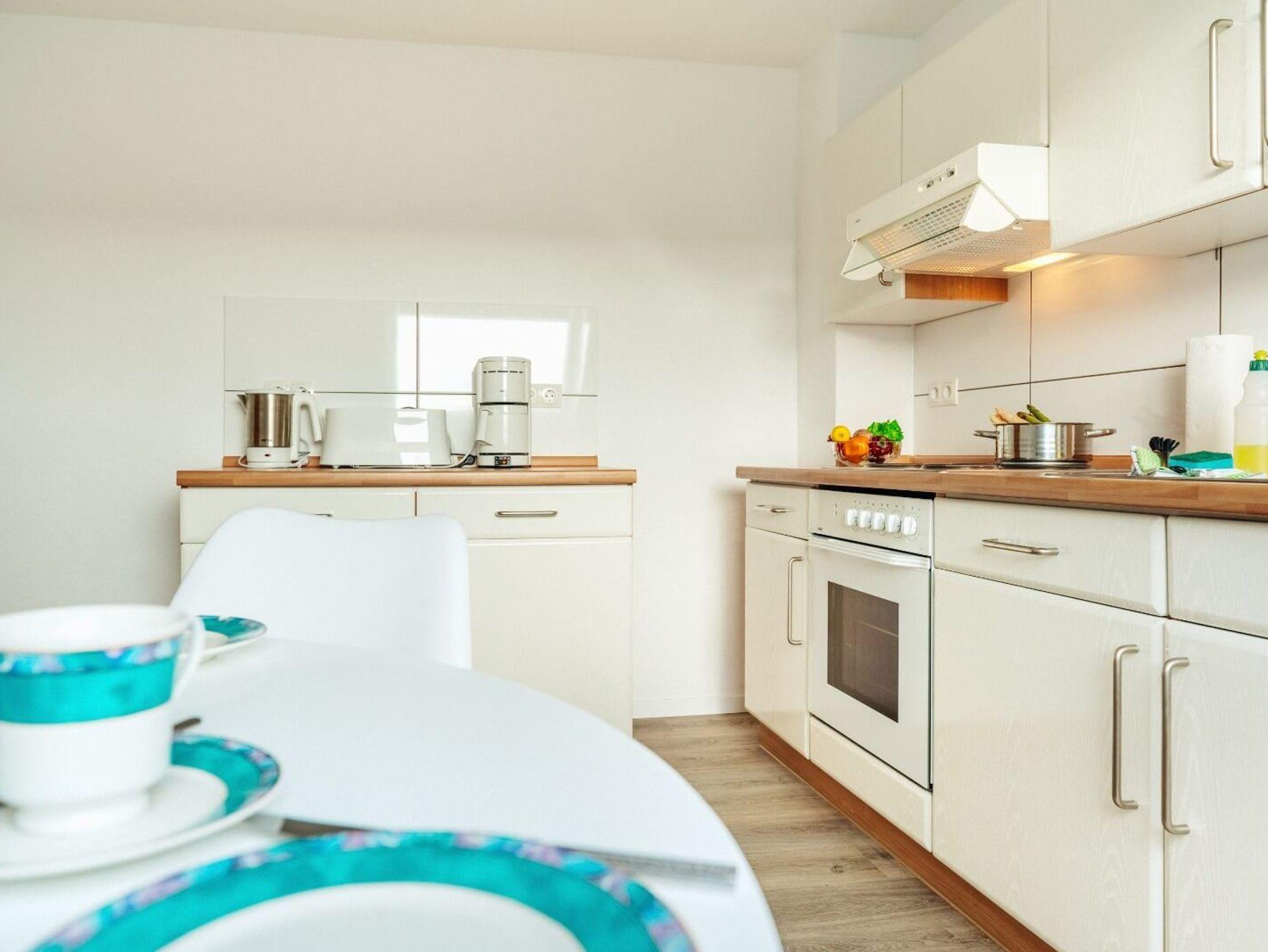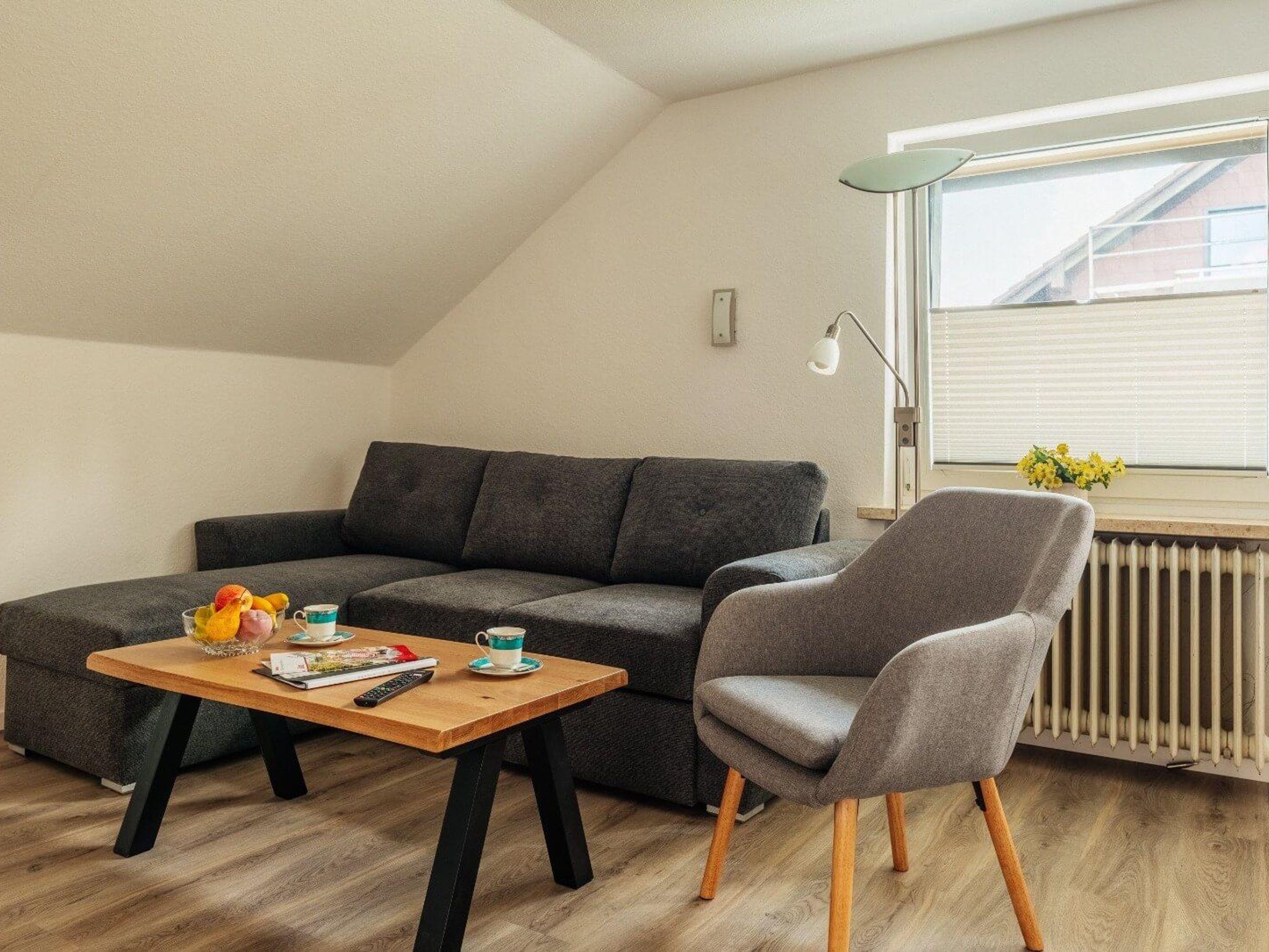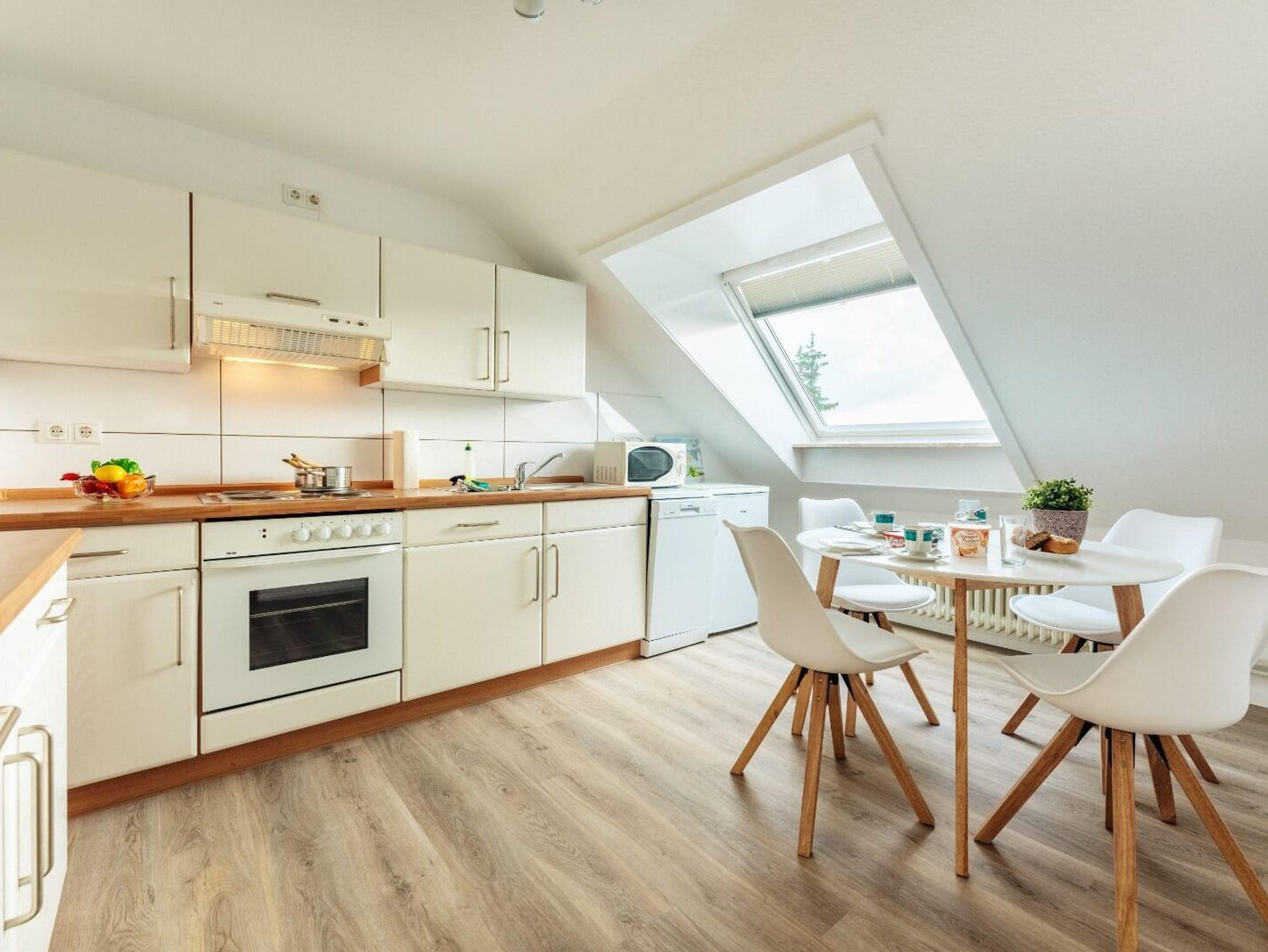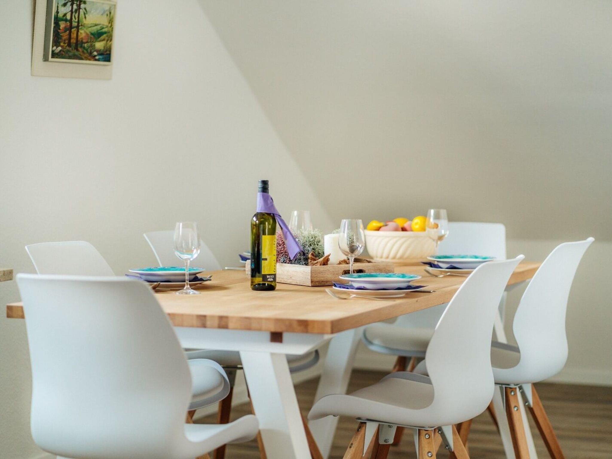 Die Bergfried 2 besteht aus einem gemütlichem Wohnzimmer mit großem, hellen Essplatz, 1 Schlafcouch für 2 Personen, einer voll ausgestatteten Küche mit Geschirrspüler, 3 Schlafzimmer mit Doppelbett (180x200), 2 Bäder mit Dusche und WC und bietet somit Platz für 8 Personen.
