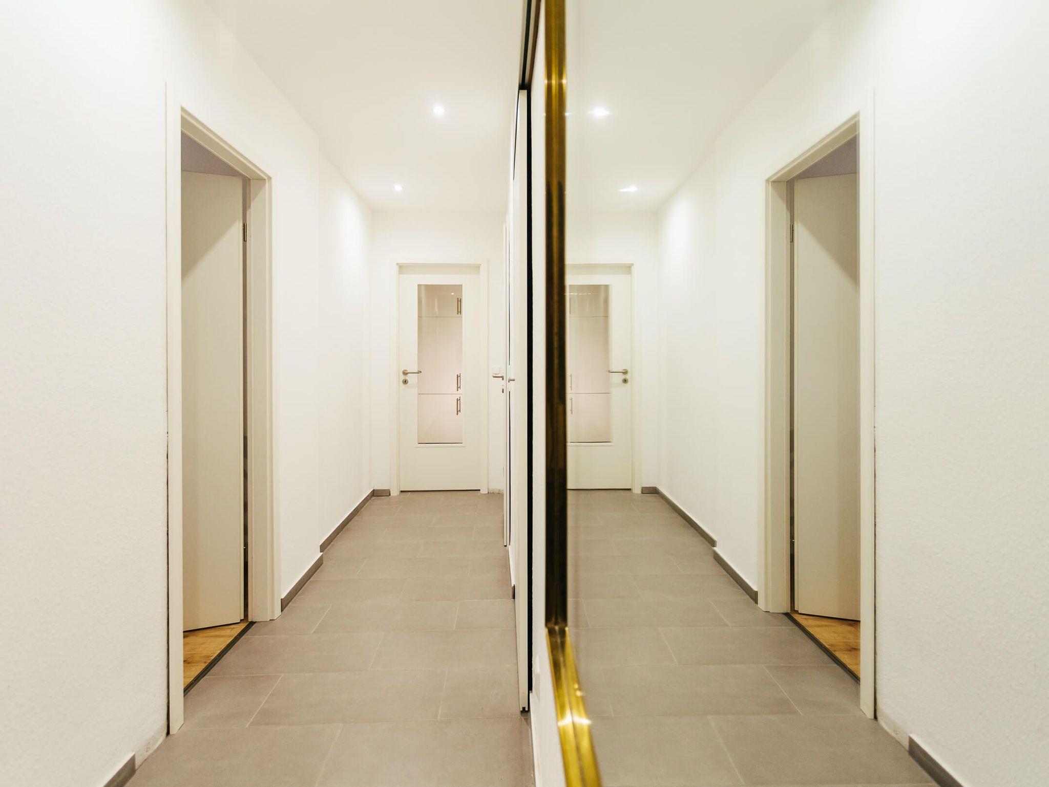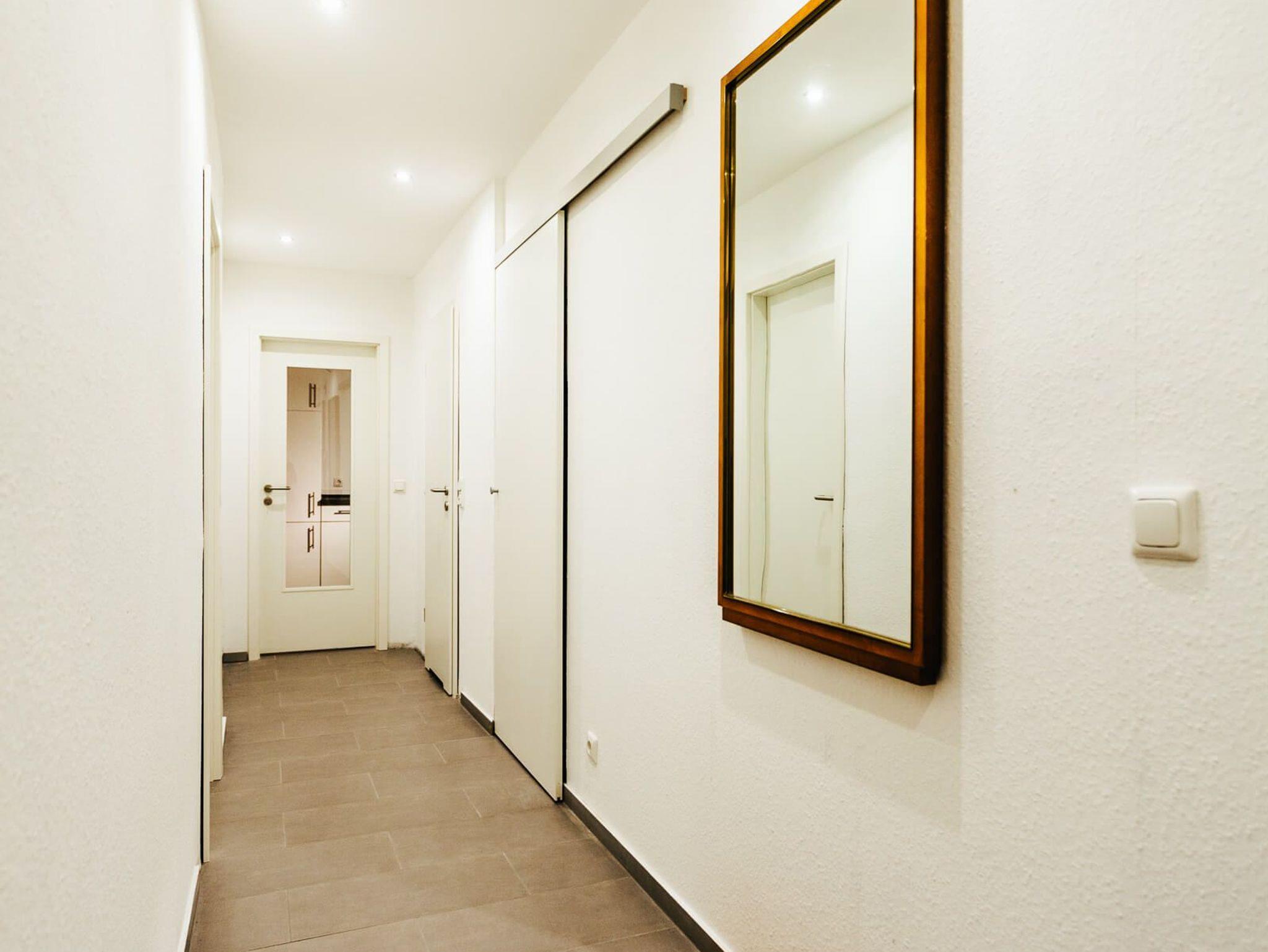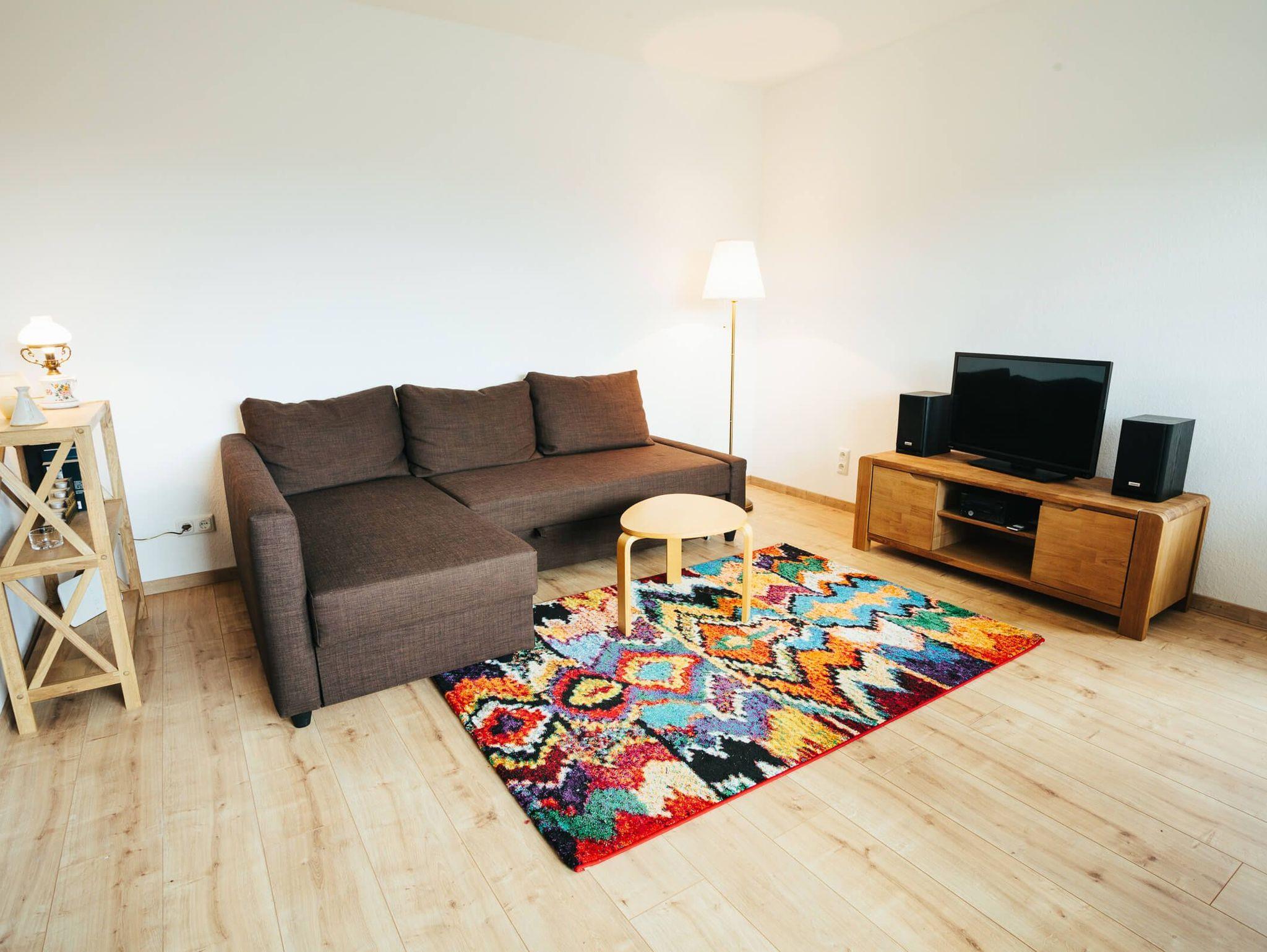 Die Wohnung ist komplett mit hellem, freundlichem Laminat und Fliesen ausgestattet.