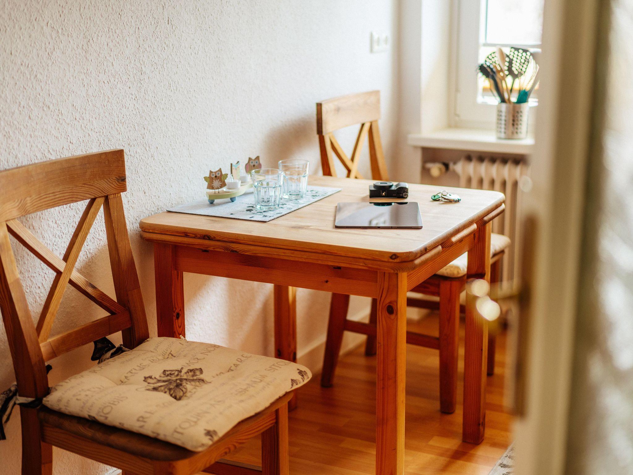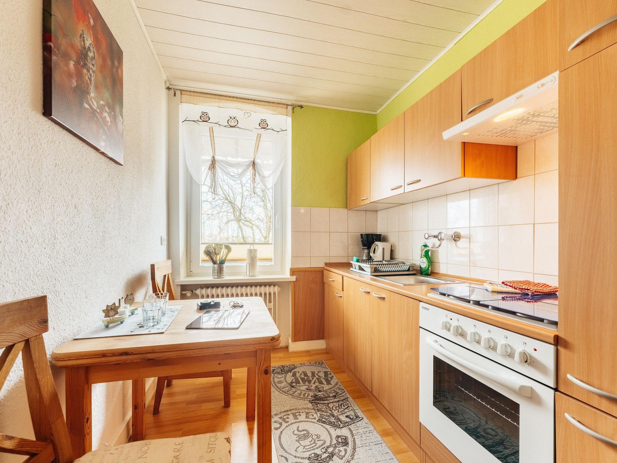 Die gemütlich eingerichtete Ferienwohnung bietet zwei separate Schlafzimmer mit jeweils großem Doppelbett und eignet sich für bis zu fünf Personen; im Wohnbereich erwarten Sie eine komfortable Sofalandschaft mit TV und Radio sowie eine Essecke für gemeinsame Mahlzeiten, während die vollständig ausgestattete Küchenzeile mit Kühlschrank inklusive Gefrierfach, Elektroherd mit Backofen, Mikrowelle, Toaster, Kaffeemaschine, Wasserkocher sowie umfangreichem Geschirr und Kochutensilien optimale Voraussetzungen für die Selbstversorgung schafft; das helle Badezimmer verfügt über eine großzügige, begehbare Dusche, WC und praktische Ablagemöglichkeiten, Rauchwarnmelder sorgen für Sicherheit, und im Mietpreis sind WLAN (ohne Gewähr bei Störungen), Wasser, Strom, Heizung, Bettwäsche und Handtücher bereits enthalten; ein Babybett sowie ein Kinderhochstuhl können kostenfrei bereitgestellt werden.