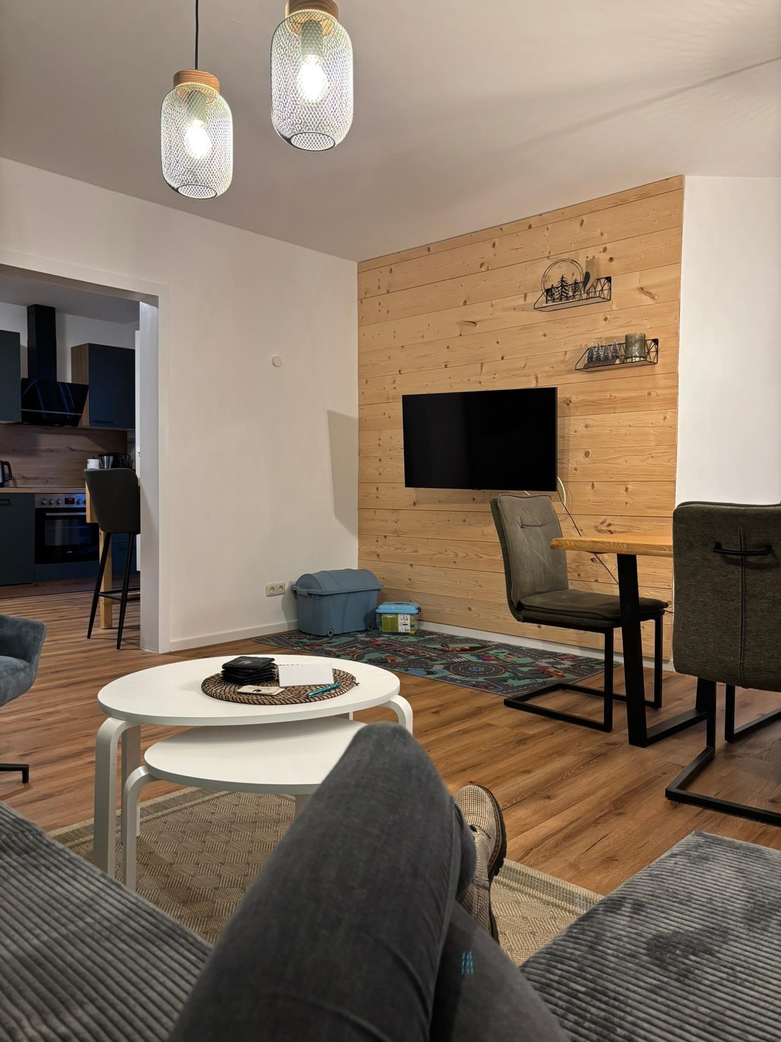 Diese Wohnung befindet sich im 1. Obergeschoss und hat eine Größe von ca. 91m². Sie verfügt über 2 Schlafzimmer, die jeweils mit einem komfortablen Doppelbett (Boxspring) für erholsame Nächte und 1 Schlafzimmer mit je 2 Einzelbetten ausgestattet ist. Eine voll ausgestattete Küche für Selbstversorger und ein gemütliches Wohnzimmer mit TV. Kostenloses W-Lan steht ihnen ebenfalls zu Verfügung. Außerdem ein modernes Badezimmer mit bodentiefer begehbarer Dusche und einem Haarföhn. Zudem steht im Keller eine Waschmaschine und ein Trockner zur Verfügung. Abstellmöglichkeiten für Fahrräder, Schlitten, etc sind vorhanden. Außerdem gibt es eine Parkmöglichkeit pro Wohnung auf dem Grundstück. Die Wohnung verfügt über Bettwäsche und Handtücher. Sollte ein Hund mitgebucht werden fällt eine zusätzliche Endreinigungsgebür an.