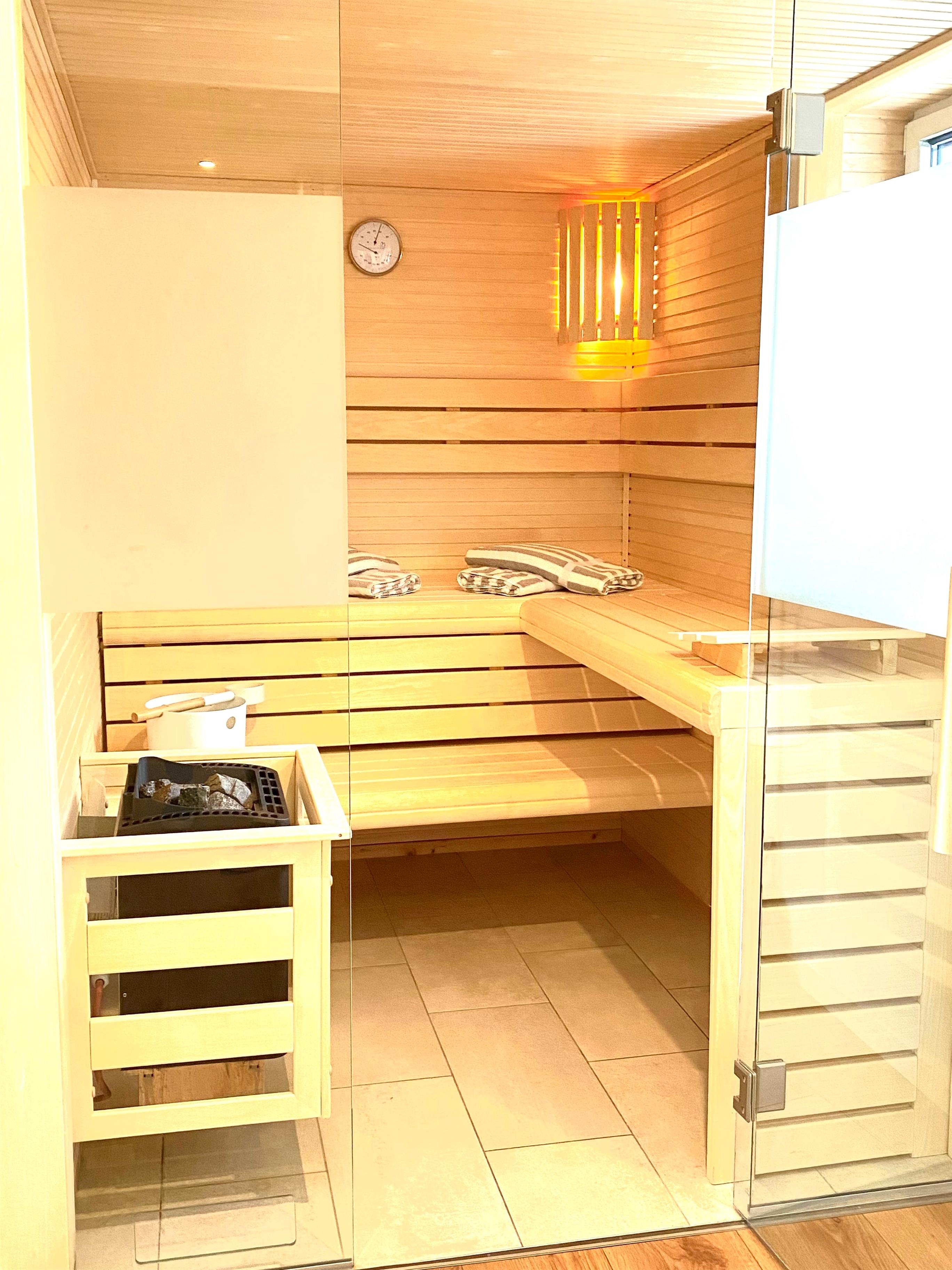 Sie ist weiterhin mit einer großen Sauna und 2 Schlafzimmer ausgestattet. Beide Schlafzimmer haben jeweils ein