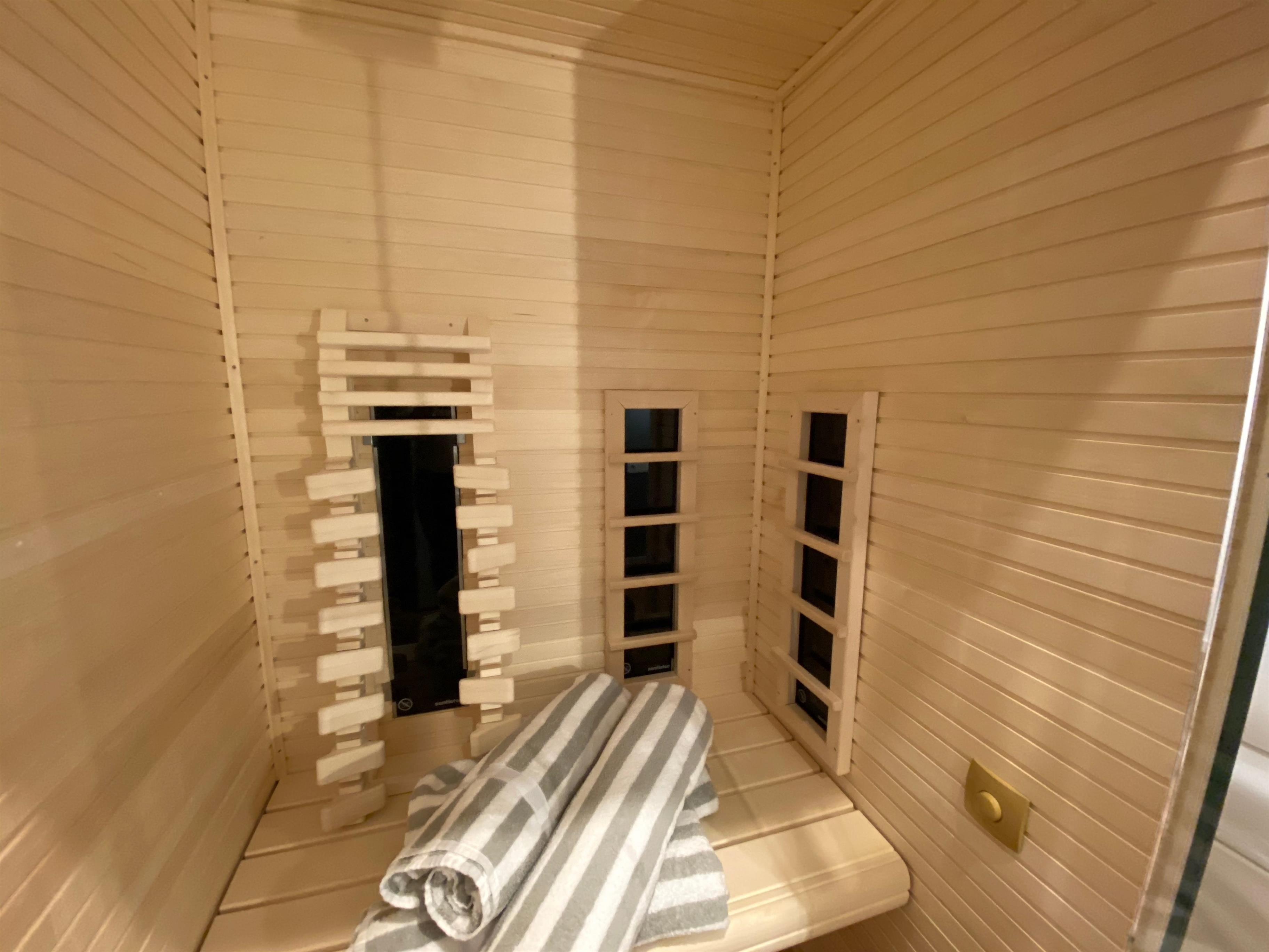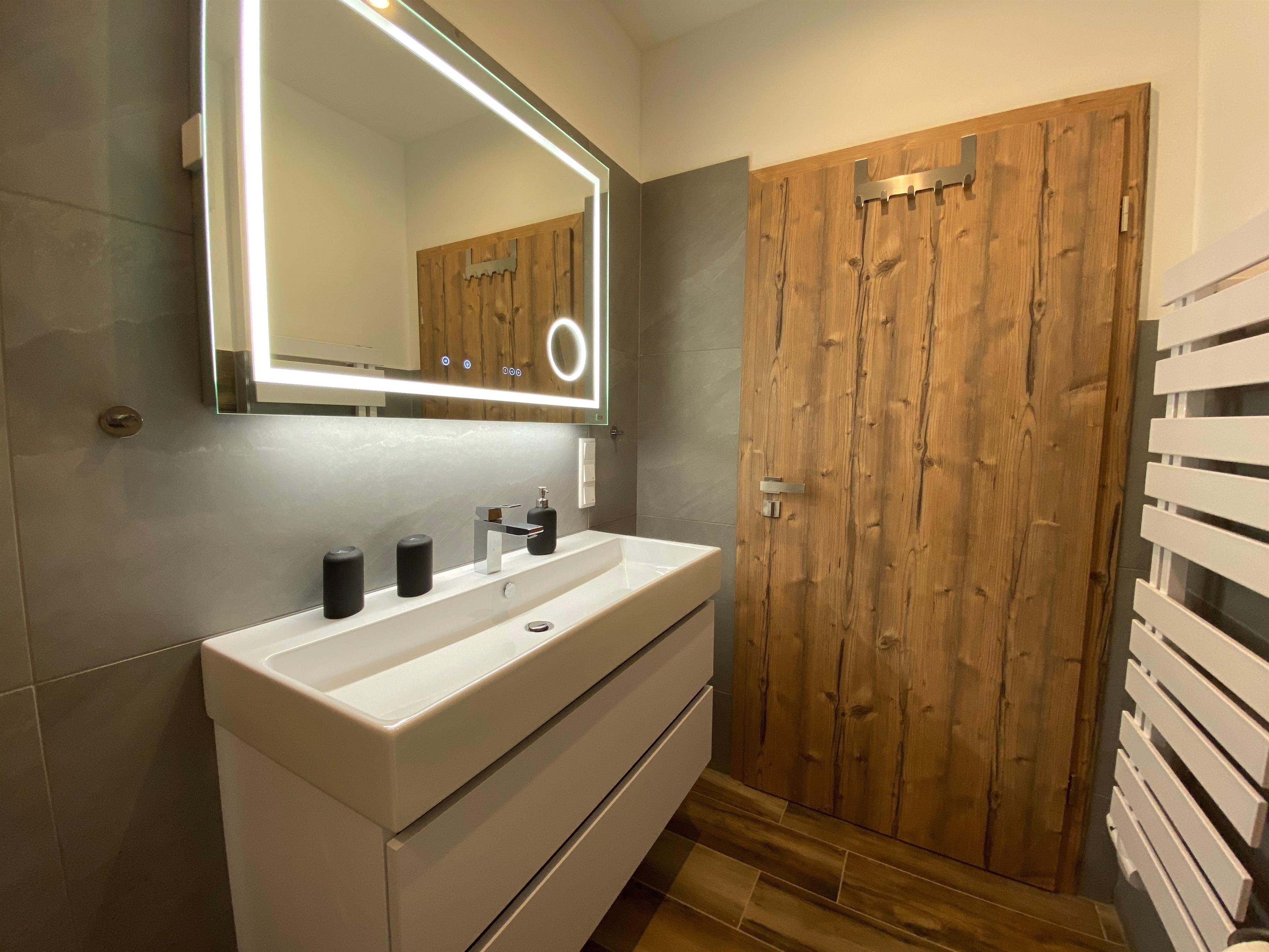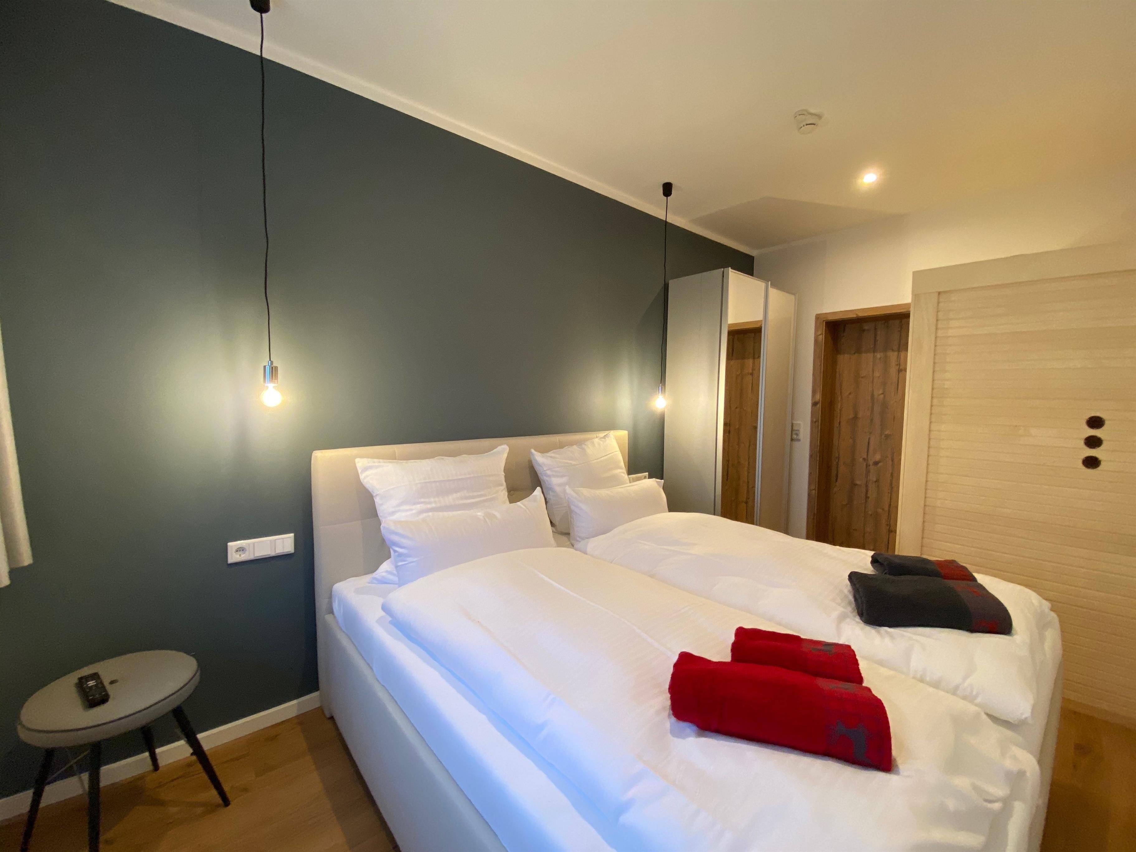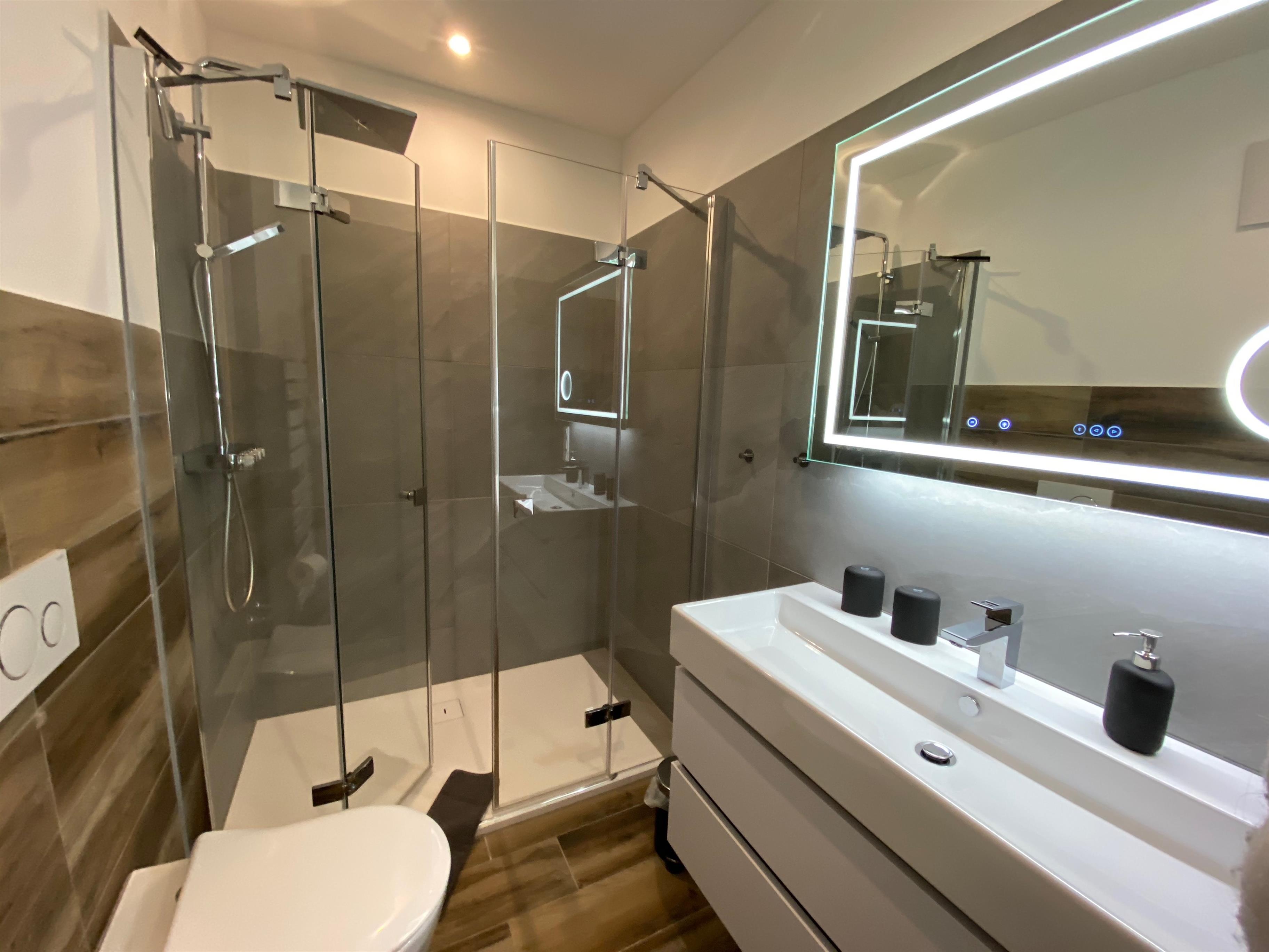 Appartement mit zwei Schlafzimmern, Küche, Wohnzimmer, Bad mit Dusche und WC, kleines Bad mit Waschtisch und WC, Infrarotkabine und Balkon