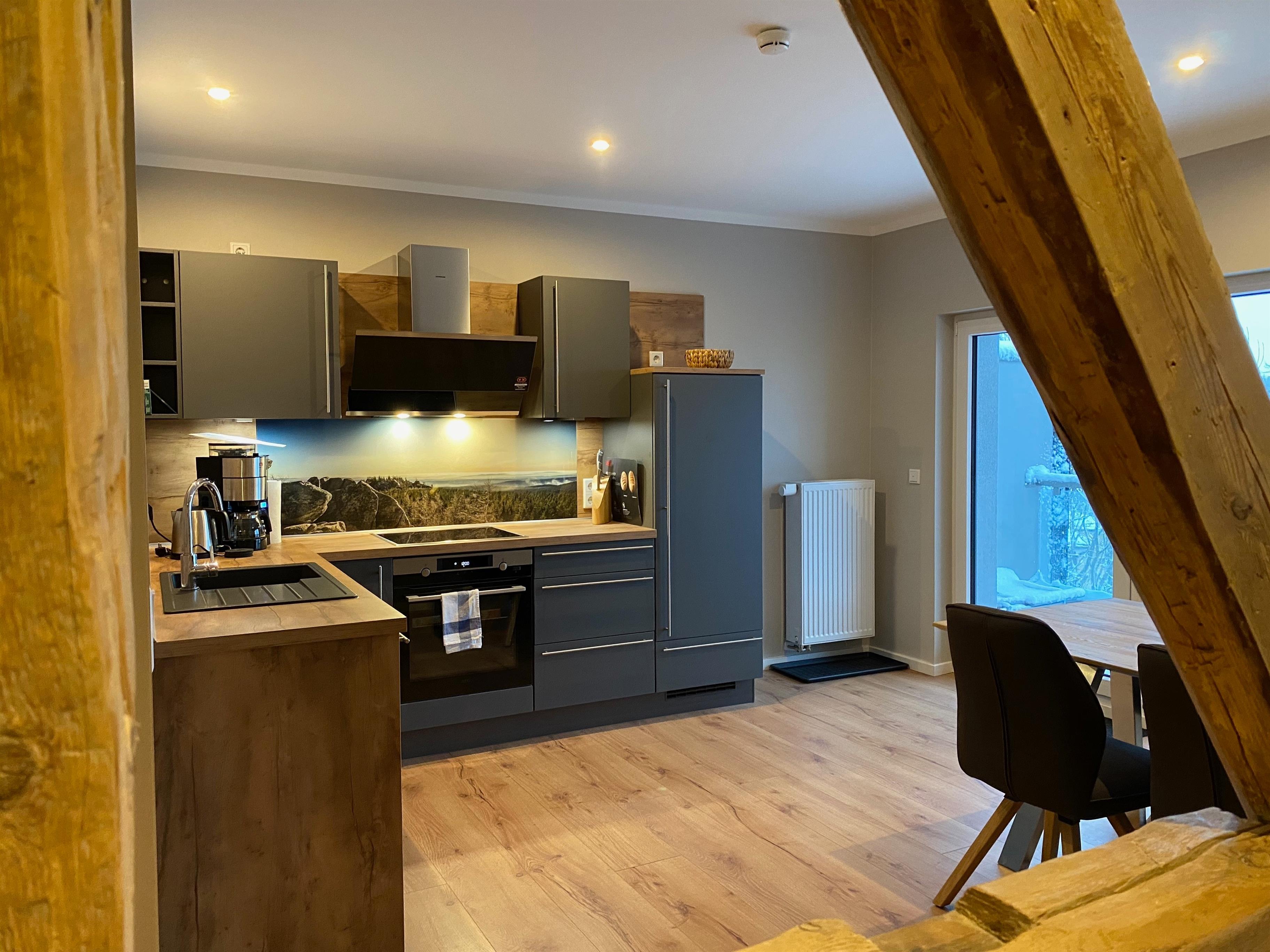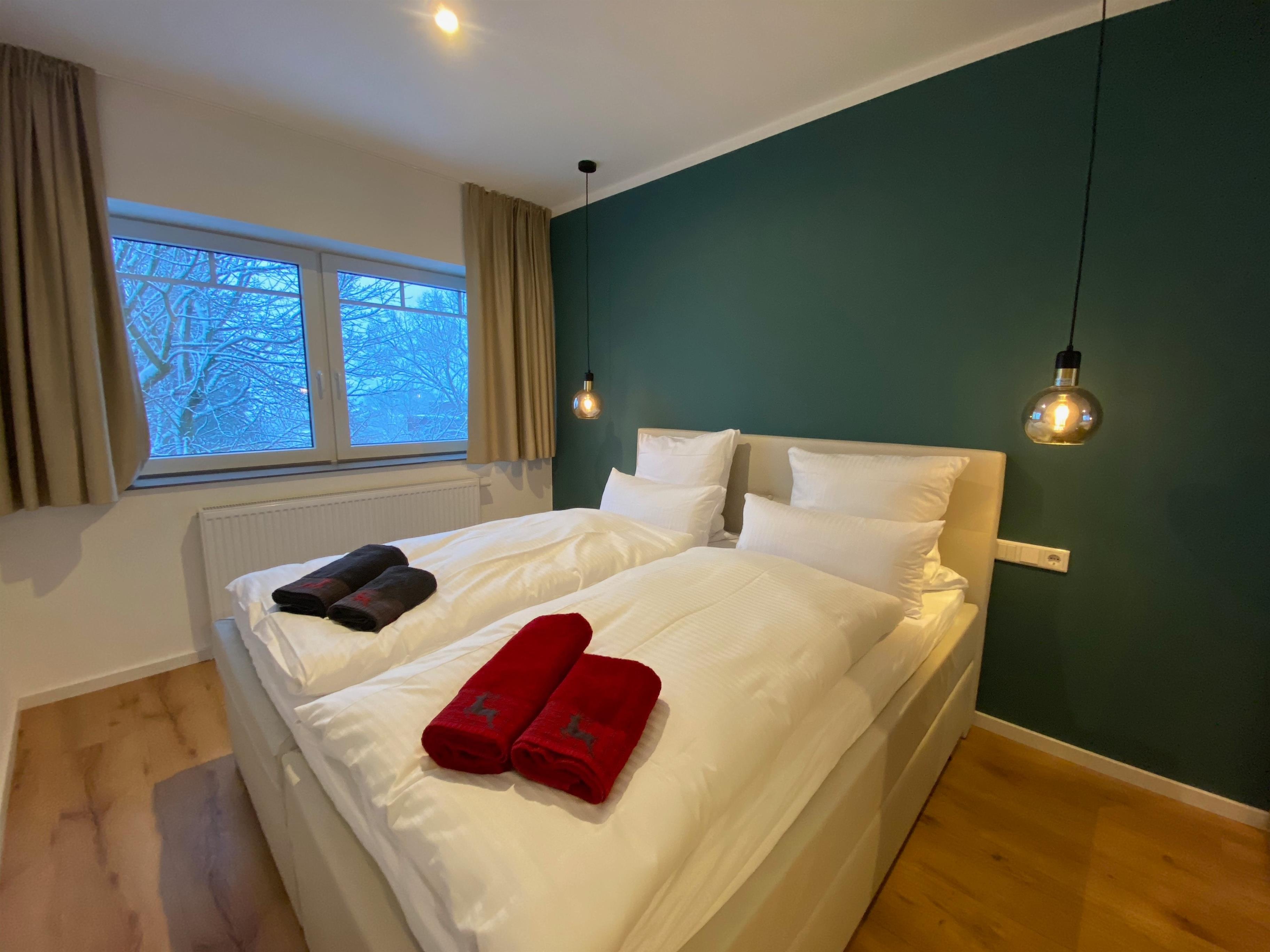 Diese Luxusapartment befindet sich im 2. OG, ist für 4 Personen ausgelegt und ca. 87 qm groß. Von der Küche geht ein Balkon ab. Es verfügt über einen zusammenhängenden Wohn-Essbereich, 1 Bad mit Dusche und WC sowie ein kleines Ensuite-Bad mit Waschtisch und Toilette. Das Apartment verfügt weiterhin über eine Infrarot-Kabine. Vom Südbalkon haben Sie einen Blick in den Garten sowie eine sehr schöne Aussicht über Braunlage. Es ist eine hochwertige Küche mit Geschirrspüler, Backofen und Ceran-Kochfeld verbaut. Die Ausstattung der Küche lässt keine Wünsche offen, u. a. finden Sie auch eine Auswahl an Gewürzen vor. Die Doppelbetten verfügen jeweils auf der rechten Seite über eine Matratze mit Härtegrad 3 und auf der linken Seite mit Härtegrad 4.