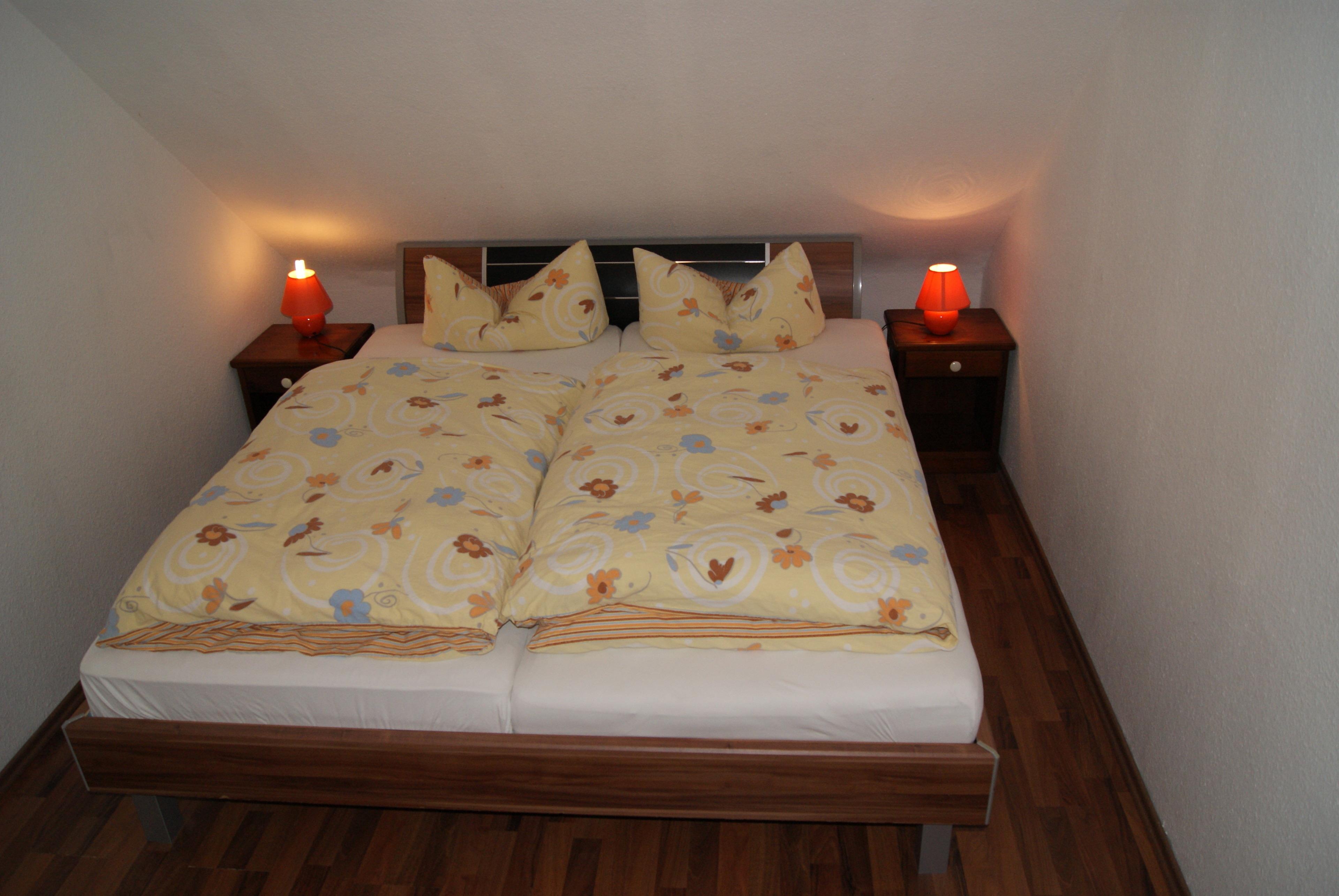 Die Ferienwohnung verfügt über 2 Schlafzimmer. In einem Schlafzimmer befinden sich 2 Einzelbetten und ein Doppelbett. Das andere Schlafzimmer verfügt über ein Doppelbett. Im Wohnzimmer bietet das Sofa Platz für 1 weitere Personen.