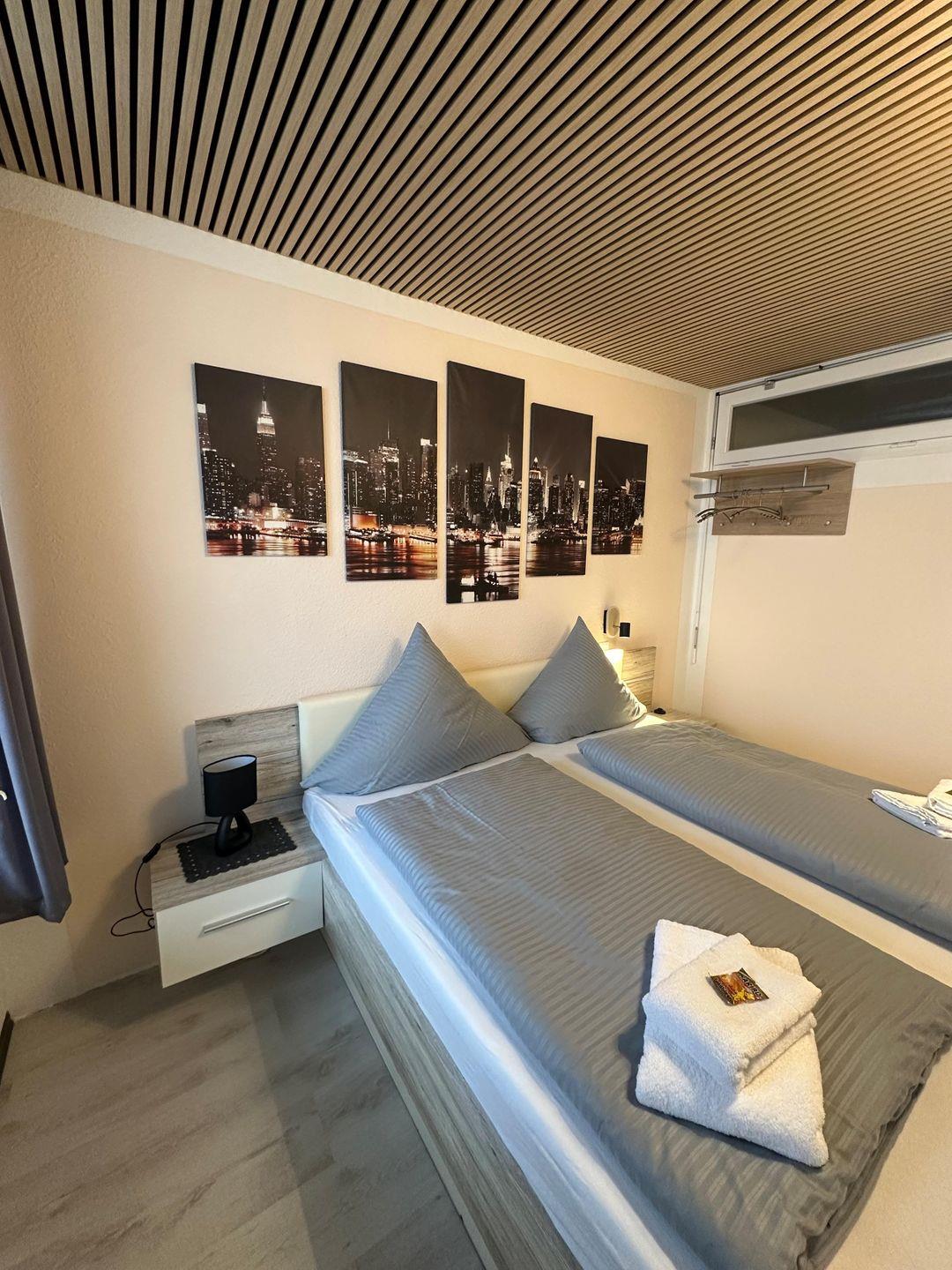 Das Appartement bietet Platz für bis zu fünf Personen und ist somit optimal geeignet für Familien, kleine Gruppen oder Paare, die Wert auf Komfort und Vielseitigkeit legen. Zwei Schlafzimmer, davon eines mit zwei Betten speziell für Kinder, sowie ein modernes Wohnzimmer mit gemütlicher Sofaecke und TV sorgen für erholsame Stunden. Vinylböden in Wohn- und Schlafbereichen schaffen ein freundliches, allergikerfreundliches Ambiente. Ein Kleiderschrank, Sichtschutz an allen Fenstern und ein Ganzkörperspiegel tragen zum Komfort während Ihres Aufenthalts bei.