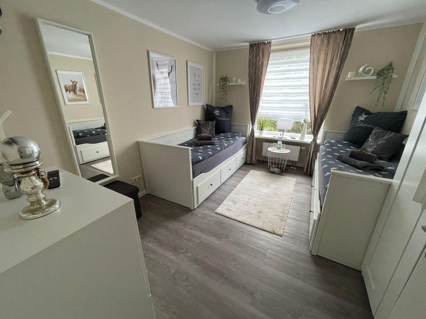 Die Unterkunft ist modern und stilvoll eingerichtet und wurde zuletzt im Jahr 2022 renoviert. Sie wartet mit zwei komfortablen Schlafzimmern auf, die für einen erholsamen Schlaf sorgen. Eines der Schlafzimmer bietet Platz für bis zu drei Personen, während das zweite Schlafzimmer ideal für zwei Personen ist. Die lichtdurchfluteten Räume sind mit Vinylböden ausgestattet, die nicht nur pflegeleicht, sondern auch angenehm warm unter den Füßen sind.