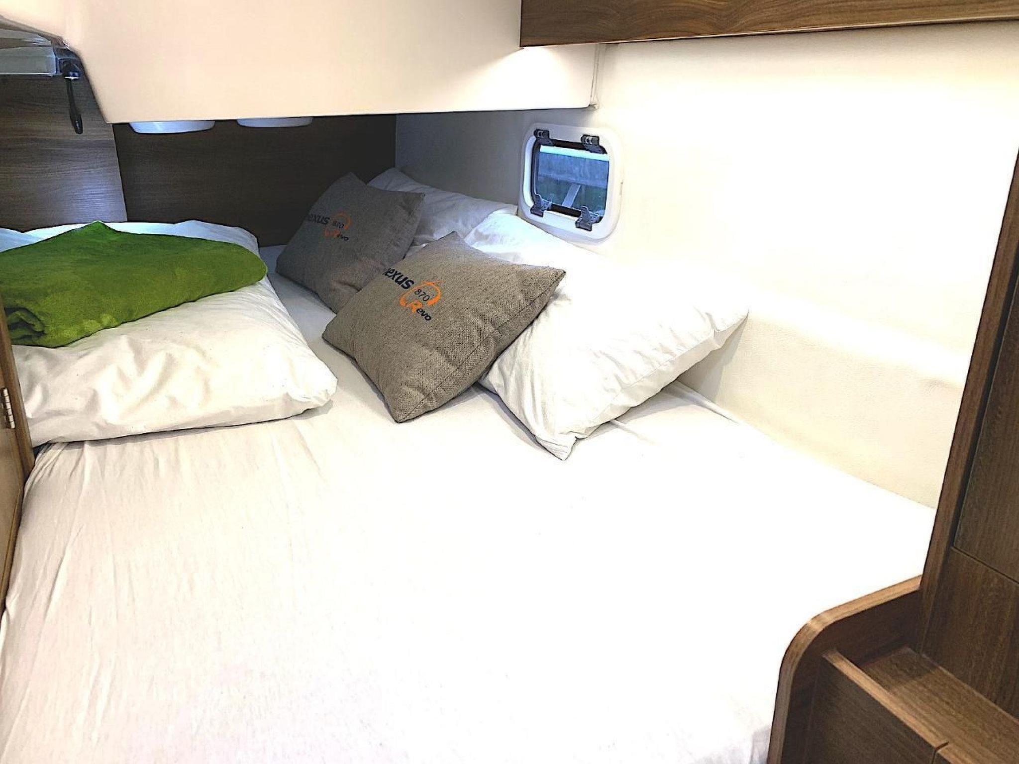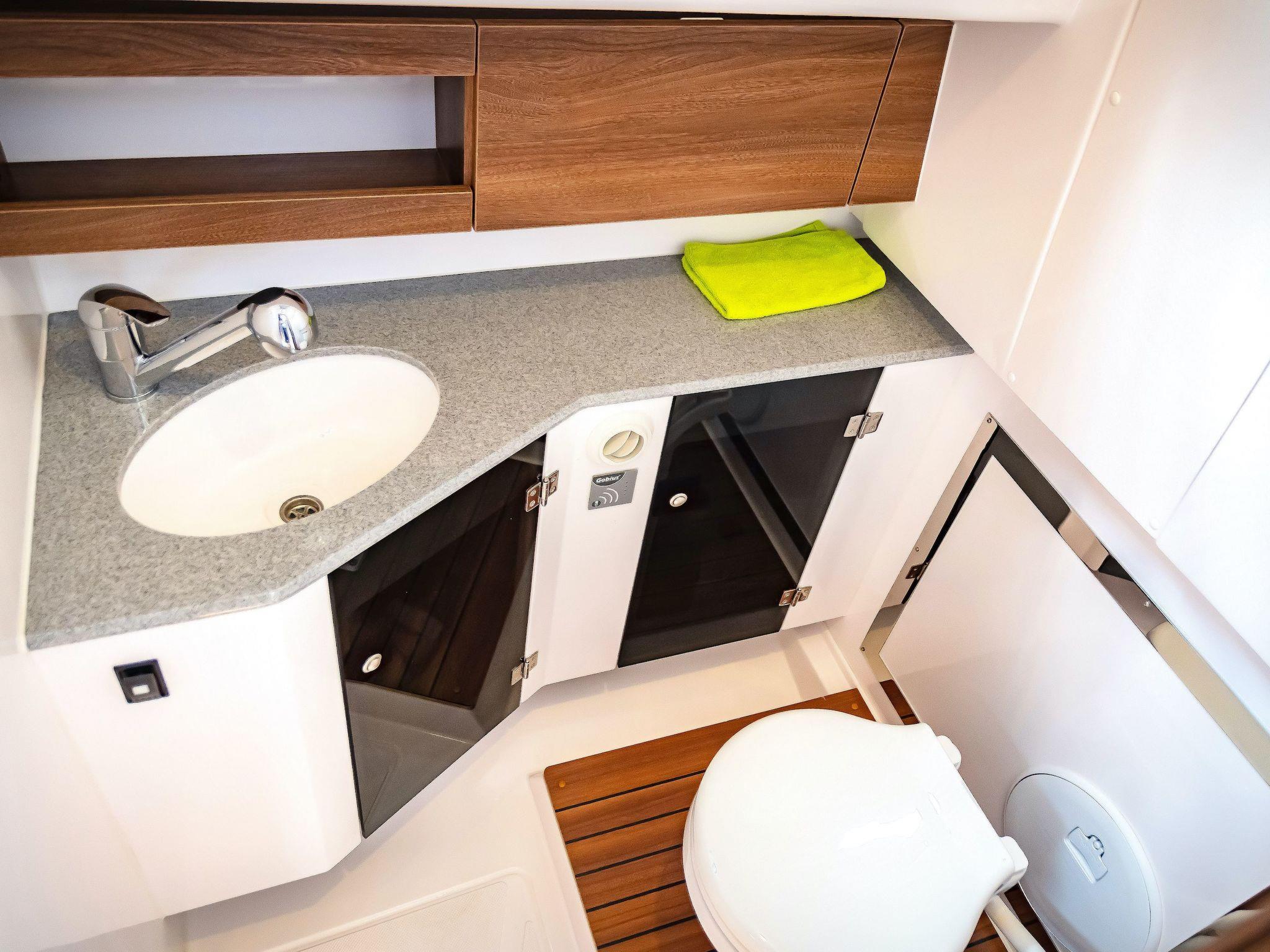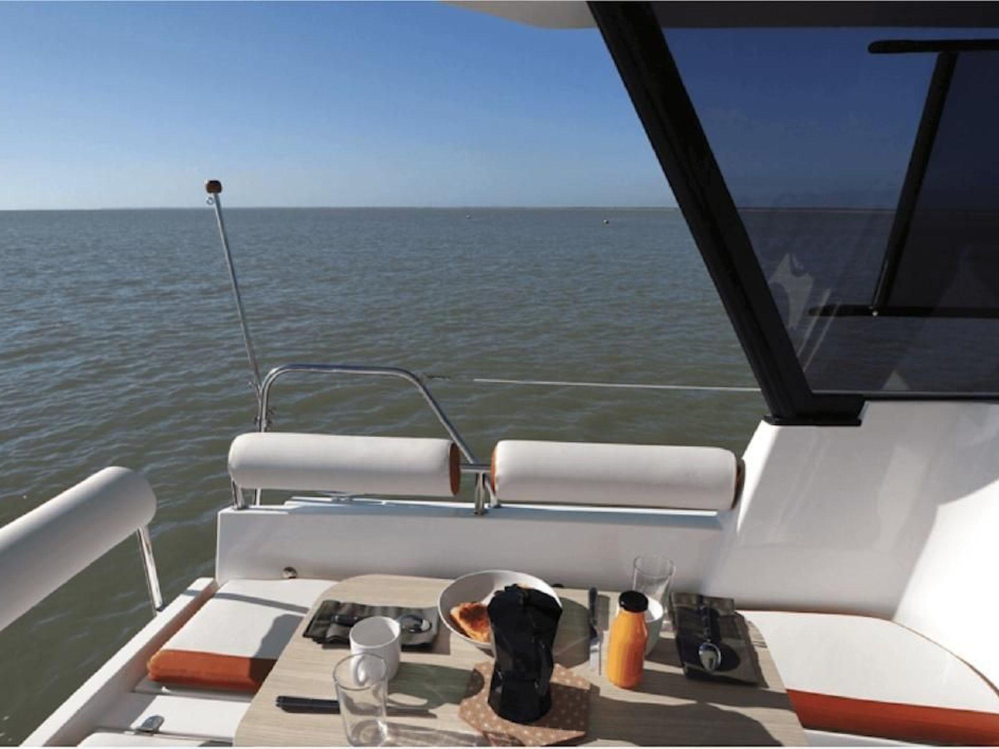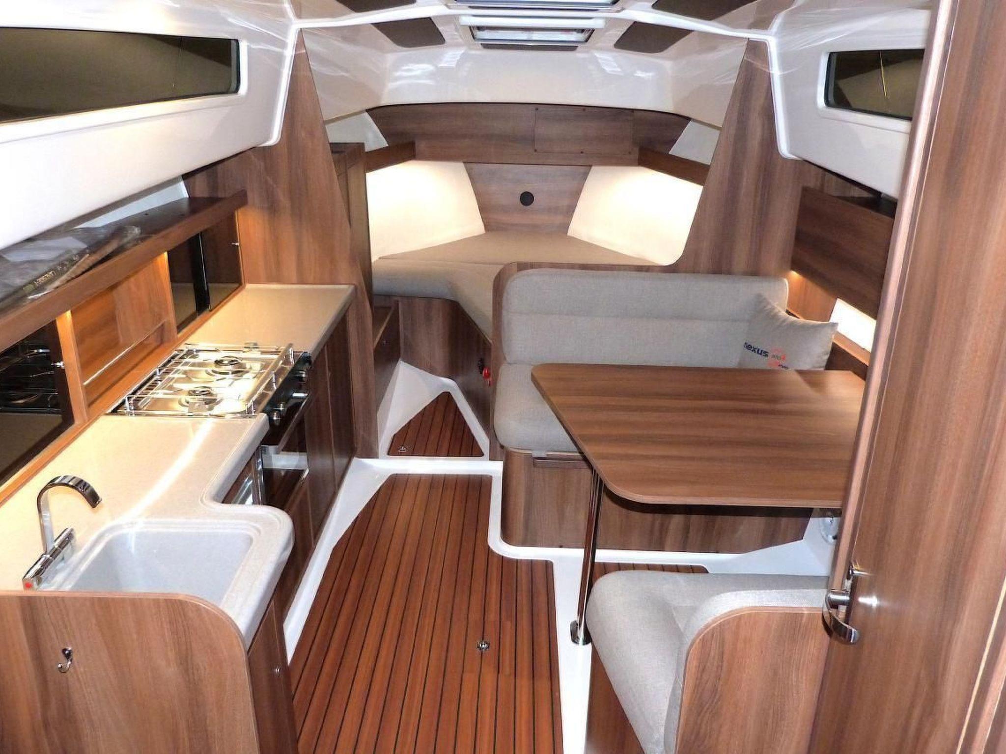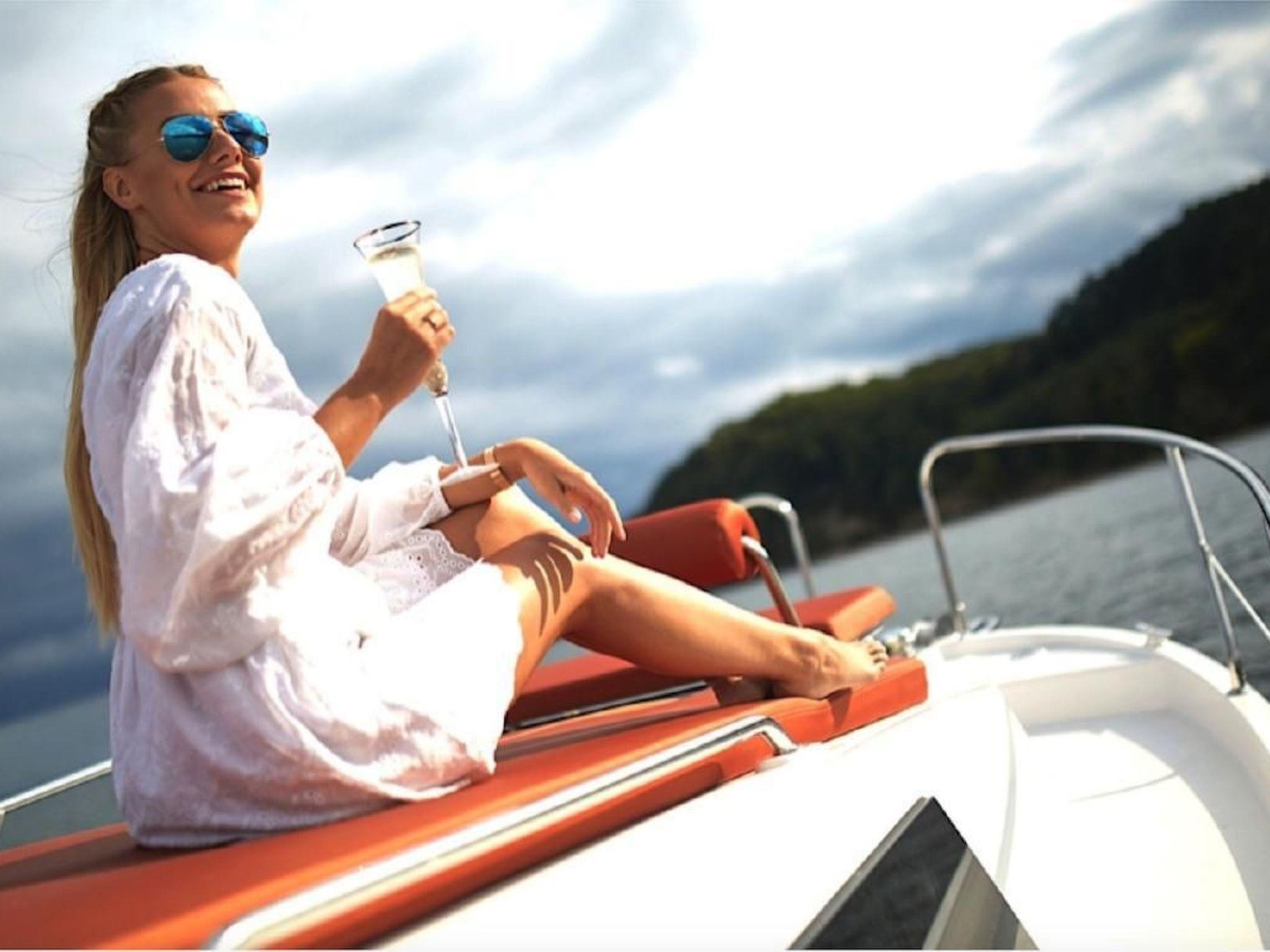 This boat is pleasantly structured and spacious below deck with a fully equipped galley and a wet room including electric WC, washbasin and shower. If you are travelling with up to 2 adults and 2 children, the bunk in the aft offers an additional plus point. This means there is no need to convert the seats into a sleeping area in the evening. The Overtime is very well equipped, including free WiFi, hi-fi audio system with Aux In and USB connection, 32" UHD TV, an AppleTV with free media library (films, programmes, games, music archive, apps). The boat has excellent directional stability and is equipped with a Yanmar inboard engine. You can manoeuvre very easily and comfortably with the powerful bow thruster.