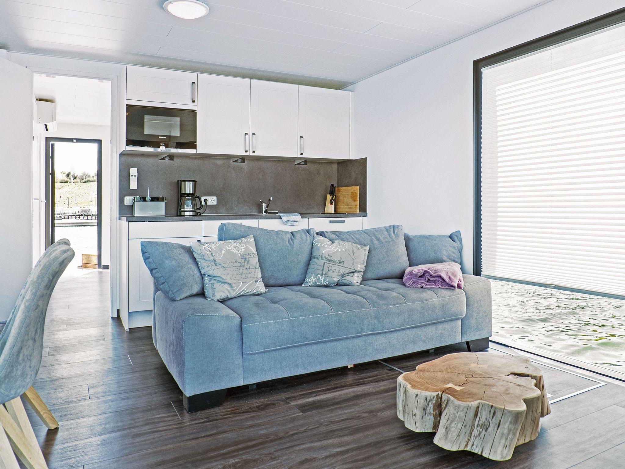 Floating House in Braunsbedra ? das bedeutet Urlaub mitten auf dem Wasser, ganz nah an der Natur und doch mit allem Komfort, den du dir für deine Auszeit wünschst. Im idyllischen Hafen am Geiseltalsee erwartet dich ein modernes Hausboot, das dir ein ganz besonderes Urlaubserlebnis bietet: maritimes Lebensgefühl kombiniert mit der Gemütlichkeit eines schwimmenden Ferienhauses. Das Floating House liegt fest vertäut im Hafen und bieten Platz für 4 Personen ? ideal für Paare, Freunde oder kleine Familien. Alles spielt sich auf einer Ebene ab, mit durchdachter Raumaufteilung, offenem Wohnbereich, moderner Küchenzeile, gemütlichen Schlafbereichen und viel Licht. Die großen Fenster lassen den See zum Teil deines Zuhauses werden ? ob beim Frühstück, beim Lesen oder einfach beim In-die-Weite-Schauen. Highlight beider Hausboote sind die zwei Terrassen: Eine möblierte Bugterrasse direkt am Wasser und eine großzügige Dachterrasse, die dir einen traumhaften Rundumblick bietet ? perfekt für Sonnenstunden, Abendstimmung oder einen Kaffee im Freien. WLAN steht dir im Hafen zur Verfügung, ebenso ein kostenfreier Parkplatz in der Nähe. Das Floating House in Braunsbedra ist dein Ort zum Abschalten, Auftanken und Freiheitsatmen. Ein kleiner Hafen, ein großer See ? und ganz viel Raum für dich.