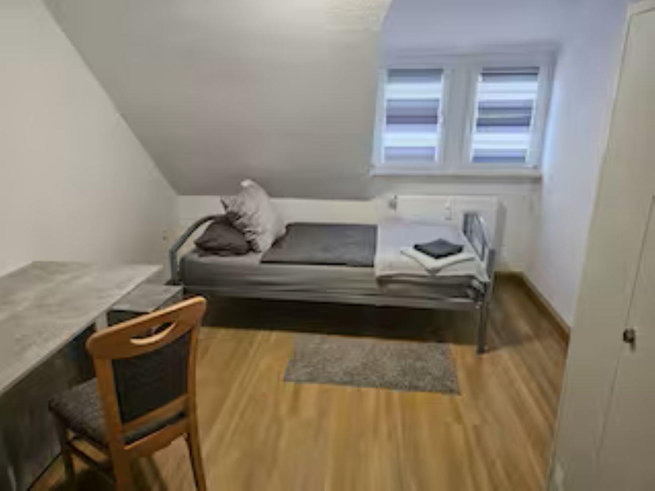 Jedes Zimmer verfügt über 1 oder 2 Einzelbetten 90x200 mit H4 Taschenfederkernmatratze, Kleiderschrank, Nachttischrank mit Nachttischlampe, Schreibtisch + Stuhl, Wäscheständer , Mülleimer.