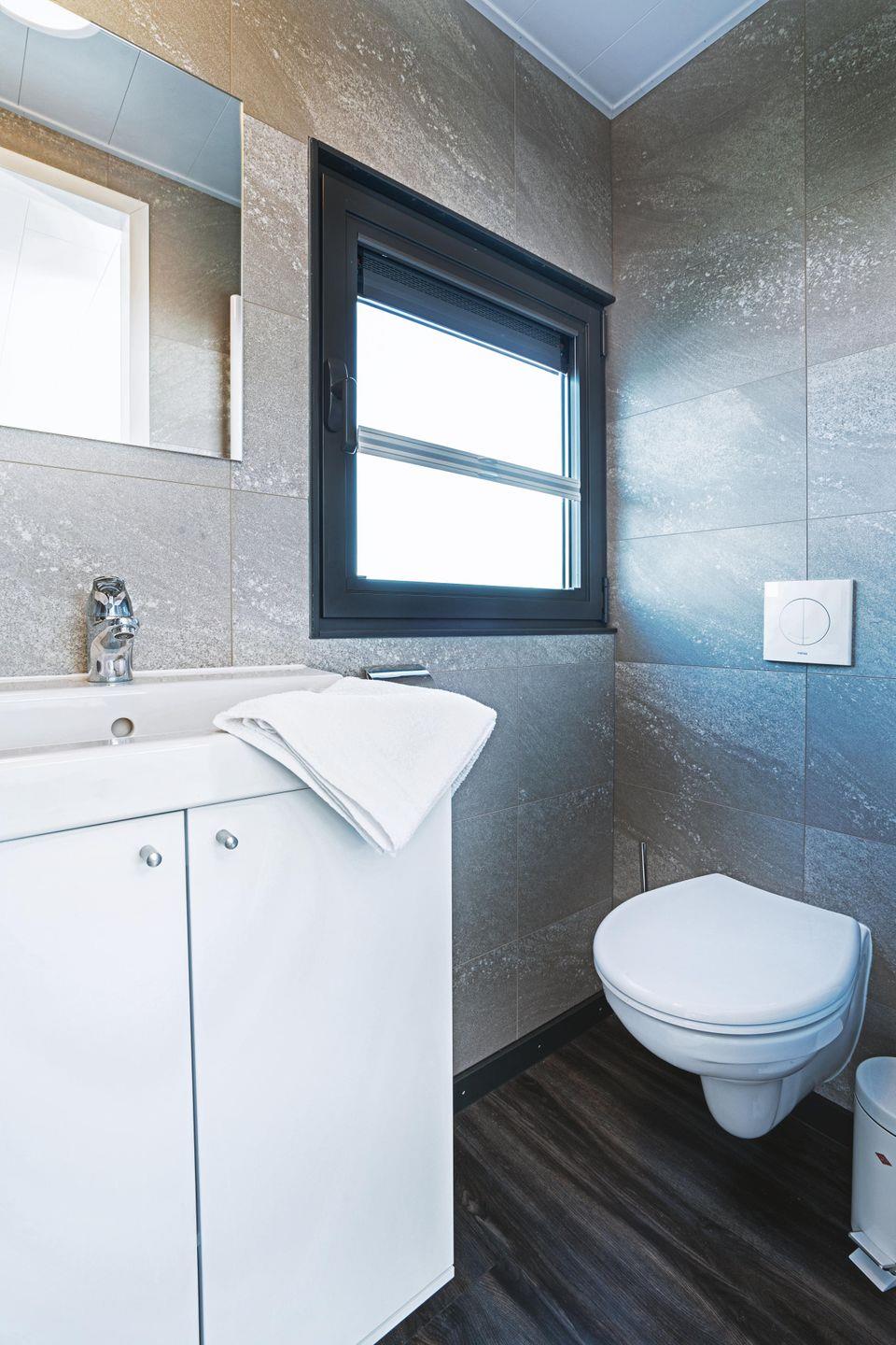 Bad mit Dusche, WC und Waschtisch, inkl. Handtücher-Set pro Person/Woche, (1 Frottierhandtuch & 1 Duschhandtuch)