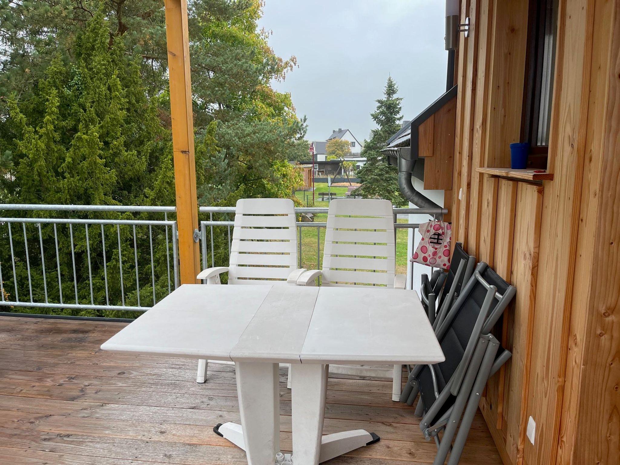 An der Wohnung befindet sich eine teilüberdachte Terrasse mit Sitzgelegenheiten. Der im Garten befindliche Platz nebst Holzkohlegrillkamin kann ebenfalls genutzt werden.