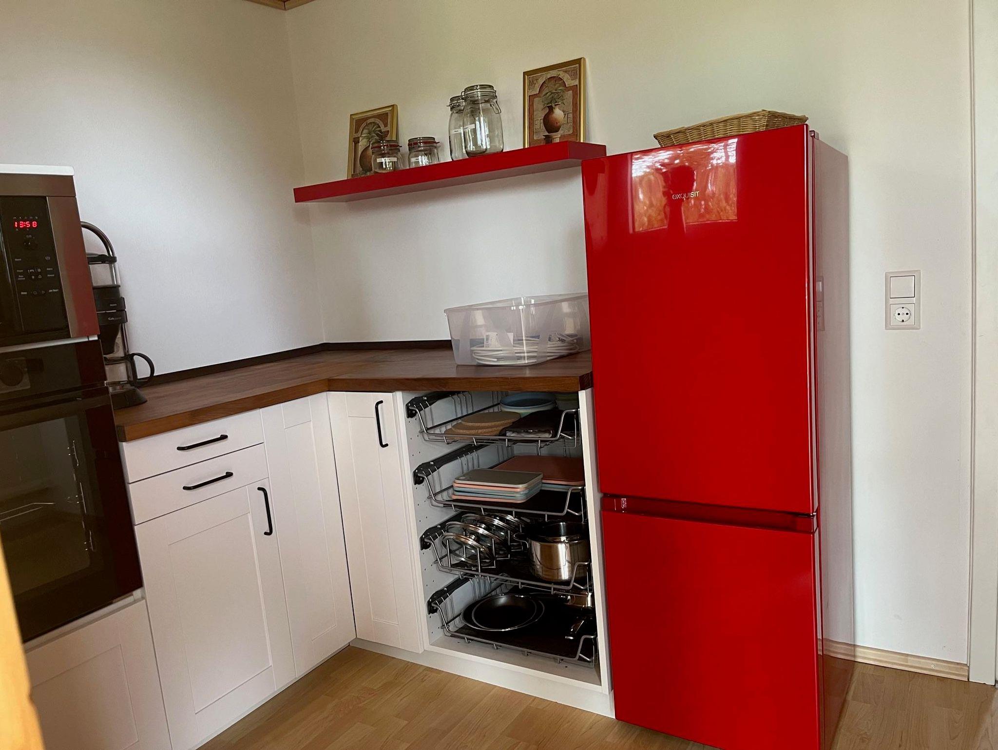 Küche: Unsere Wohnung verfügt über eine komplette, moderne und sehr funktionale Küche. Spülmaschine, Cerankochfeld mit Dunstabzugshaube, Backofen, Mikrowelle, Kühl- und Gefrierkombination, Filterkaffeemaschine, Senseo, Handmixer, Milchaufschäumer, Toaster und Wasserkocher sind eine Selbstverständlichkeit. Direkter Zugang zur teilüberdachten Terrasse.