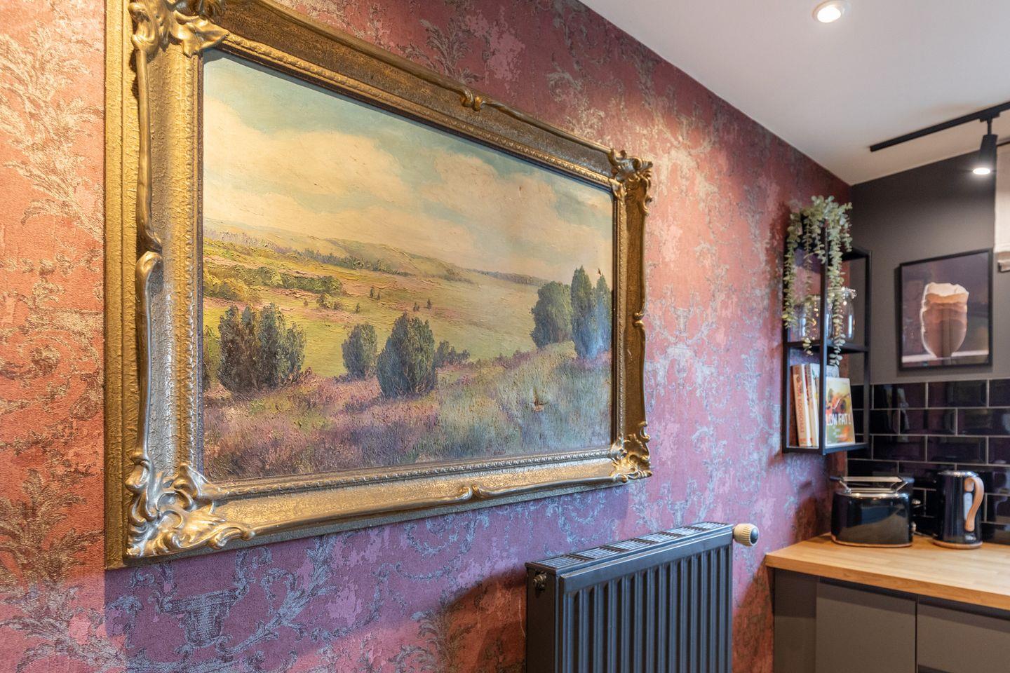Die geräumige Küche lässt keine Wünsche offen. Ausgestattet mit moderner Kaffeemaschine, Siebträgermaschine (DeLonghi) und einer Kaffeefiltermaschine, Espressomaschine, Wasserkocher, Ceranfeld, Backofen, Geschirrspülmaschine und großem Kühlschrank lädt sie zum gemeinsamen Kochen ein.