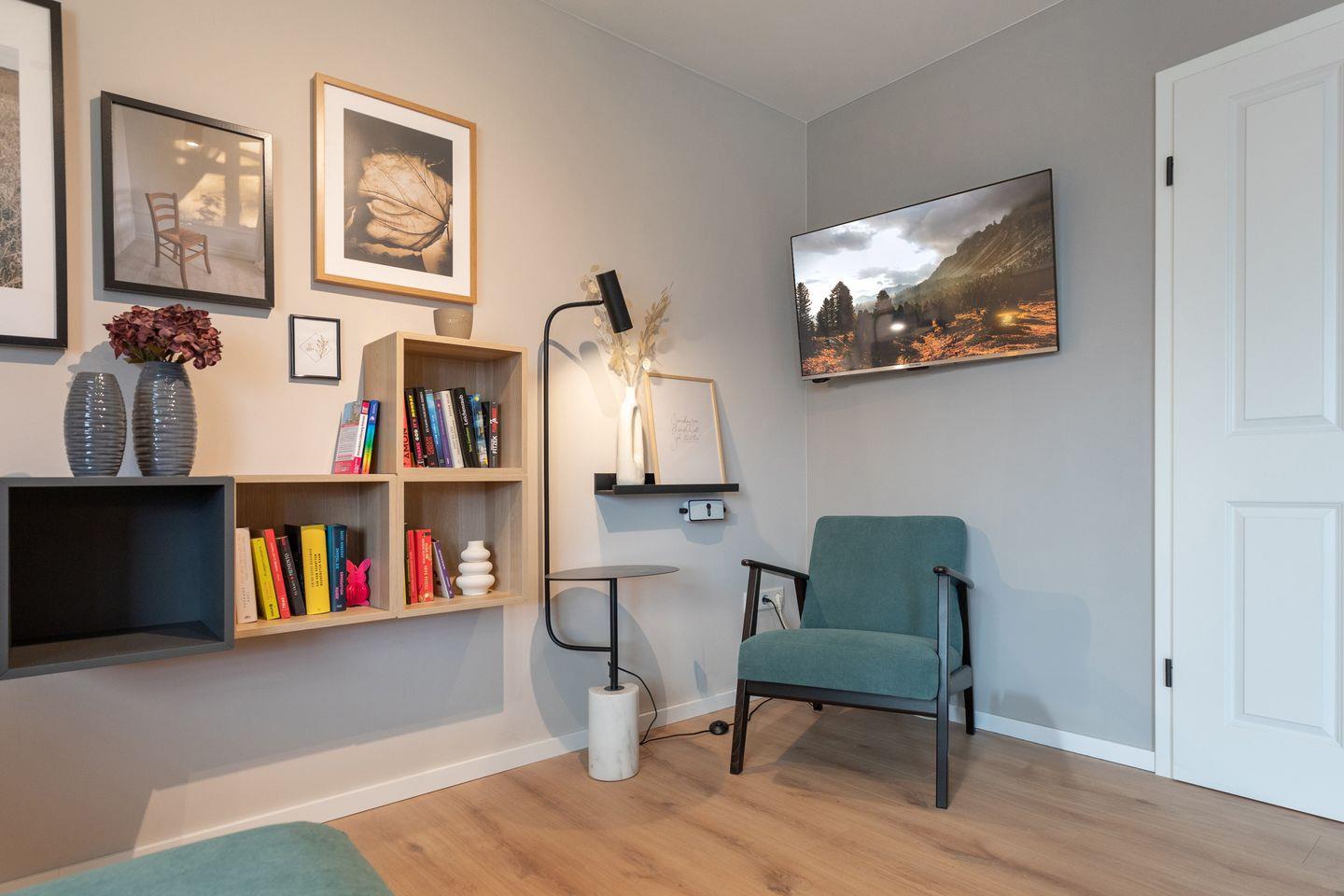 Entdecken Sie unser charmantes Ferienhaus, das mit seinem einladenden, hellen Eingangsbereich sofort zum Verweilen einlädt. Im Wohnzimmer erwartet Sie eine Oase der Gemütlichkeit: Eine weiche Couch und ein einladender Sessel bieten den perfekten Platz zum Entspannen oder zum Lesen eines guten Buches. An kühleren Abenden sorgt der Kamin für wohlige Wärme und ein großer Esstisch für gesellige Stunden. Hier steht Ihnen auch ein Flachbildschirm für gemütliche Filmabende zur Verfügung.