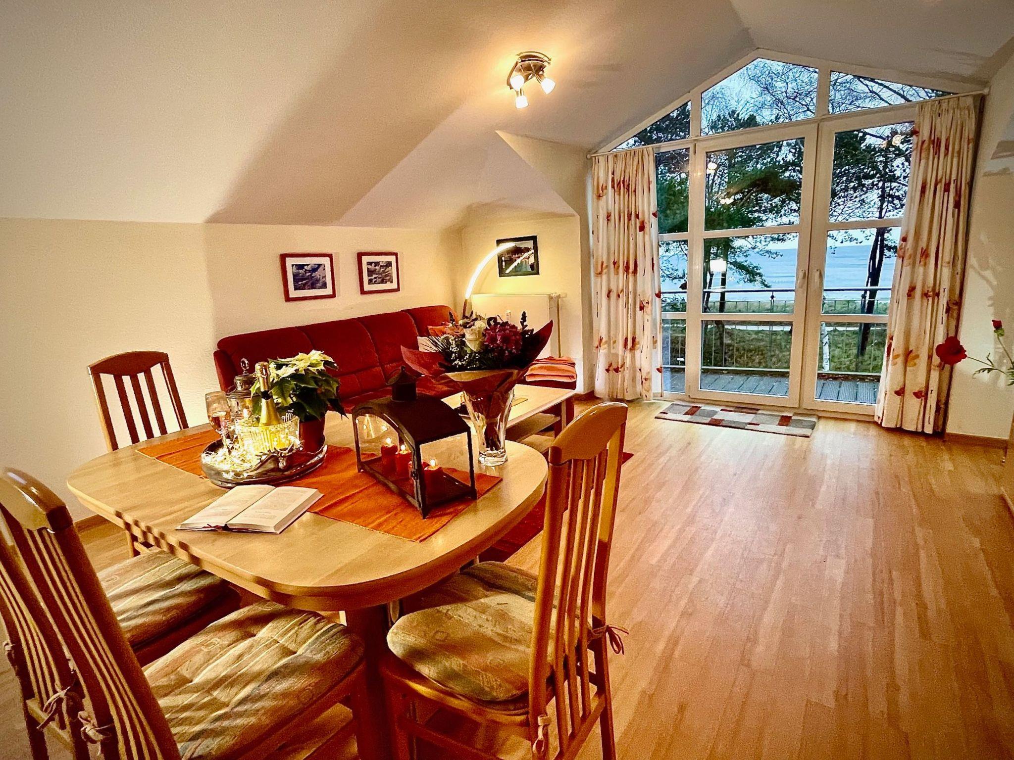 Discover your holiday paradise in the Krebs holiday flat, located in the exclusive dune residence in the seaside resort of Juliusruh, right on the picturesque Baltic Sea beach. This charming top-floor flat will enchant you with its large panoramic windows, through which you have a breathtaking view of the Baltic Sea and the opportunity to admire spectacular sunrises directly from your domicile. An experience that will make your stay unforgettable.
