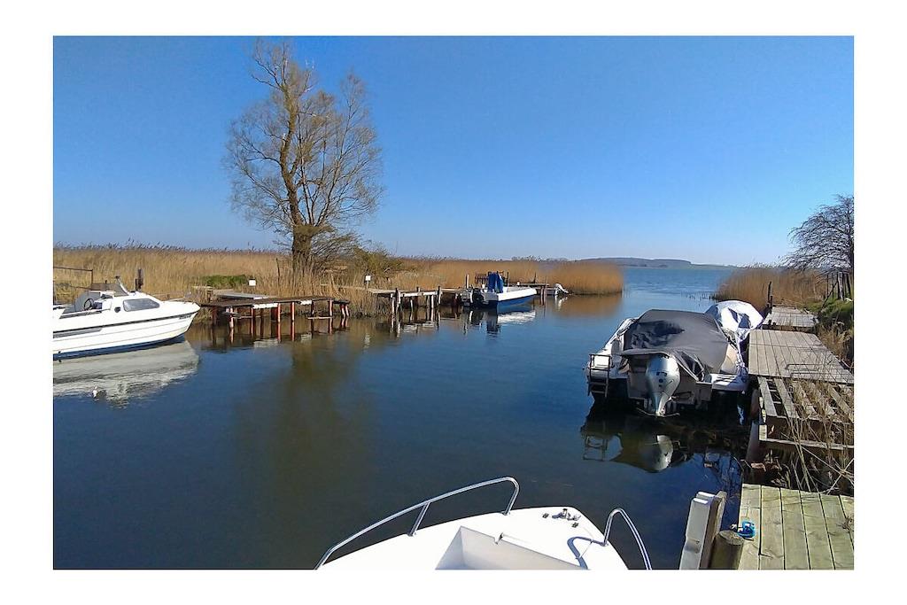 Geheimtipp für Naturfreunde und Individualisten Das mit Reet gedeckte, gemütlich eingerichtete Ferienhaus befindet sich direkt am kleinen Hafen vom Breeger Bodden der ehemaligen Kamminer Fähre in idyllisch ruhiger Lage auf einem ca. 2500 m², liebevoll angelegten Gartengrundstück. Es ist für 4-5 Personen geeignet. Zum Ferienhaus gehört eine schöne Terrasse, ausgestattet mit Gartenmöbeln von der man einen wunderschönen Blick auf das Wasser hat. Eine Grillmöglichkeit besteht. Zufahrt zum Haus über einen naturbelassenen Feldweg. Im Ferienhaus befinden sich ein großer Wohn- und Essraum, eine kleine Einbauküche, eine Schlafempore, ein Schlafzimmer und ein Bad mit WC und Dusche. Zum Grundstück gehört ein eigener Bootssteg. 2 Fahrräder gehören ebenfalls zur Ausstattung. Hier finden Familie Erholung und Entspannung in wunderschöner Natur mit Sonnengarantie. Wohnzimmer mit gemütliche Couch und 2 Sessel, TV/ Sat (Flatscreen) und Kamin (kein Kaminholz vorhanden, erhältlich im Baumarkt Glowe), komplett ausgestatteter Küchenbereich mit, 4- Plattenherd (Ceranfeld), Minibackofen, Kühlschrank mit Gefrierfach, Mikrowelle und diversen Elektrogeräten, 2 Schlafzimmer mit jeweils ein Doppelbett im OG mit Boddenblick, Bad mit Dusche/ WC, Terrasse mit Gartenmöbel, Grillmöglichkeit besteht, 2500 qm großes umzäuntes Grundstück(Höhe 1,2 m) mit Liegewiese zum Relaxen “Erholung & Entspannung in wunderschöner Natur” direkt am Jasmunder Bodden mit eigenem Bootsliegeplatz , 2 Fahrräder inklusive, Einkaufsmöglichkeiten, Bäcker und Restaurant in Breege, vom ca. 2 km entfernten Hafen sind Ausflugsmöglichkeiten per Schiff zur Insel Hiddensee und zu den Störtebeker-Festspielen möglich, Segelschule, optimale Rad- und Wandermöglichkeiten, 2 PKW- Stellplätze auf dem Grundstück, Haustiere nach Absprache (Gebühr Euro 10,- pro Tag/ pro Haustier), schlechte Zufahrt zum Ferienquartier (naturbelassener Weg)! Das Seebad Breege-Juliusruh ist etwa 5km entfernt und bequem mit Fahrrad oder Auto erreichbar. In Breege befindet sich ein kleiner romantischer Hafen, wo man auch Seegelboote und Yachten mieten kann. In der kleinen Hafenräucherei gibt es täglich frischen Räucherfisch. In Juliusruh und der angrenzenden Schaabe findet man wunderschöne Badestrände mit sehr feinem Sand. Mit dem Fahrrad lässt sich die ganze Insel Rügen über ein Netz von Fahrradwegen erkunden. Der nahe Wieker Bodden bietet Surfen und Klitseglern bestes Terrain. Einkaufen kann man in Breege bei einem Bäcker und einem kleinen Einkaufsmarkt. Ein großer Supermarkt befindet sich in Altenkirchen. Rügen bietet ab er auch mit seinen bekannten Ostseebädern, Naturschutzgebieten und den Kreidefelsen sehr viel Abwechslung. Kleine Fischerdörfer wie z.B. Vitt bei Kap Arkona, alte Kirchen, Hünen- und Hügelgräber oder die Freilichtbühne in Ralswiek wollen erkundet sein. Das ganze Jahr über bietet die Insellandschaft Faszinationen und Erholung pur für jeden beim Wandern, Fahrradfahren, Segeln, Angeln, Reiten oder auch Bernsteinsuchen.