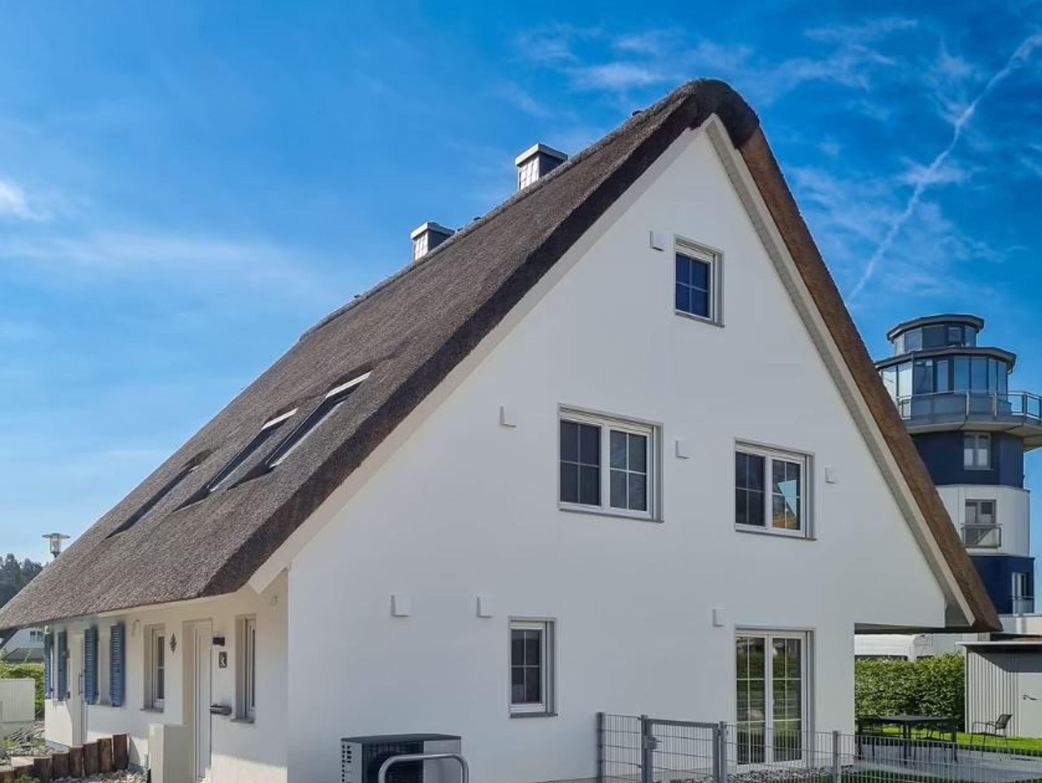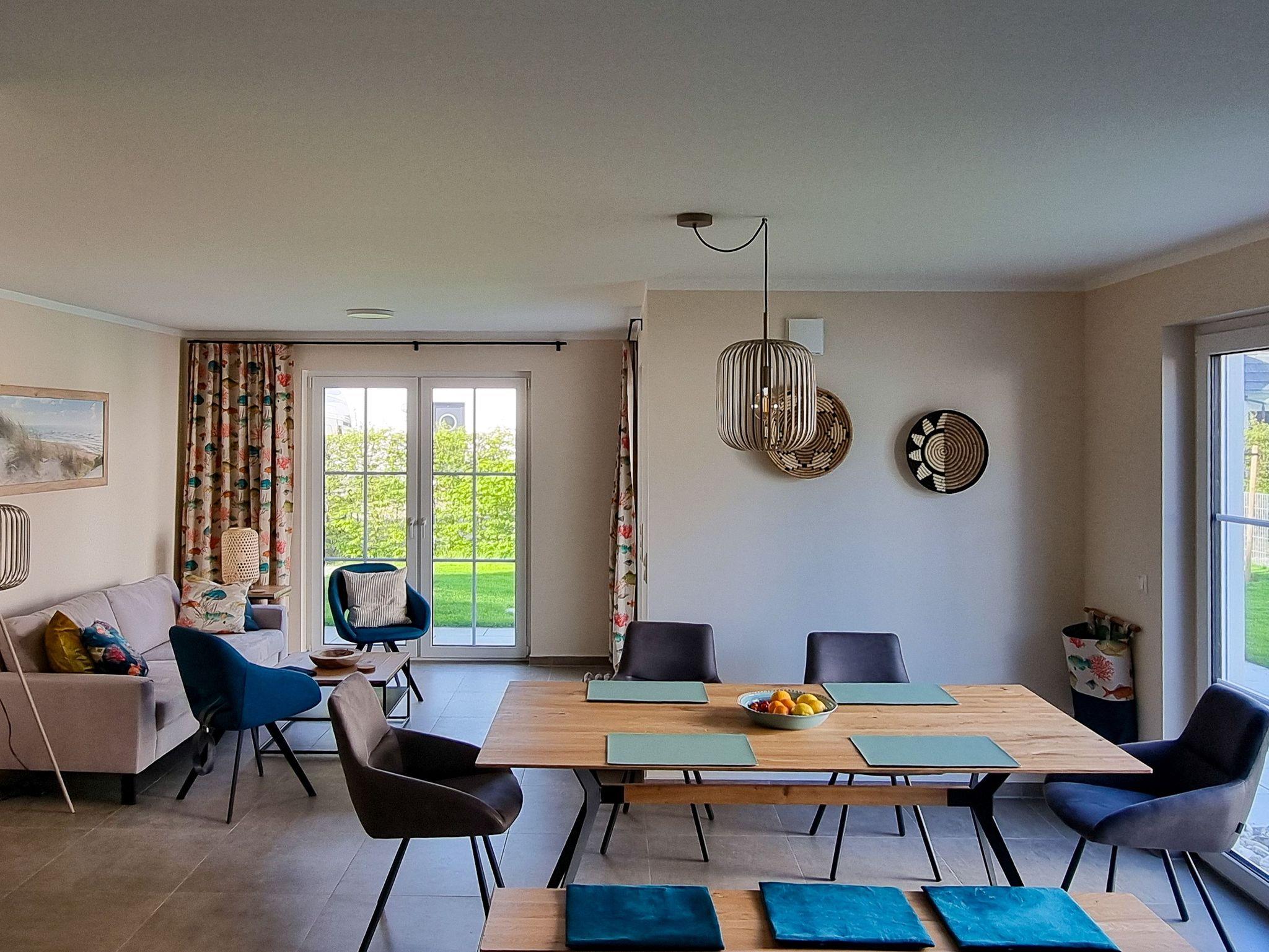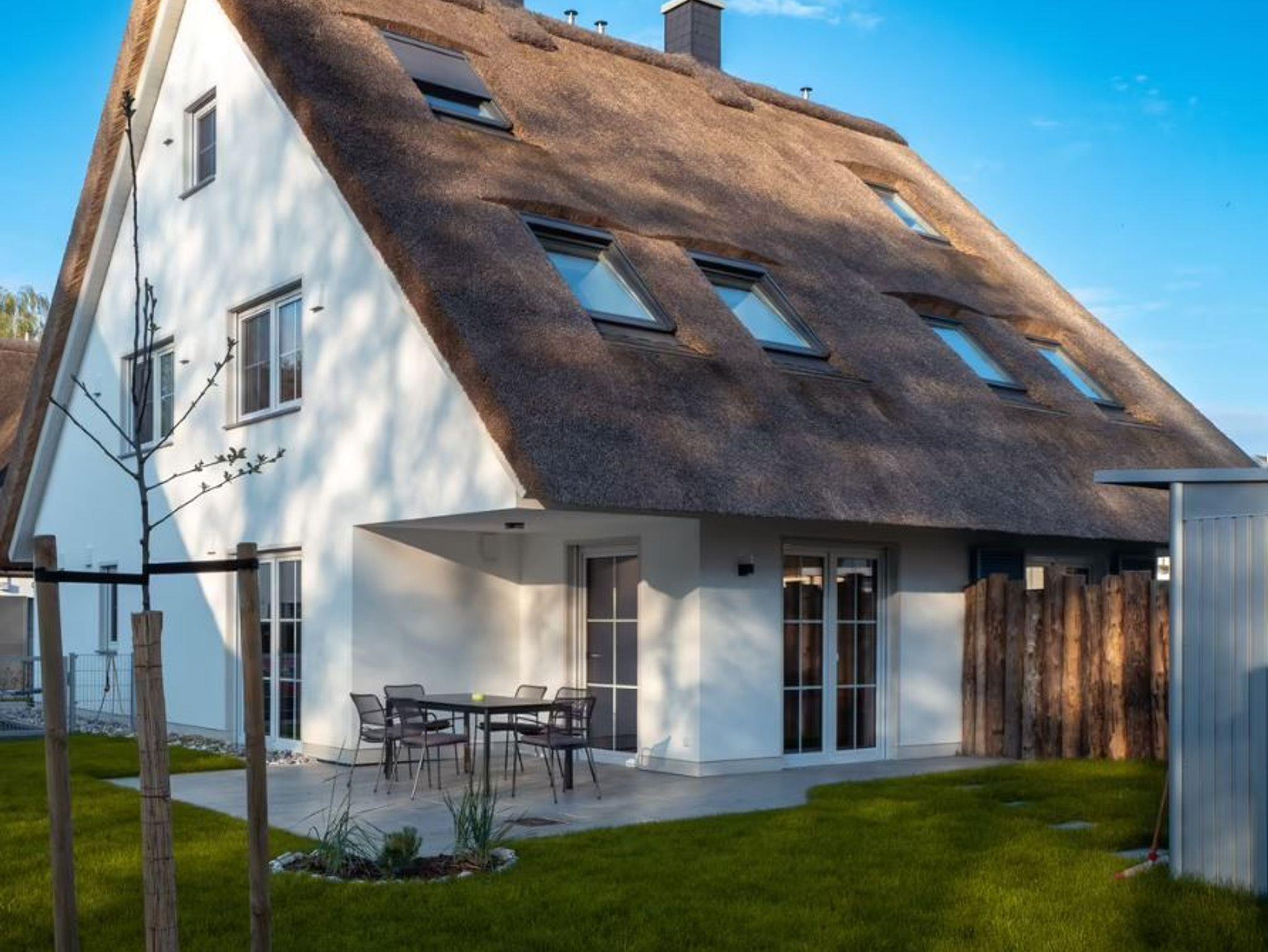 Unser Ferienhaus Sternblick ist nigelnagelneu und mit allem ausgestattet, was das Herz begehrt und erfreut durch viele funktionale und neckische Details. Das Feriendomizil mit kleinem Garten auf umzäuntem Grundstück befindet sich in zweiter Reihe direkt hinter dem Deich des Breeger Boddens, unweit des Ostseestrandes. In drei Schlafzimmern (2x 1 Doppelbett; 1x 2 Einzelbetten) finden bis zu 6 Personen ein Plätzchen. Der Wohnbereich mit angeschlossener Terrasse und integrierter Küche ist von gemütlichen Sitzmöbeln umgeben. Der große Esstisch lädt zu Geselligkeit mit der Familie und Freunden ein. Im EG befindet sich außerdem ein separater TV Raum. Außerdem ist der Sternblick durch schnelles Internet und einen hellen Arbeitsplatz Homeoffice tauglich. Die Sauna im OG (kostenpflichtig) eignet sich besonders an kalten Tagen zum Relaxen und Durchwärmen. Fahrräder können im Gartenhaus abgestellt werden.