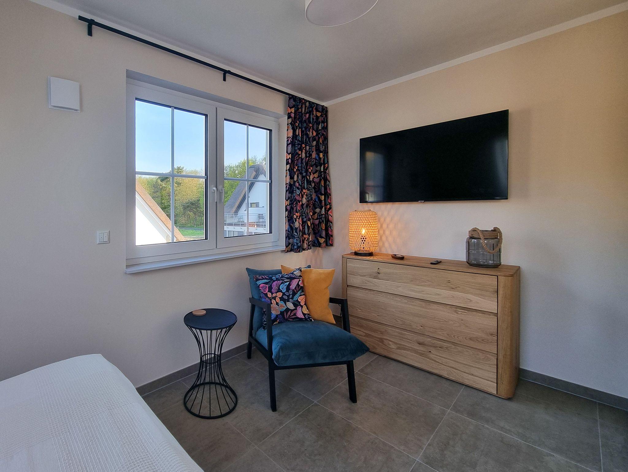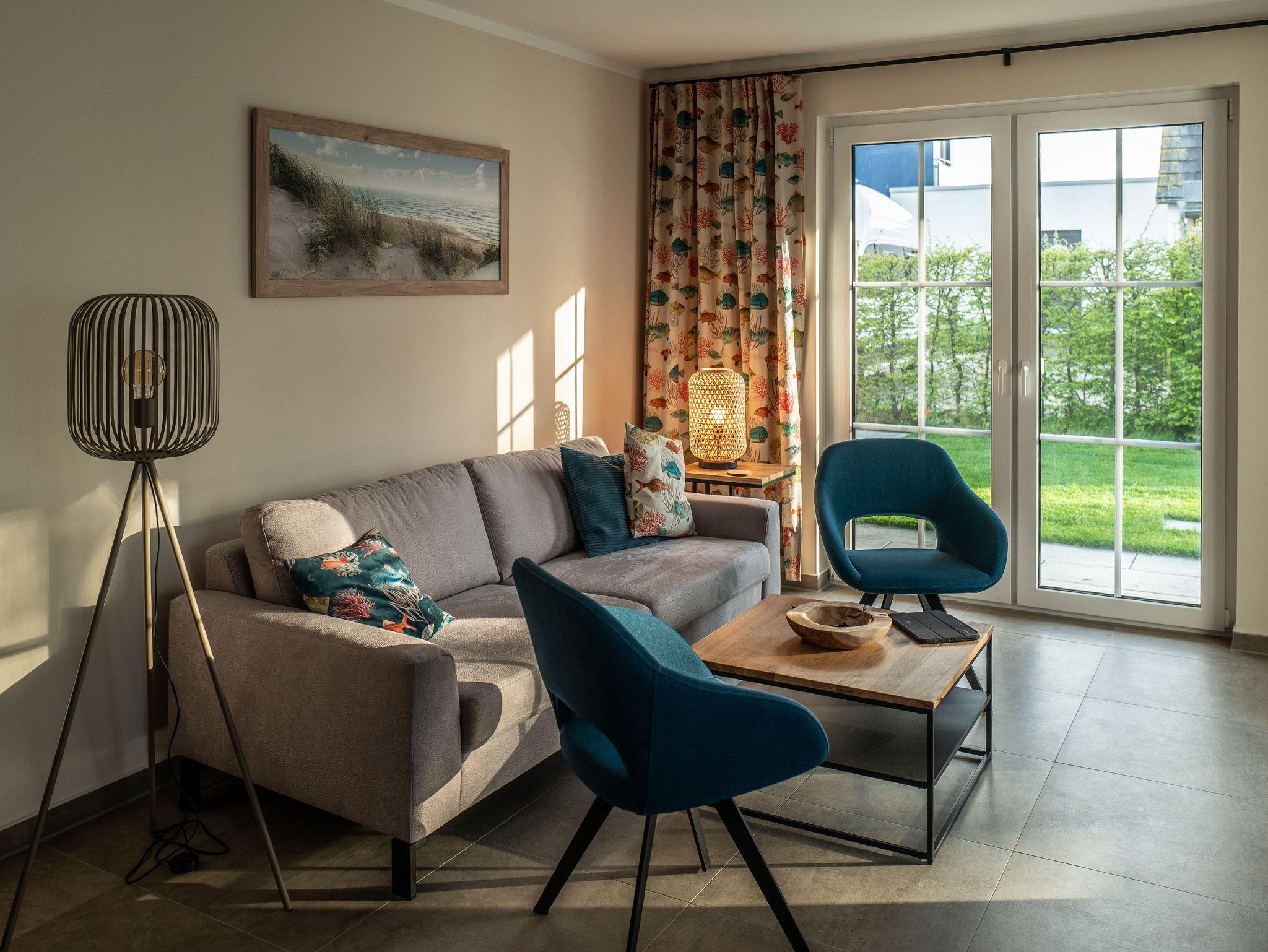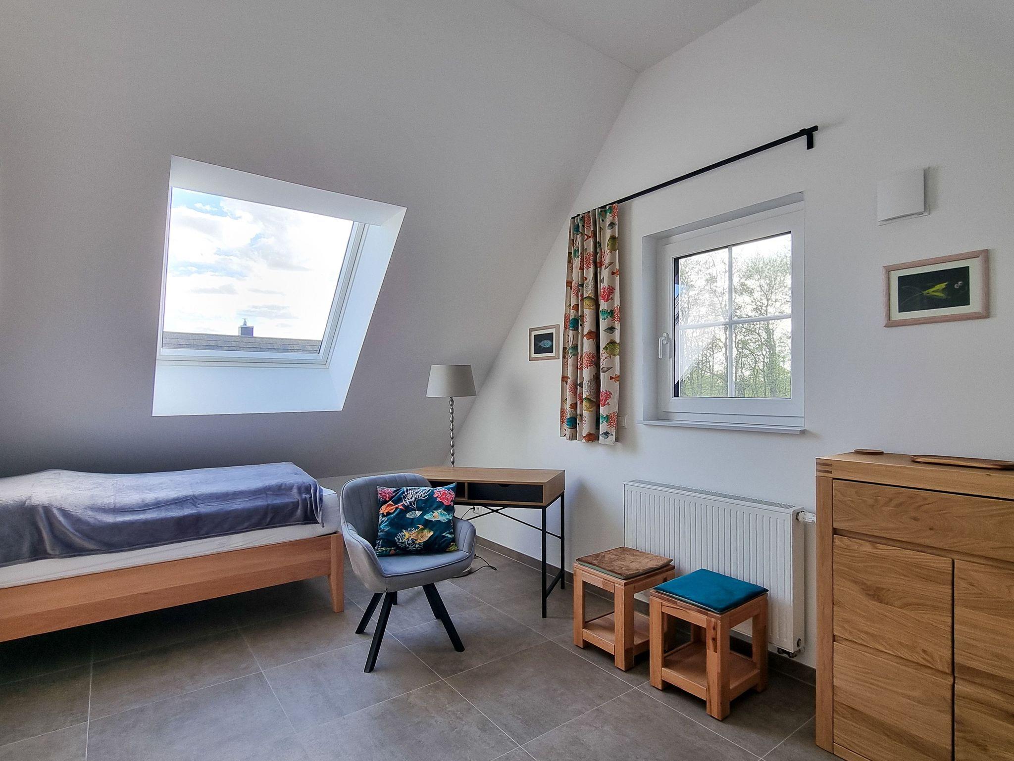 Unser Ferienhaus Sternblick ist nigelnagelneu und mit allem ausgestattet, was das Herz begehrt und erfreut durch viele funktionale und neckische Details. Das Feriendomizil mit kleinem Garten auf umzäuntem Grundstück befindet sich in zweiter Reihe direkt hinter dem Deich des Breeger Boddens, unweit des Ostseestrandes. In drei Schlafzimmern (2x 1 Doppelbett; 1x 2 Einzelbetten) finden bis zu 6 Personen ein Plätzchen. Der Wohnbereich mit angeschlossener Terrasse und integrierter Küche ist von gemütlichen Sitzmöbeln umgeben. Der große Esstisch lädt zu Geselligkeit mit der Familie und Freunden ein. Im EG befindet sich außerdem ein separater TV Raum. Außerdem ist der Sternblick durch schnelles Internet und einen hellen Arbeitsplatz Homeoffice tauglich. Die Sauna im OG (kostenpflichtig) eignet sich besonders an kalten Tagen zum Relaxen und Durchwärmen. Fahrräder können im Gartenhaus abgestellt werden.