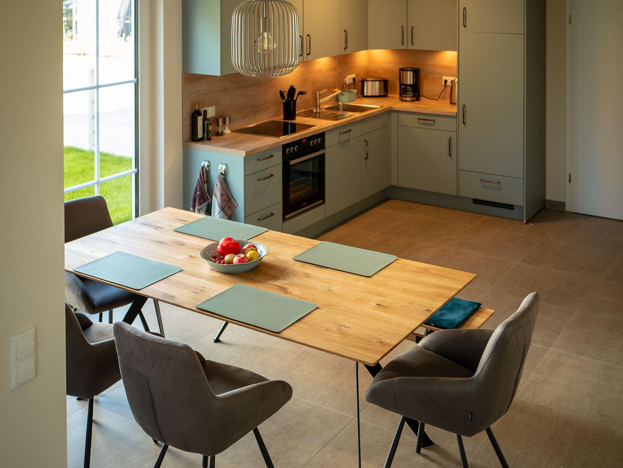 - vollausgestattete Küche mit Herd & Backofen, Geschirrspüler, Kühlschrank mit Gefrierfach, Kaffeemaschine, Toaster, Wasserkocher