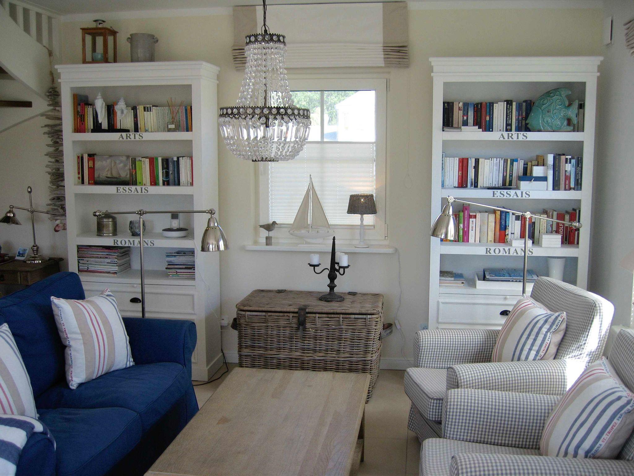 Helle Sandtöne im ganzen Haus von hellem Beige bis Taupe, aufgelockert durch maritimes Blau, verleihen den Räumen eine warme und sommerliche Atmosphäre.