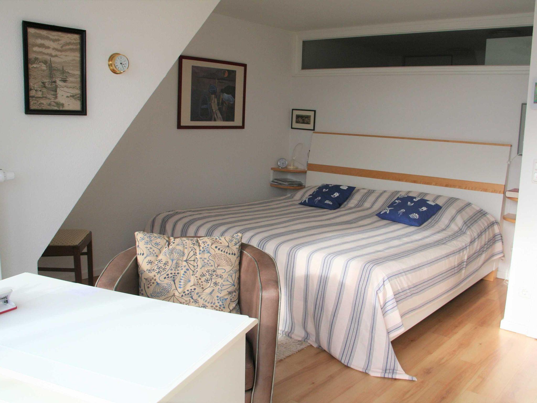 Im Schlafzimmer befindet sich ein Doppelbett. Das Kinderzimmer verfügt über zwei einzelstehende Betten. Ein Kinder-/ Babybett kann zugestellt werden.