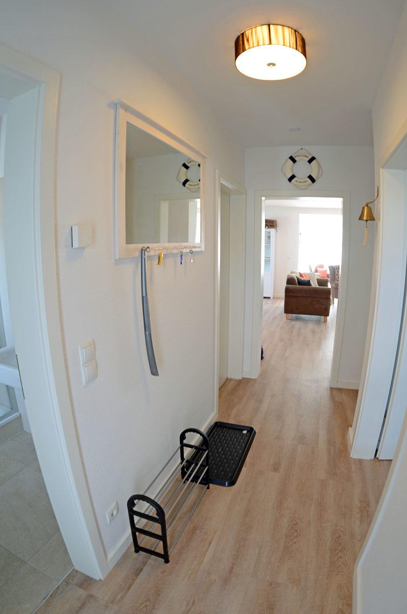 Das Ferienhaus "Bootsmann" ist im Erdgeschoss ausgestattet mit einem großzügigen Wohn- und Essbereich mit gemütlicher Couchlandschaft, Kamin und TV, Sat mit Dolby Surround Anlage, DVD & CD Player, Gesellschaftsspielen und Büchern, mit einer offenen, komplett ausgestatteten Einbauküche mit einem 4- Platten Ceranfeld, Backofen, Kühl- und Gefrierkombination, Geschirrspüler und diversen Elektrogeräten z.B. Mikrowelle, Kaffeemaschine. Hier steht auch ein Bad mit Dusche zur Verfügung. Das Schlafzimmer im EG ist mit einem Etagenbett für Kinder (Matratze je 90×200), Kinderspielzeug und großem Kleiderschrank eingerichtet. Im Abstellraum steht eine Waschmaschine zur Verfügung.