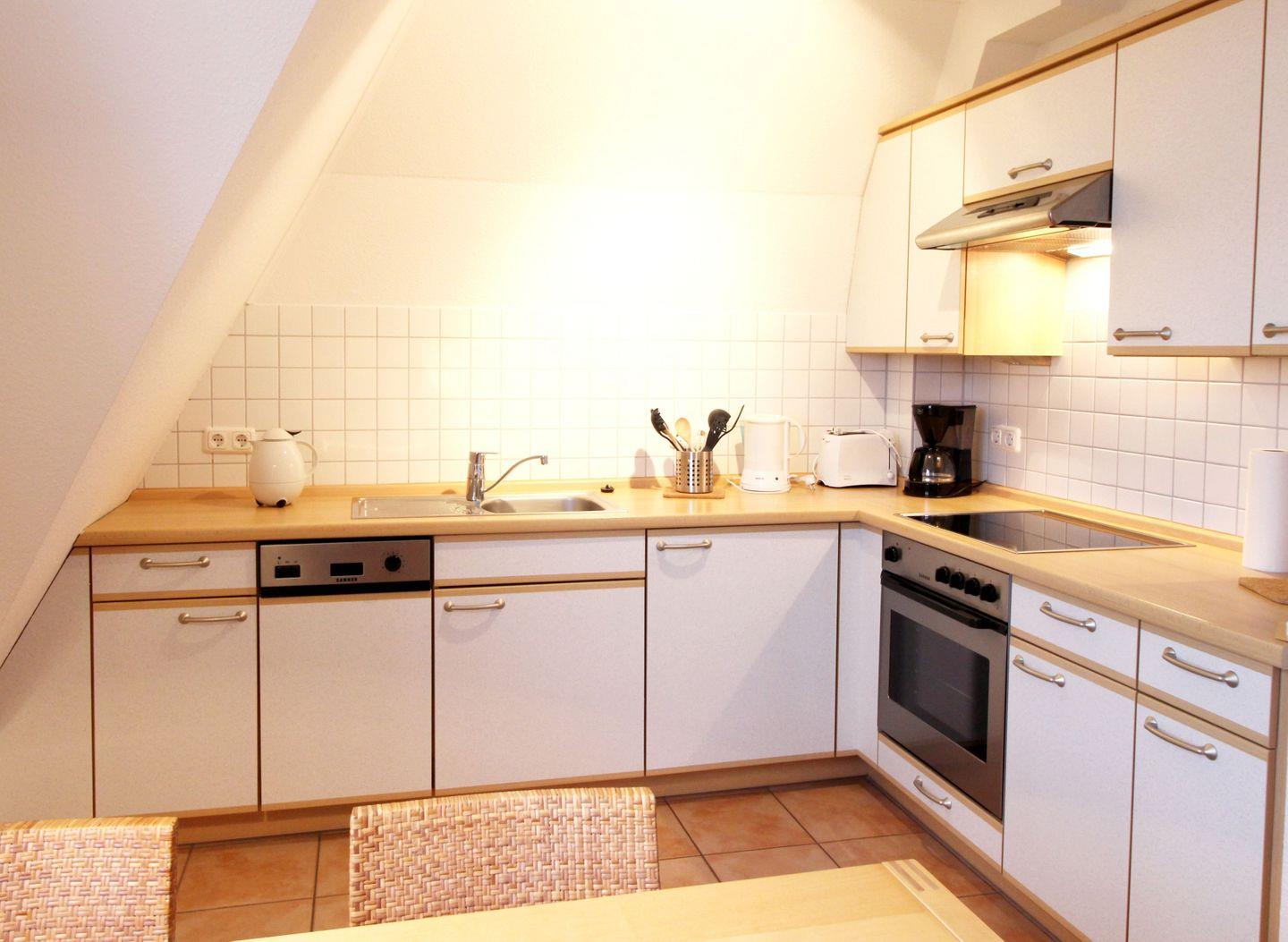 Die exclusiv ausgestattete Ferienwohnung liegt in der 2. Etage des Wohnkomplexes " Hafenhäuser Breege" in direkter Nähe des Hafens! Durch diese exponierte Lage haben Sie von dem nach Süden ausgerichteten Balkon und aus dem Schlafzimmerfenster einen herrlichen Boddenblick! Die geschützte Loggia ist mit Balkonmöbeln ausgestattet. Sie betreten die Wohnung über einen geräumigen Flur. Hier befindet sich eine Garderobe mit Schuhregal, sowie die Zugänge geradeaus zum Gäste-WC und die Holztreppe in die obere Etage, rechts zur Küche und links zum Wohnzimmer mit großer Fensterfront und der Tür zur großen Loggia. Der Wohnraum ist sehr geschmackvoll und besonders gemütlich ausgestattet. Liebevoll aufeinander abgestimmte Wohnaccessoires sorgen für ein harmonisches Gesamtbild. Besonders die unterschiedlichen Lampen und Deckenleuchter lassen den Wohnraum im rechten Licht erscheinen. Das gemütliche Sofa bietet zusätzliche 2 Schlafplätze durch eine Ausziehfunktion. Zwei Sessel stehen für Sie bereit und laden in die Leseecke ein! Ein Sat-TV mit DVD und einer Hifi-Anlage mit CD Player runden das Ambiente perfekt ab. Die Küche ist komplett ausgestattet. Ein Kühlschrank mit Gefrierfach, ein Geschirrspüler, eine Kaffeemaschine, ein Toaster, ein Wasserkocher sowie ein Herd mit Backofen und Ceranfeld sind vorhanden. Der gemütliche Essbereich für 6 Personen befindet sich direkt unterhalb eines großen Fensters. Von der Küche gehen Sie in den Abstellraum der Ihnen ausreichend Platz bietet. Die beiden Schlafzimmer und das Tageslichtbad mit Dusche, WC und Waschmaschine, sowie einem großen Handtuchtrockner erreichen Sie über die Holztreppe vom Flur aus. Das rechte Schlafzimmer verfügt über ein großes Doppelbett, einen Sessel, einen großen Kleiderschrank und einen Kleiderständer als Ablagemöglichkeit. Das Fenster bietet einen tollen Blick auf den Bodden! Ein Radiowecker und zwei Nachttische mit dazugehörigen Lampen gehörten ebenfalls zur Ausstattung. Das Schlafzimmer zur Linken verfügt über zwei Einzelbetten und einen weiteren großen Kleiderschrank. Ein abschließbarer Fahrradraum sowie ein Waschraum mit Waschmaschine/Trockner (mit Münzgeräten) im Nebengebäude stehen ebenso zur Verfügung. Der Tiefgaragenstellplatz ist im Mietpreis enthalten und sichert Ihnen eine unkomplizierte Parkplatzsituation. Verleben Sie unvergessliche Urlaubstage direkt am Breeger Bodden!