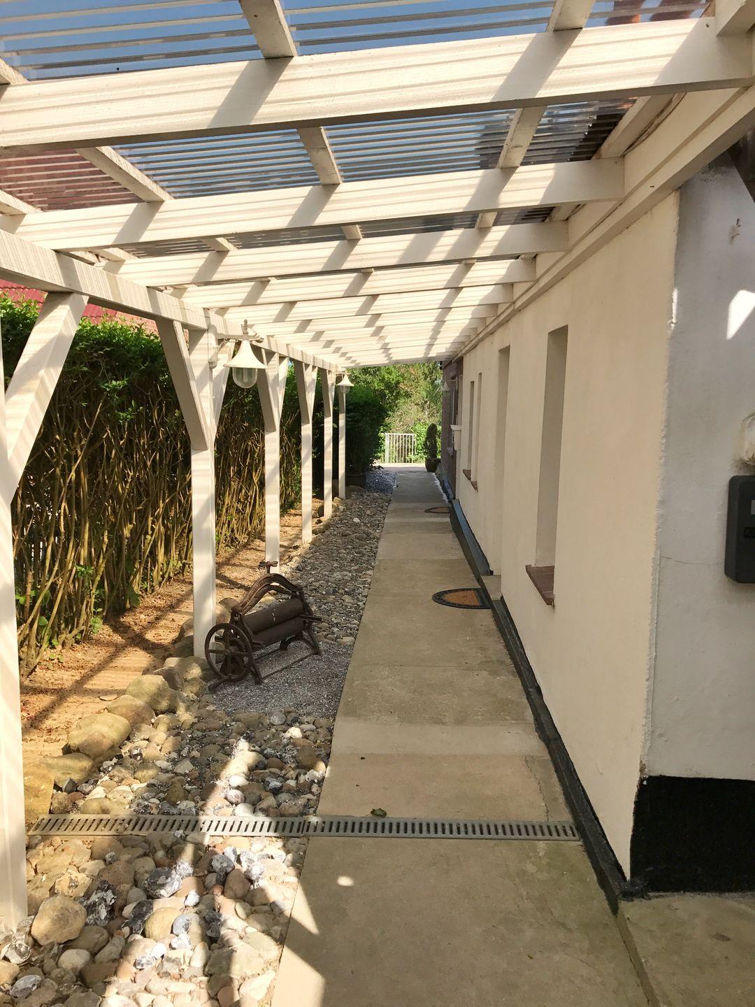 Abseits vom Touristentrubel am südlichen Ortsausgang des Seebades Breege auf der Halbinsel Wittow liegen die Ferienwohnungen und Zimmer Hochzeitsberg 5. Direkt am Breeger Bodden mit Blick auf die vorbeifahrenden Schiffe finden Sie solide, idyllische Domizile für Ihren erholsamen Urlaub. Unser Ferienobjekt Am Hochzeitberg 5 verfügt über die beiden Doppelzimmer "Nordkap" und "Tromsö" und die zwei Ferienwohnungen "Fjorde" und "Lofoten". Die Zimmer und Ferienwohnungen befinden sich auf einem 2.300 m² großen Grundstück mit zauberhaftem und liebevoll angelegtem Garten. Hier laden viele kleine Sitzecken und überdachte Terrassen zum Verweilen und Entspannen ein. In Strandkörben können Sie die Sonne pur genießen. Selbstverständlich haben wir auch an einen Grill und Sonnenschirme für Sie gedacht, so dass Sie Ihre Ferien rundum bestens versorgt starten können. Die beiden Doppelzimmer verfügen über je eine separate Küche, die sich jedoch außerhalb des Zimmers befindet und über einen überdachten Außengang zu erreichen ist.