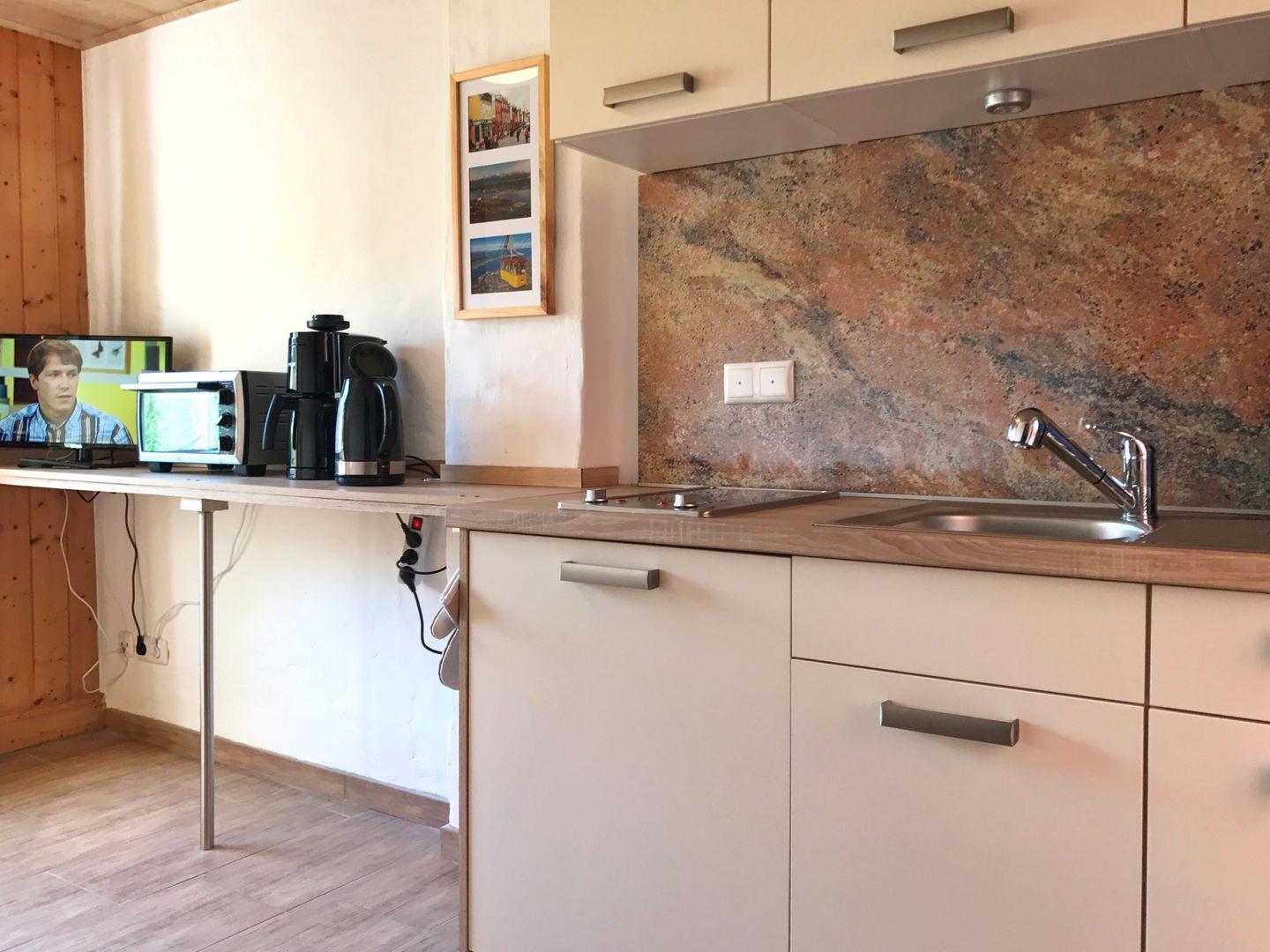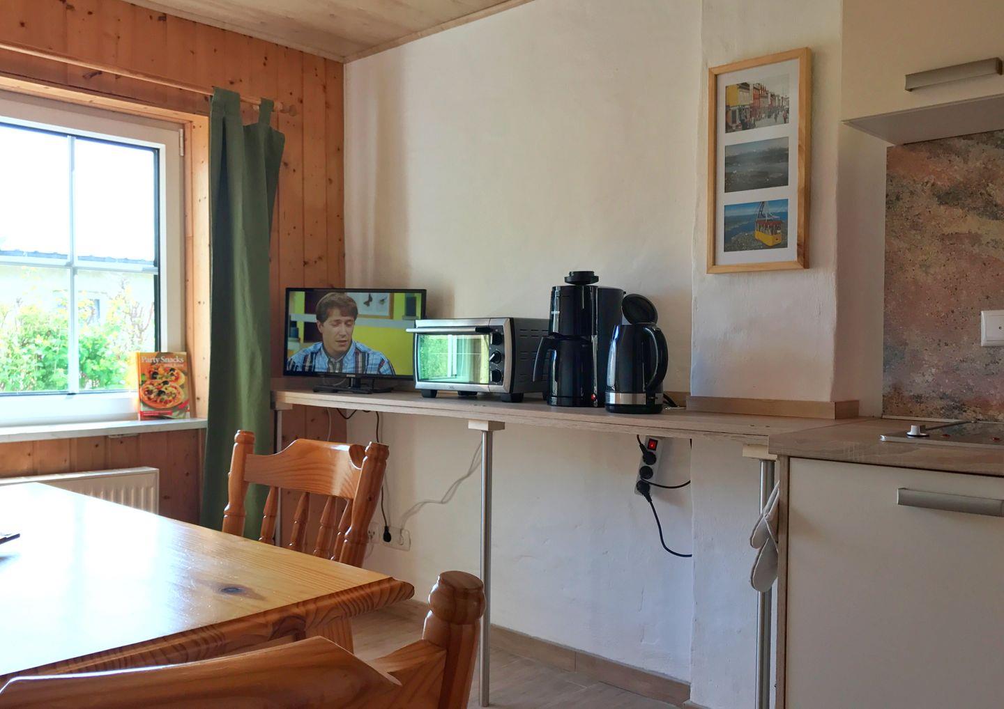 Das Appartement "Tromsö" befindet sich ebenerdig im Gartenhaus/Anbau der Ferienanlage. Das Appartement verfügt über einen Schlafraum mit Doppelbett /TV und über ein kleines aber feines Bad mit Dusche und WC sowie über eine separate Wohn-Küche mit TV/DVD, die über einen Laubengang zu erreichen ist. Zur Wohnung gehört ein Pkw-Stellplatz auf dem Grundstück. WLAN ist vorhanden.