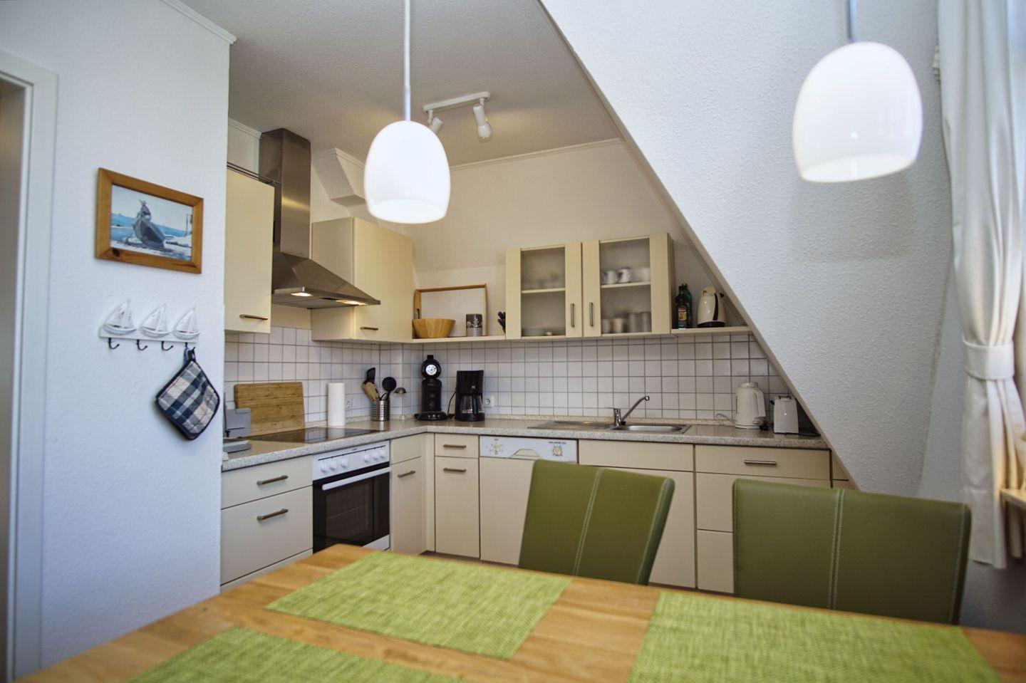 KÜCHE // separate Küche mit Essbereich, 4-Platten Ceranherd, Spülmaschine, Kühlschrank mit Gefrierfach, Backofen, Mikrowelle, Toaster, Wasserkocher, Kaffeemaschine, reichlich Besteck, Geschirr und Küchenutensilien, Radio ++