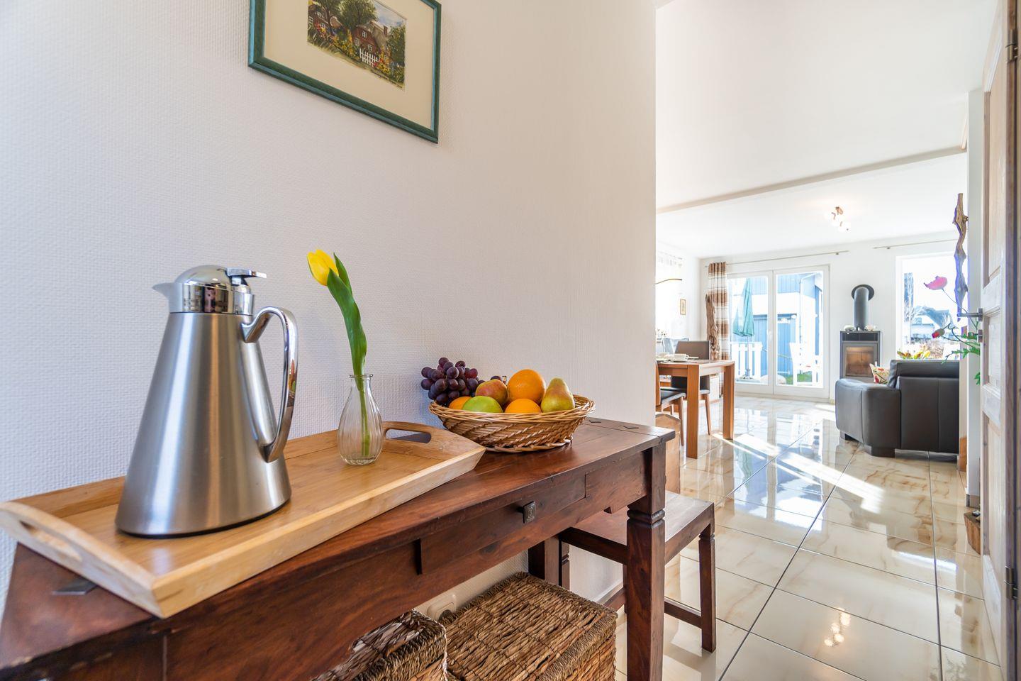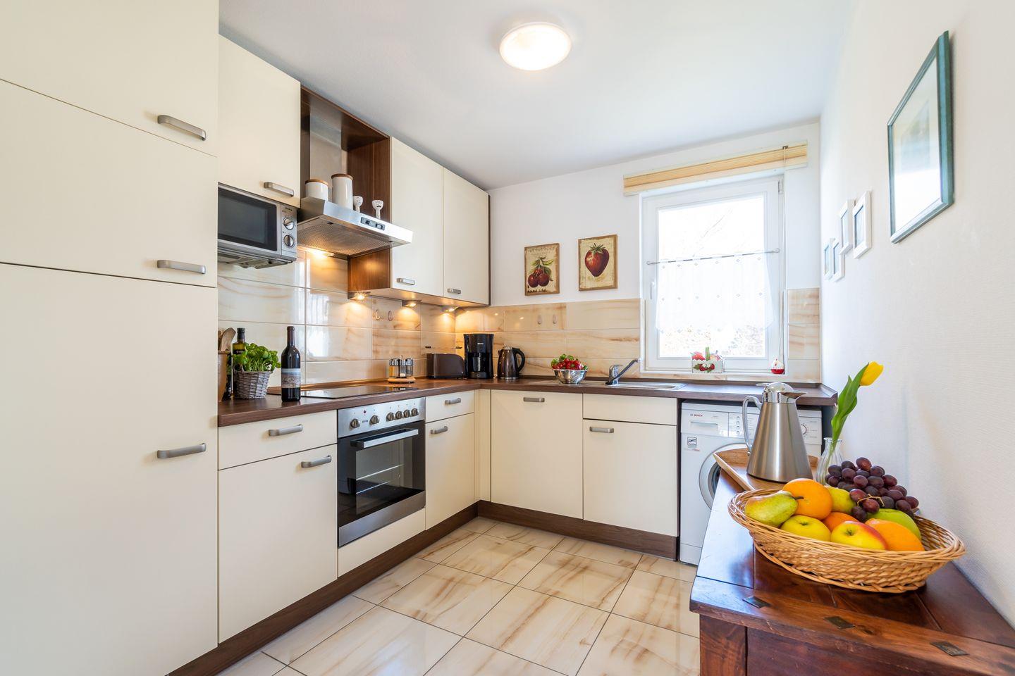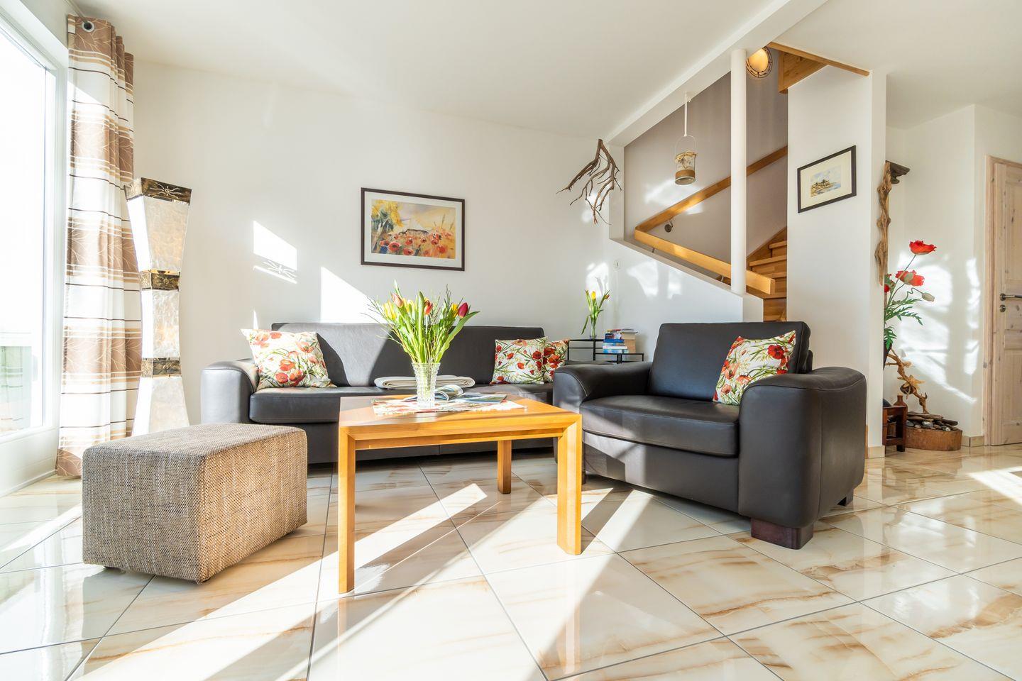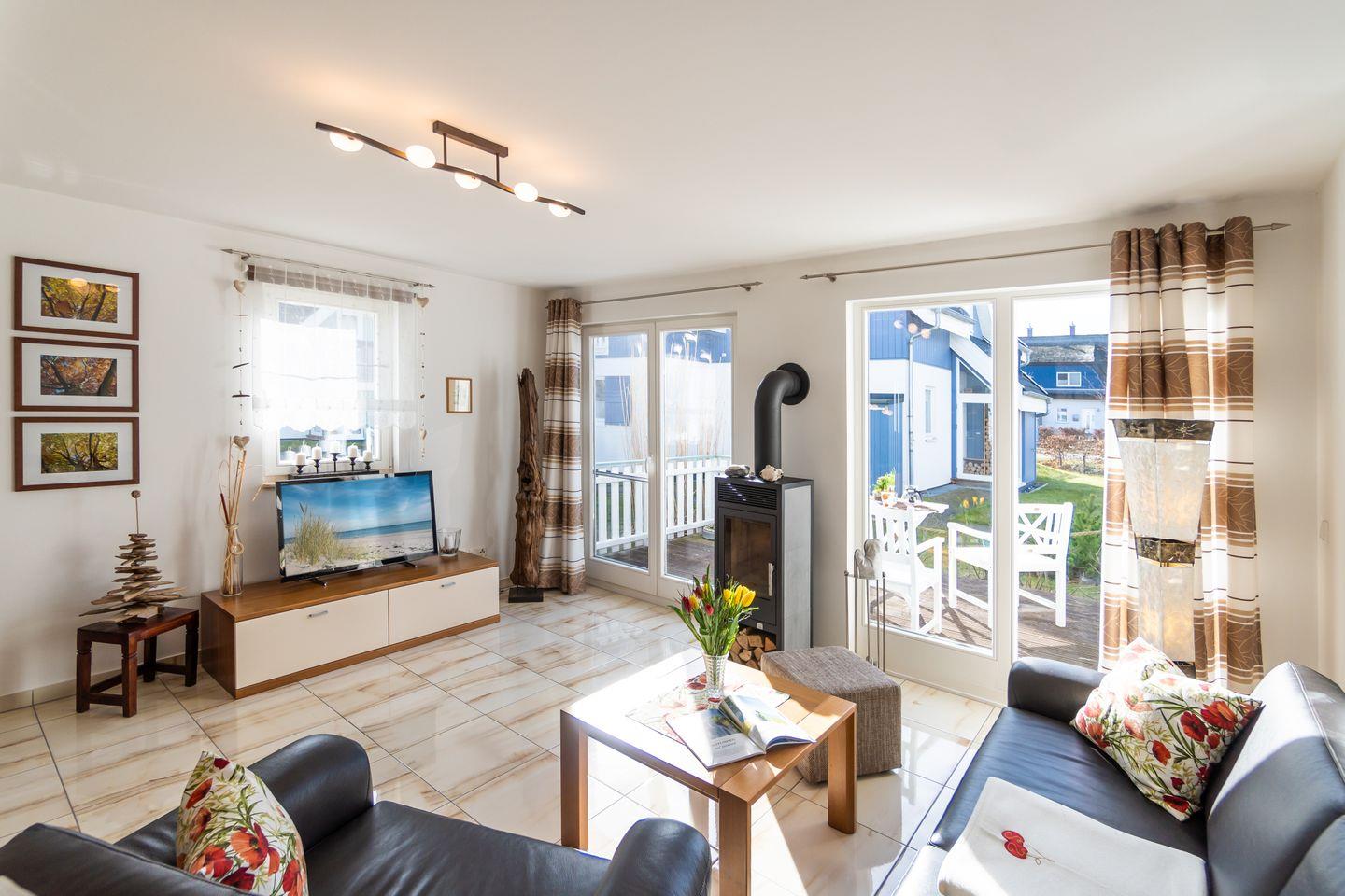 Im “Karhunmökki” heißt es nicht “Moin”, sondern “Moi” – wie der Finne sagt. Diese charmante Doppelhaushälfte im skandinavischen Stil bietet auf zwei Etagen ein behagliches Urlaubsdomizil für bis zu 4 Personen und ein Kleinkind. Ein Kinderreisebett (ohne Bettzeug) und ein Hochstuhl steht für die kleinen Entdeckerinnen bereit. Die komplett ausgestattete Küche mit modernen Einbaugeräten lässt keine Wünsche offen und macht gemeinsames Kochen zum Vergnügen. Der helle Wohnbereich, geschmackvoll eingerichtet und mit einem Kaminofen ausgestattet, lädt zu gemütlichen Abenden voller angeregter Konversation ein. Für Erholung sorgen zwei Schlafräume mit bodentiefen Fenstern und komfortablen Doppelbetten sowie zwei stilvolle Bäder. Eine Infrarot-Sauna lässt das Wohn- und Lebensgefühl der Ostsee-Nachbarn aus dem hohen Norden aufkommen. Im Außenbereich erwartet Sie eine große, möblierte Holzterrasse – herrlich zum entspannten Träumen in der Abendsonne.