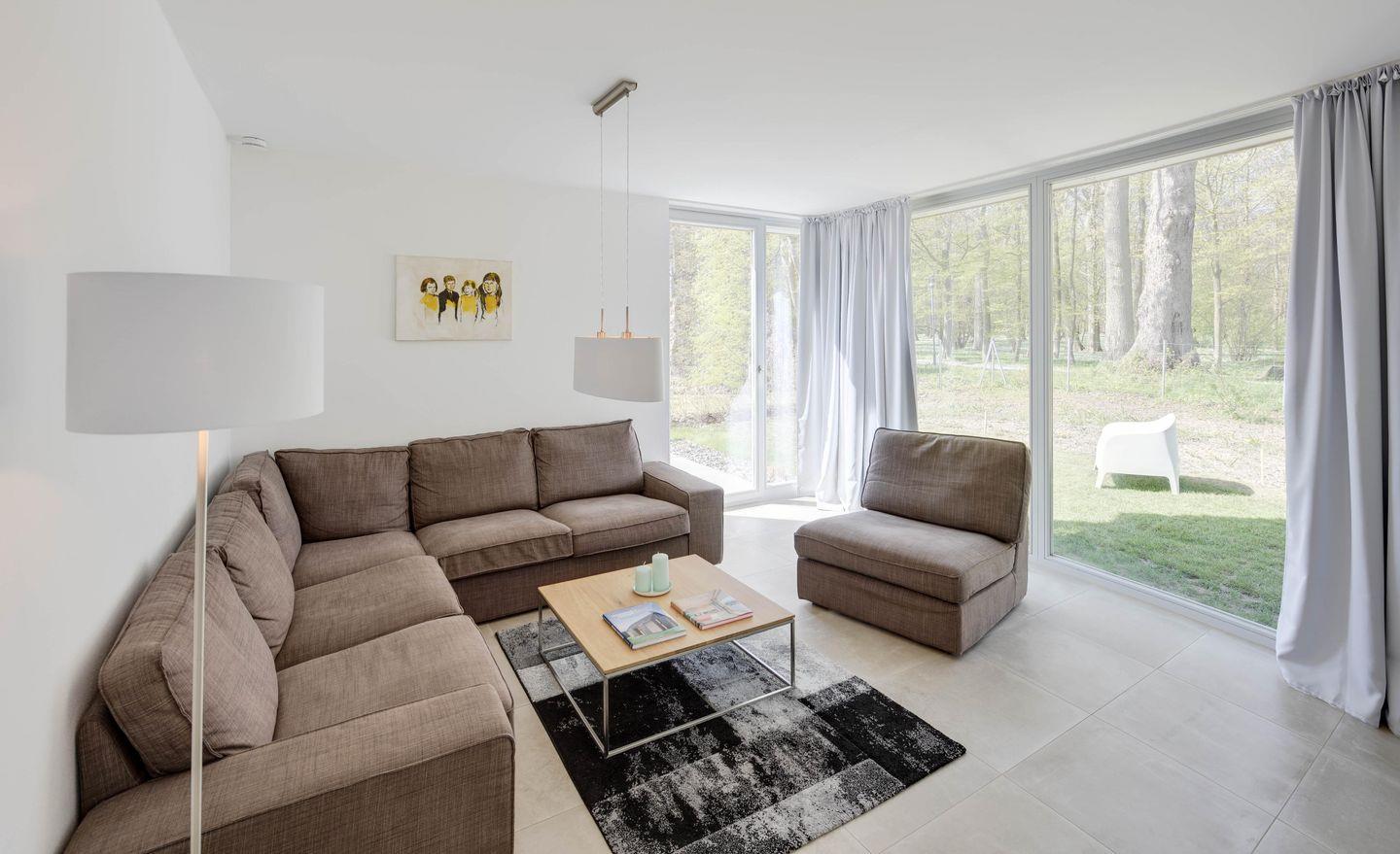 Im Erdgeschoss erwartet Sie eine maßgefertigte, mit hochwertigen Geräten und Kochutensilien ausgestattete Küche mit Kochinsel und Induktionskochfeld. Der Eck-Kamin verbindet den großzügigen Essbereich und das helle Wohnzimmer mit Sofalandschaft; das Panoramafenster lenkt den Blick ins Grüne. Auf dem modernen Fernseher können Sie sich unkompliziert mit Ihrem Netflix-Account anmelden. Eine DVD- sowie eine umfassende Spielesammlung wollen außerdem erkundet werden. Ein Schlafzimmer mit Doppelbett und ein hochwertig ausgestattetes Bad mit Dusche ergänzen das Erdgeschoss.