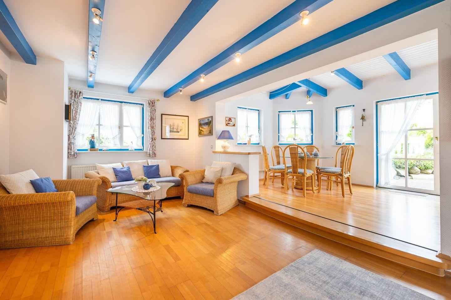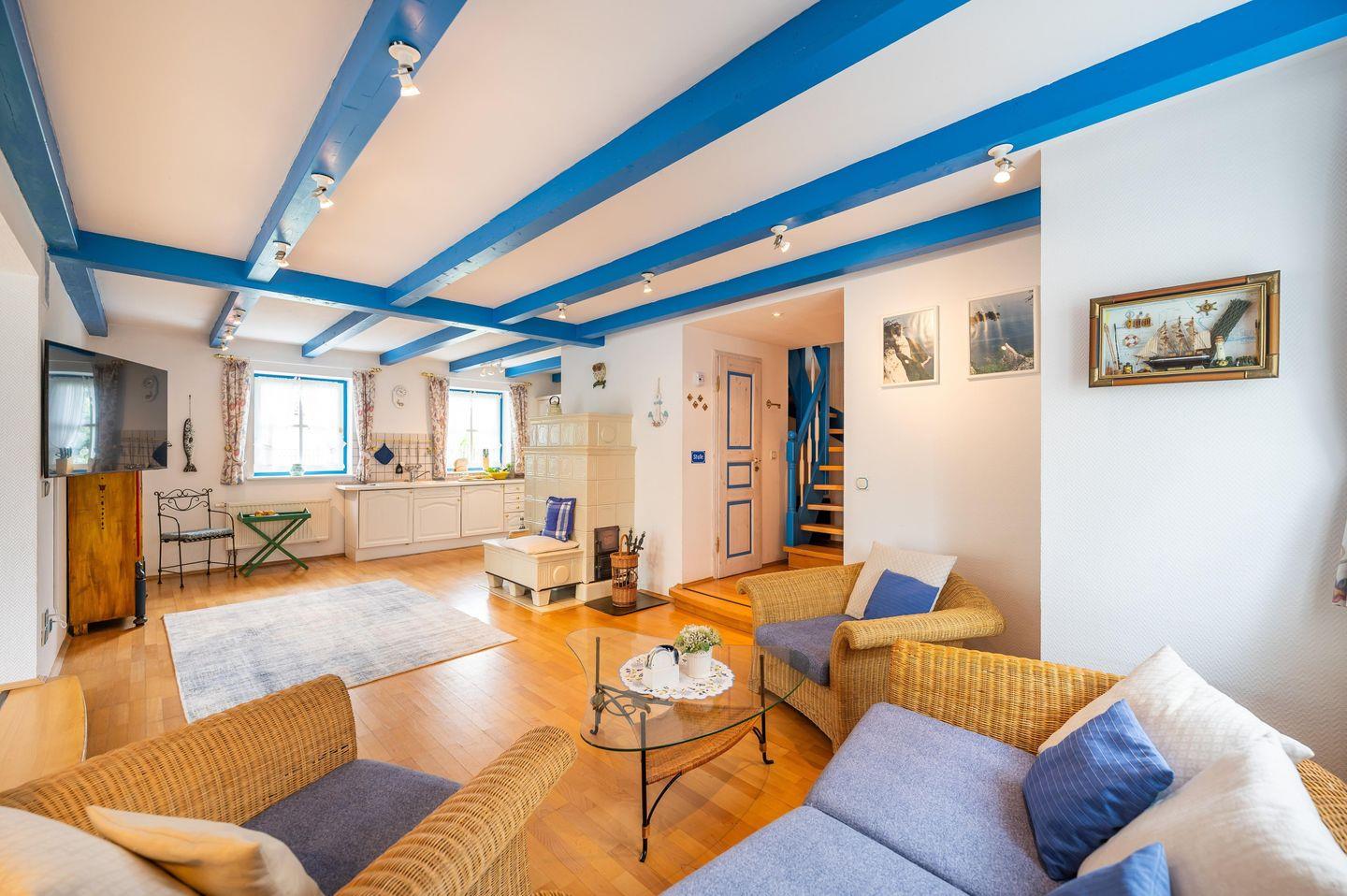 Genießen Sie auf 100 m² historischen Charme und modernen Komfort – ideal für bis zu 5 Personen. Das frisch renovierte Kapitänshaus bietet 3 Schlafzimmer, 2 Bäder, einen lichtdurchfluteten Wohnbereich mit Wintergarten und Kachelofen sowie eine voll ausgestattete Küche. Die Terrasse mit Strandkorb und ein idyllischer Garten laden zum Entspannen ein. Nur 2 km vom Sandstrand entfernt und unmittelbar am Breeger Hafen gelegen, ist es der perfekte Ausgangspunkt für Erholung, Wassersport und Homeoffice.