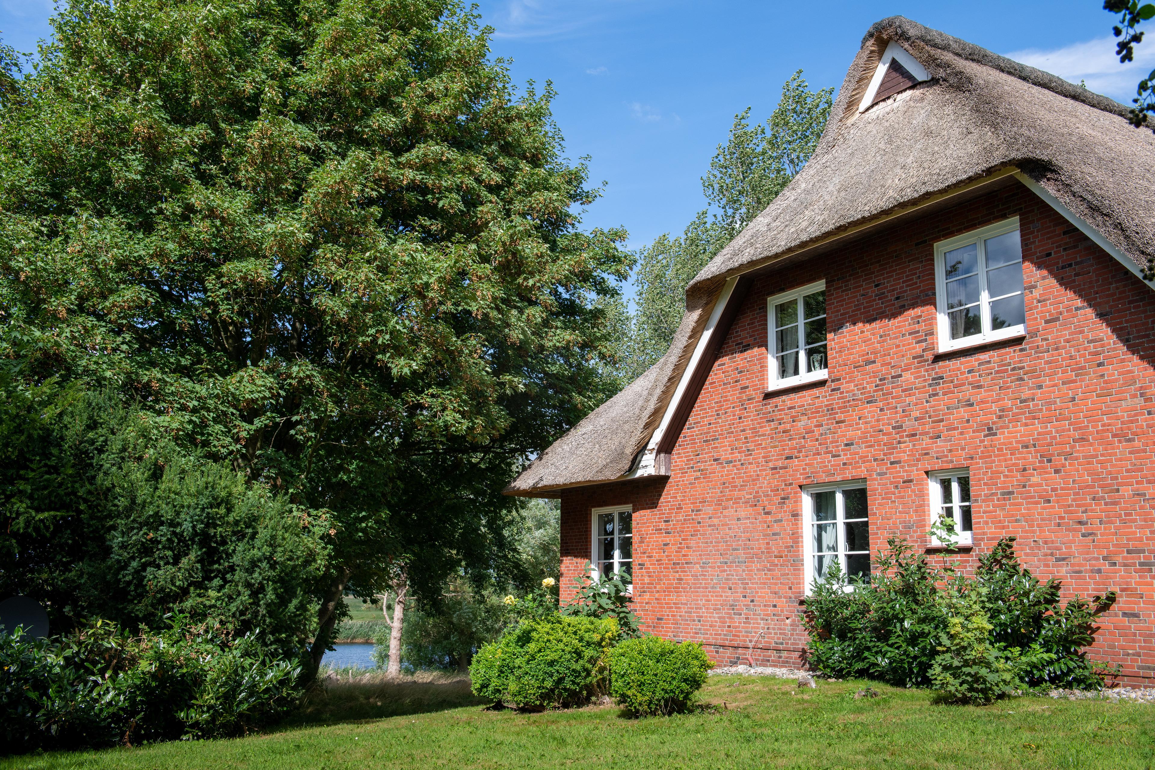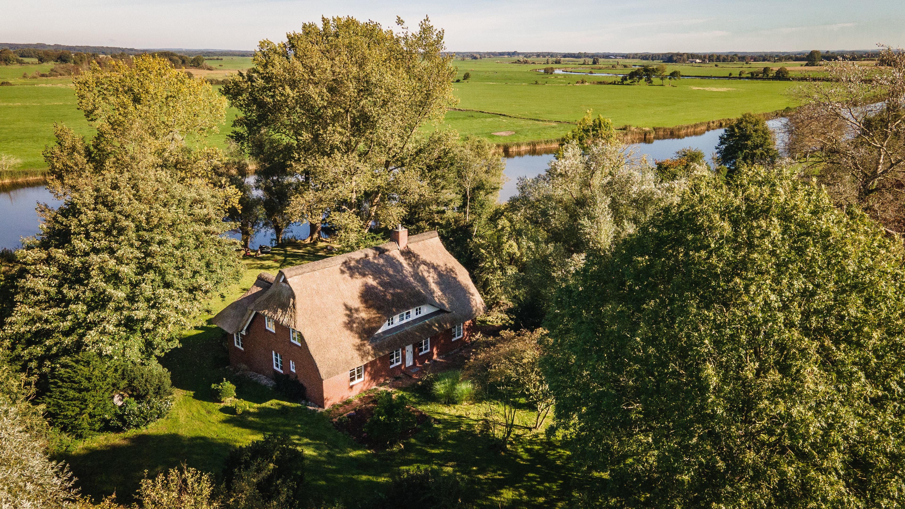 Ferienhaus unter Reet, direkt am Ufer der Eider