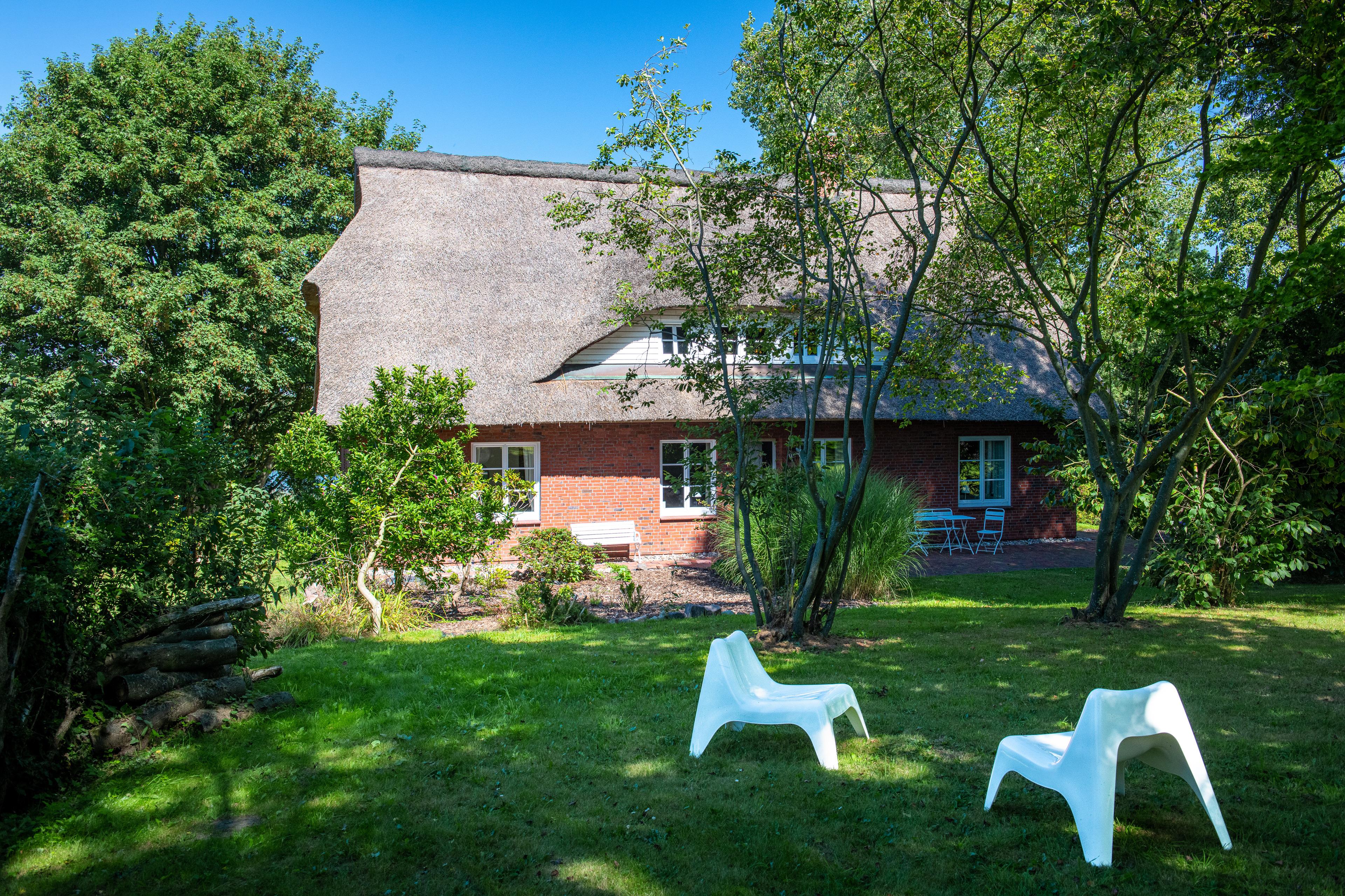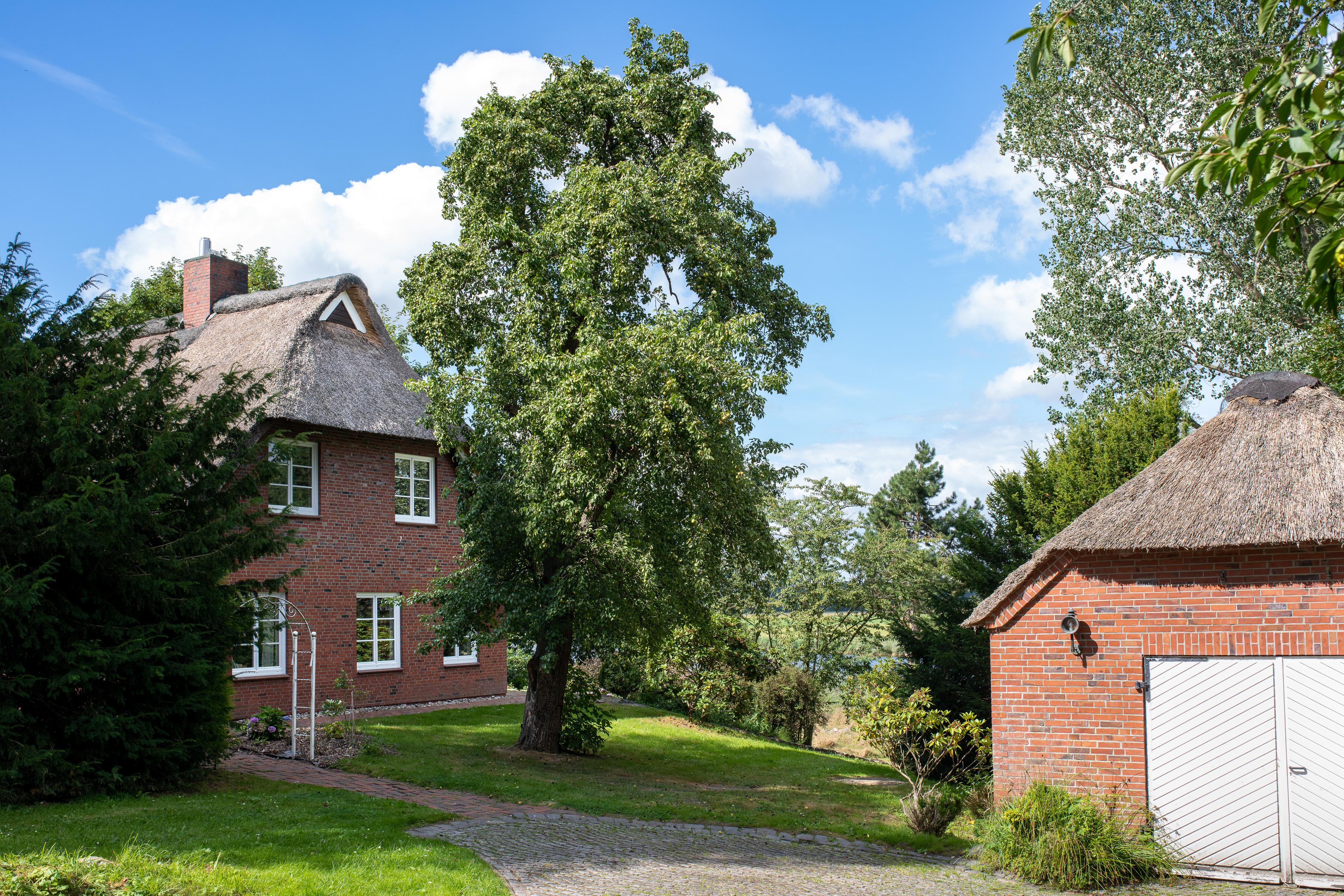 Erleben Sie einen unvergesslichen Urlaub in unserem charmanten Reetdachhaus direkt an der Eider; ideal für Familien, Freunde oder Naturbegeisterte. Das 200?m² große Ferienhaus bietet mit 5 Schlafzimmern Platz für bis zu 8 Gäste und liegt traumhaft eingebettet in die Flusslandschaft zwischen Feldern, Wiesen und Wäldern; auf einem über 5.000?m² großen Naturgrundstück mit direktem Wasserzugang.