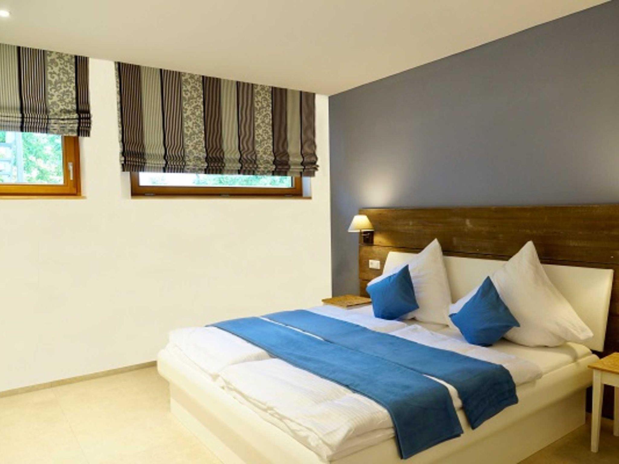 Nach Süden ausgerichtete, barrierefreie nichtraucher Erdgeschosswohnung mit großer Terrasse. Fliesenboden mit Fußbodenheizung, einem Schwedenofen und Tresor. Voll ausgestattete Küche mit Indukionskochfeld, Spülmaschine, Mikrowelle, Kaffeemaschine und Toaster. 1 Schlafzimmer mit Doppelbett 180x200 cm, ausziehbares Schlafsofa 120x190 cm im Wohnraum, 1 Zusatraum mit einem Etagenbett, 120x200m ein Kinderbett aufgestellt werden .Großes Badezimmer. Vor Ort können Sauna (gegen Gebühr),Holz für Schwedenofen ( gegen Gebühr) Waschmaschiene,Trockner gebucht werden.