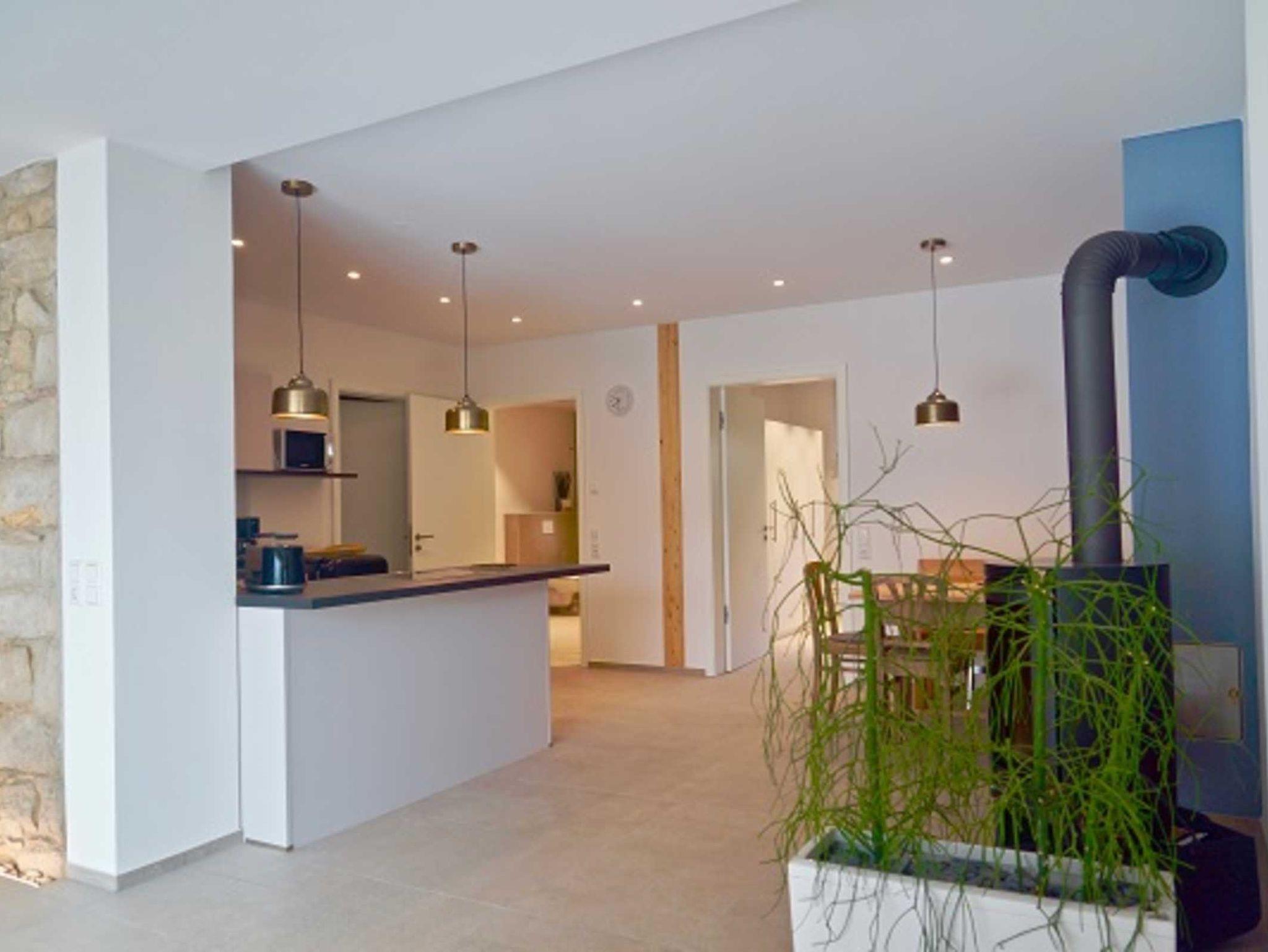 In alter umgebauter Scheune haben wir vier moderne Wohnungen mit viel Herzblut geschaffen. Wir haben versucht das Alte mit dem Neuen zu verbinden, dabei wurde das ursprüngliche Gemäuer und der Dachstuhl erhalten. In Verbindung mit modernem Ambiente und viel Liebe zum Detail strahlen die Wohnungen einen ganz besonderen Charme aus. Jede Wohnung hat einen Balkon oder eine Terrasse, die Erdgeschosswohung ist zudem Barrierefrei. Alle Wohnungen sind mit Bodenheizung ausgestatt und drei Wohnungen haben zusätzlich einen Schwedenofen. Es gibt einen großen Wellnessraum mit Sauna,Dusche und Ruhebereich ( gegen Gebühr), der Gemeintschaftlich genutzt werden kann und durch unser Angebot der Kosmetikpraxis erweitert wird. Auf den Parkplätzen ist außerdem eine E-Tankstelle vorhanden und Fahrradunterstellmöglichkeiten gibt es auch.