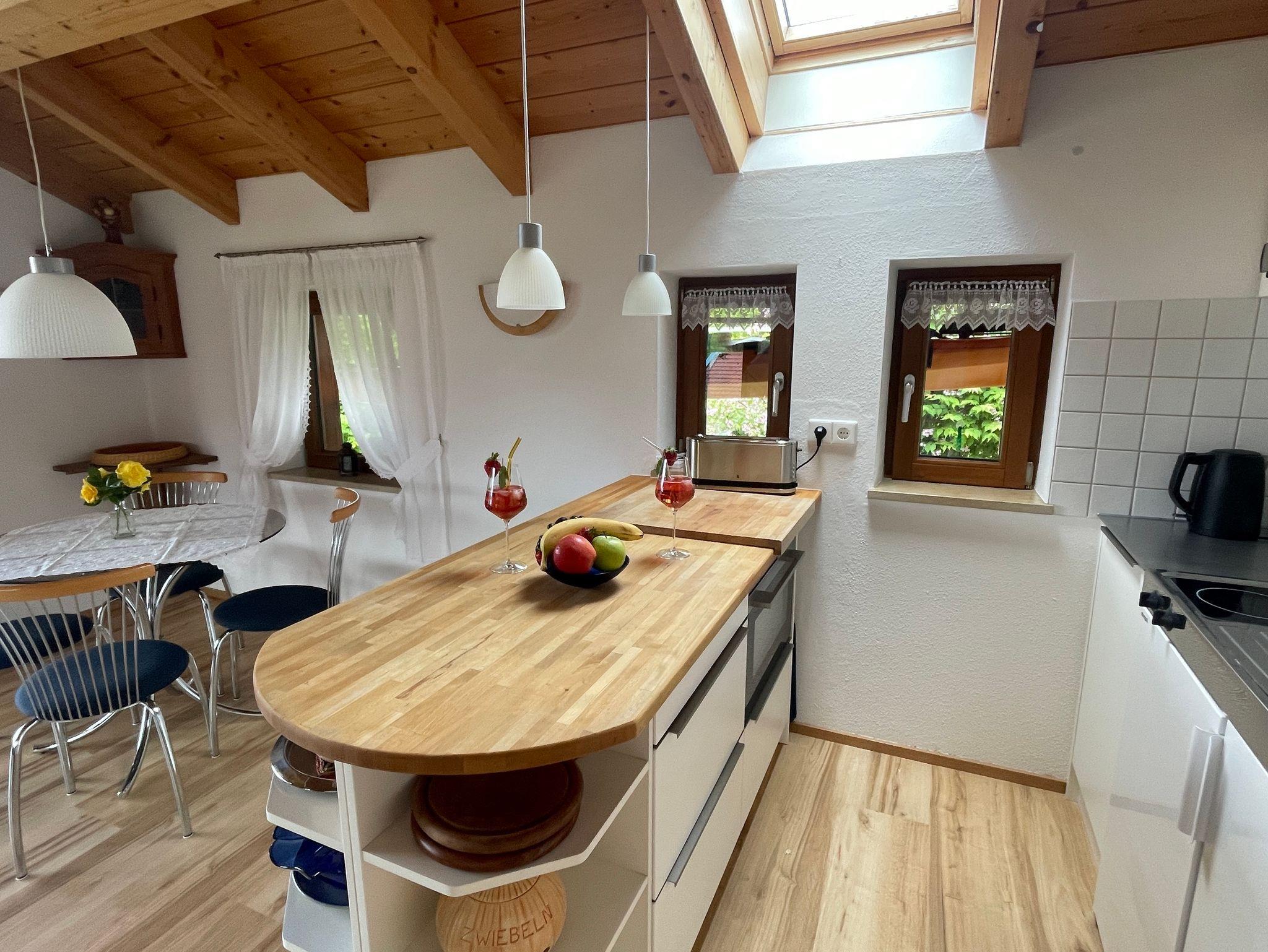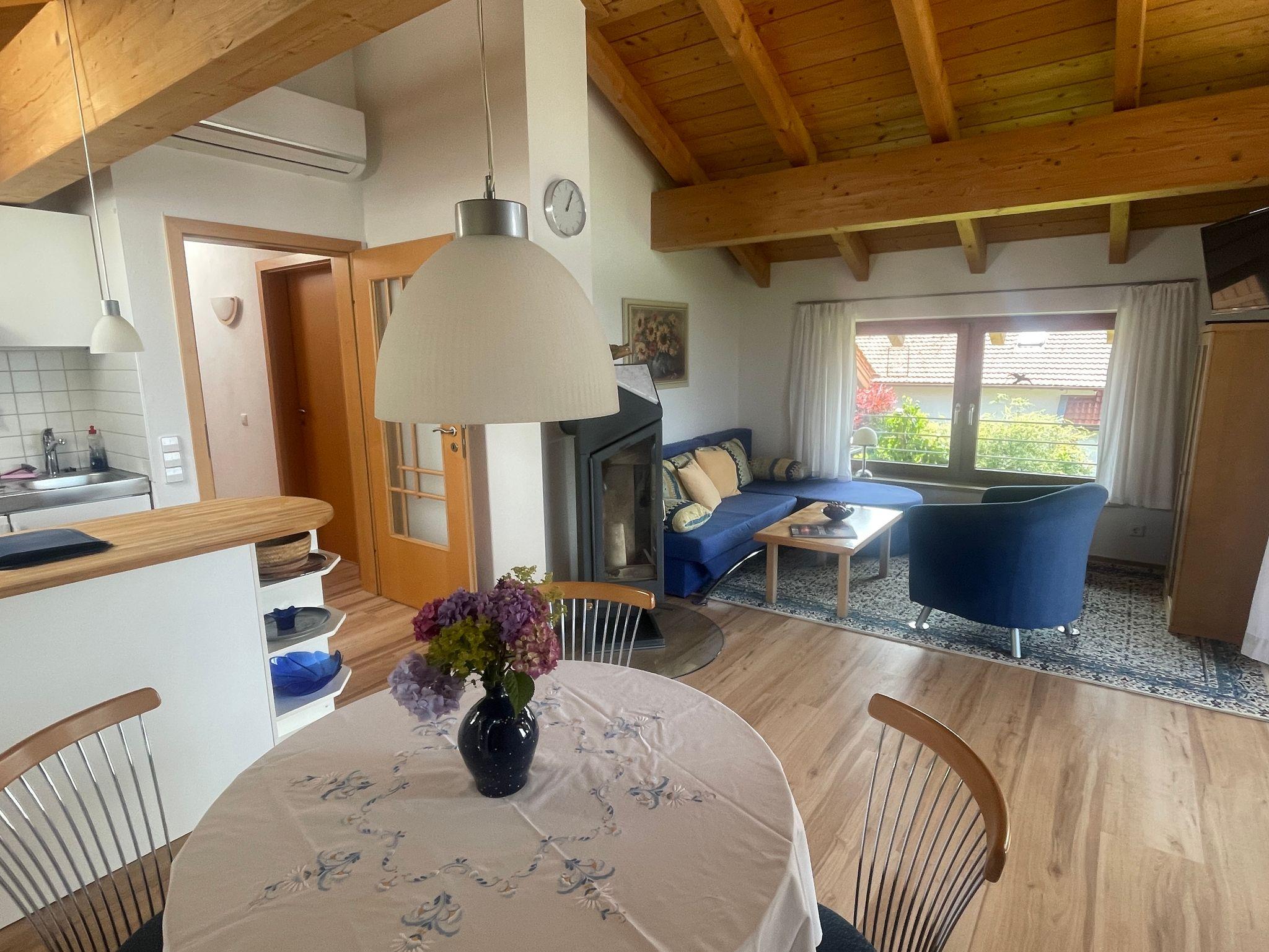 abgeschlossene Ferienwohnung in der ersten Etage, Ausrichtung nach Süden, Westen und Norden, Sichtdachstuhl;