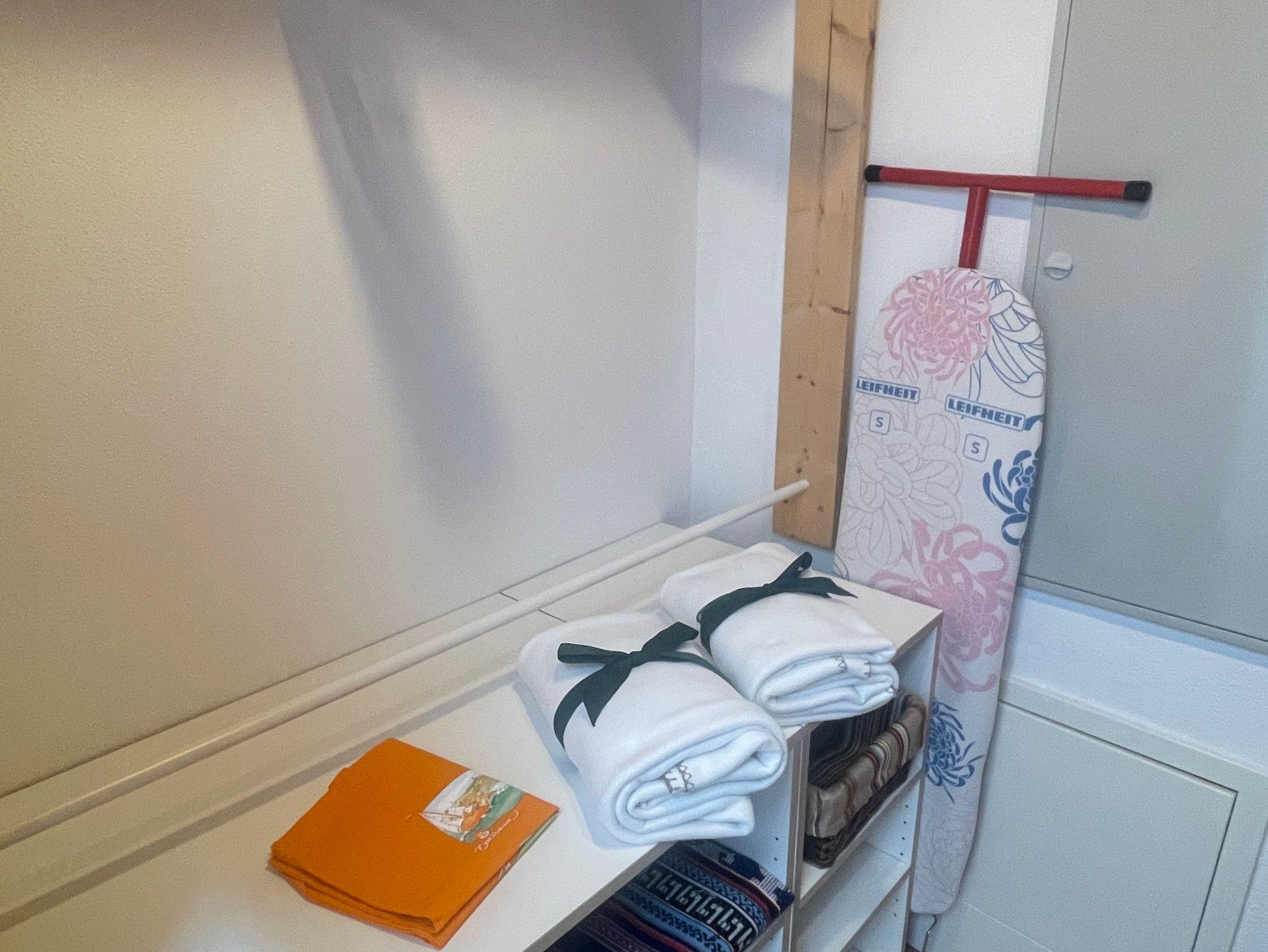 Wäscheständer, Wäscheklammern, Bügelbrett und Bügeleisen, Stausauger, Putzmittel vorhanden.