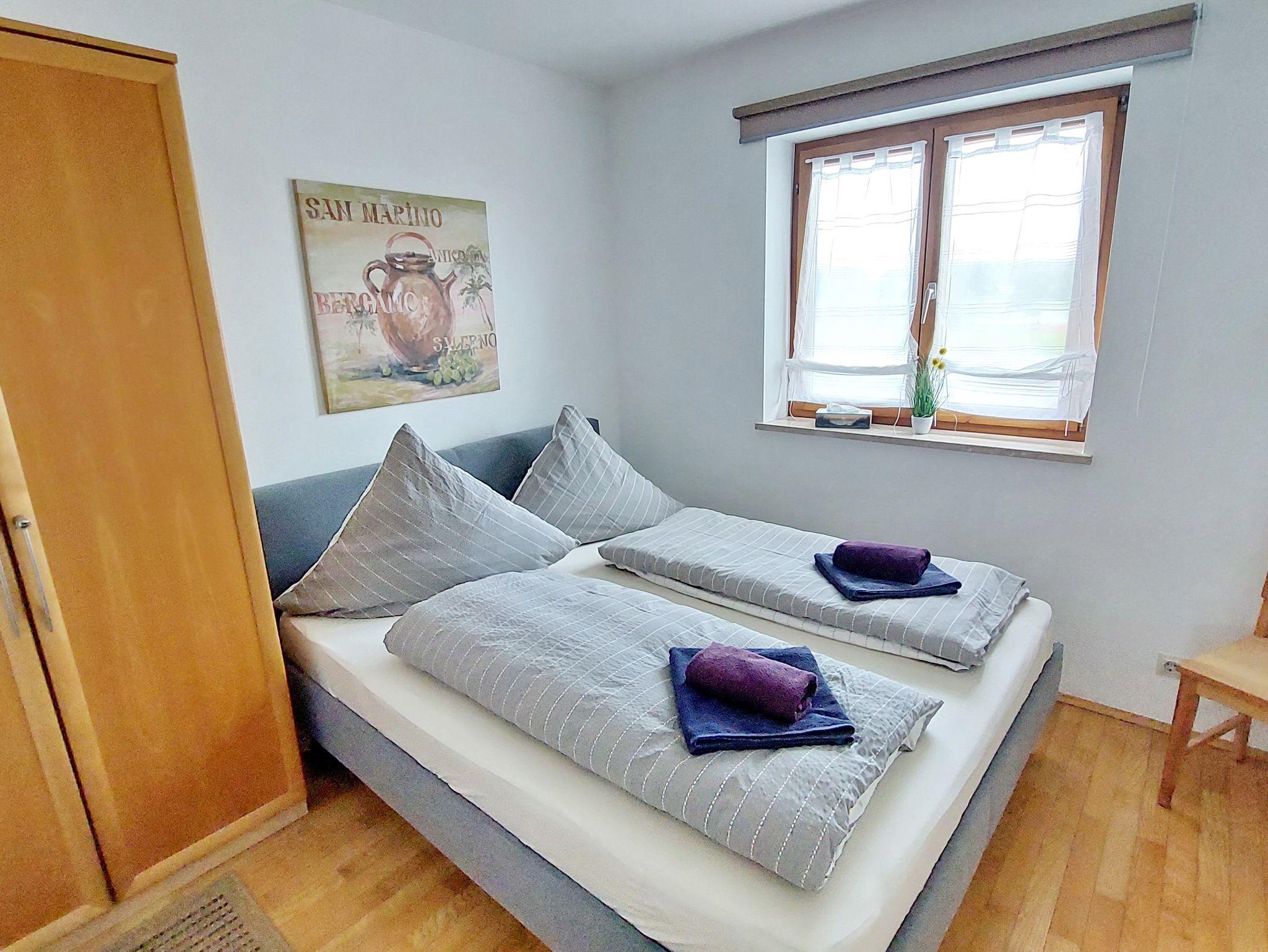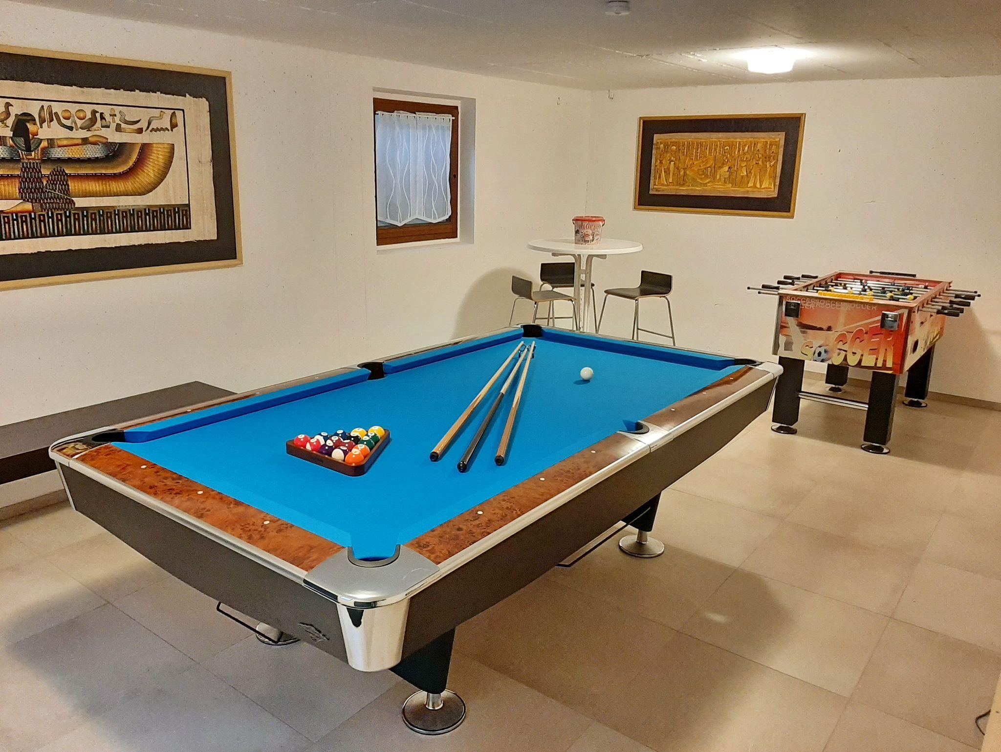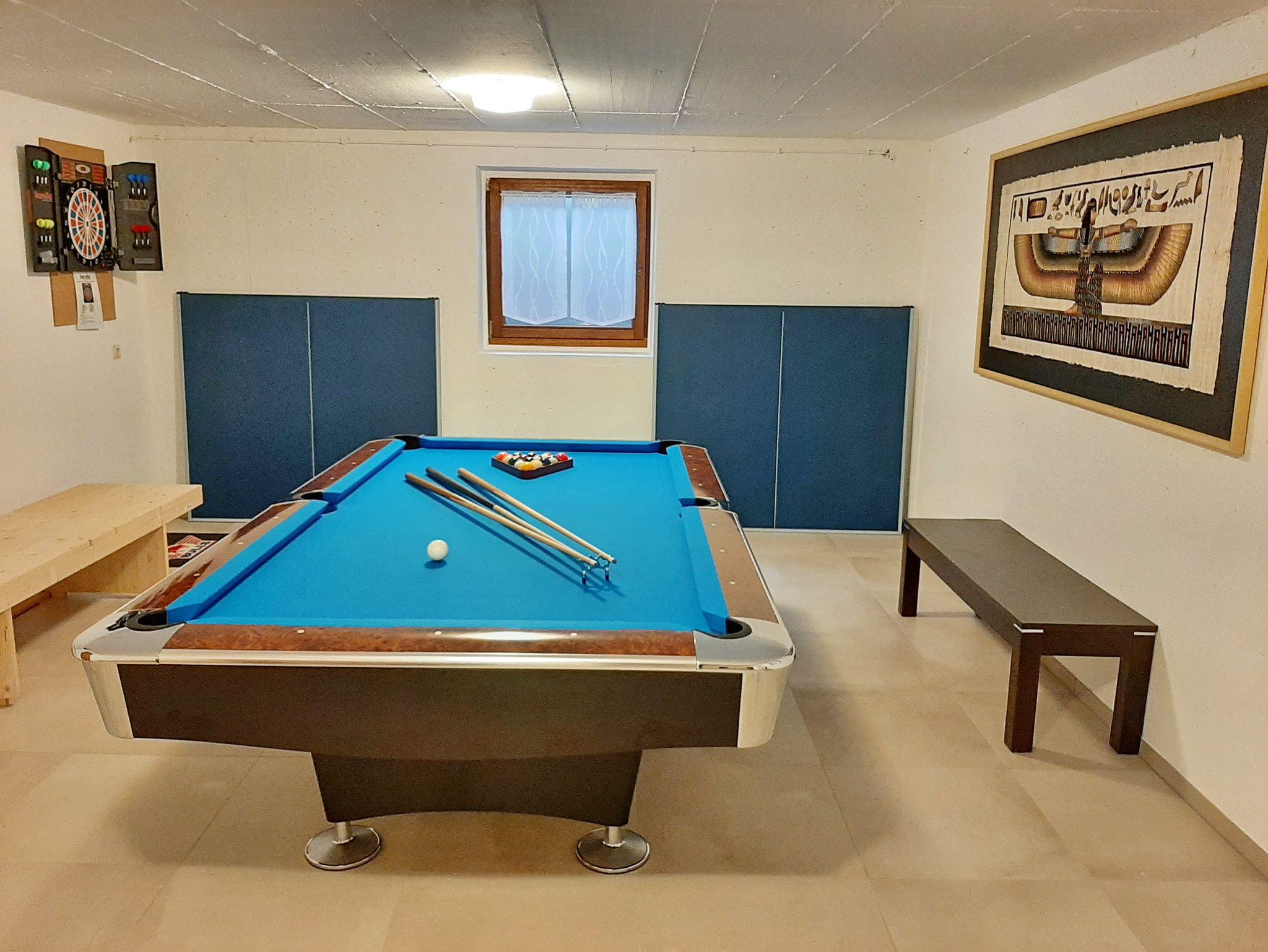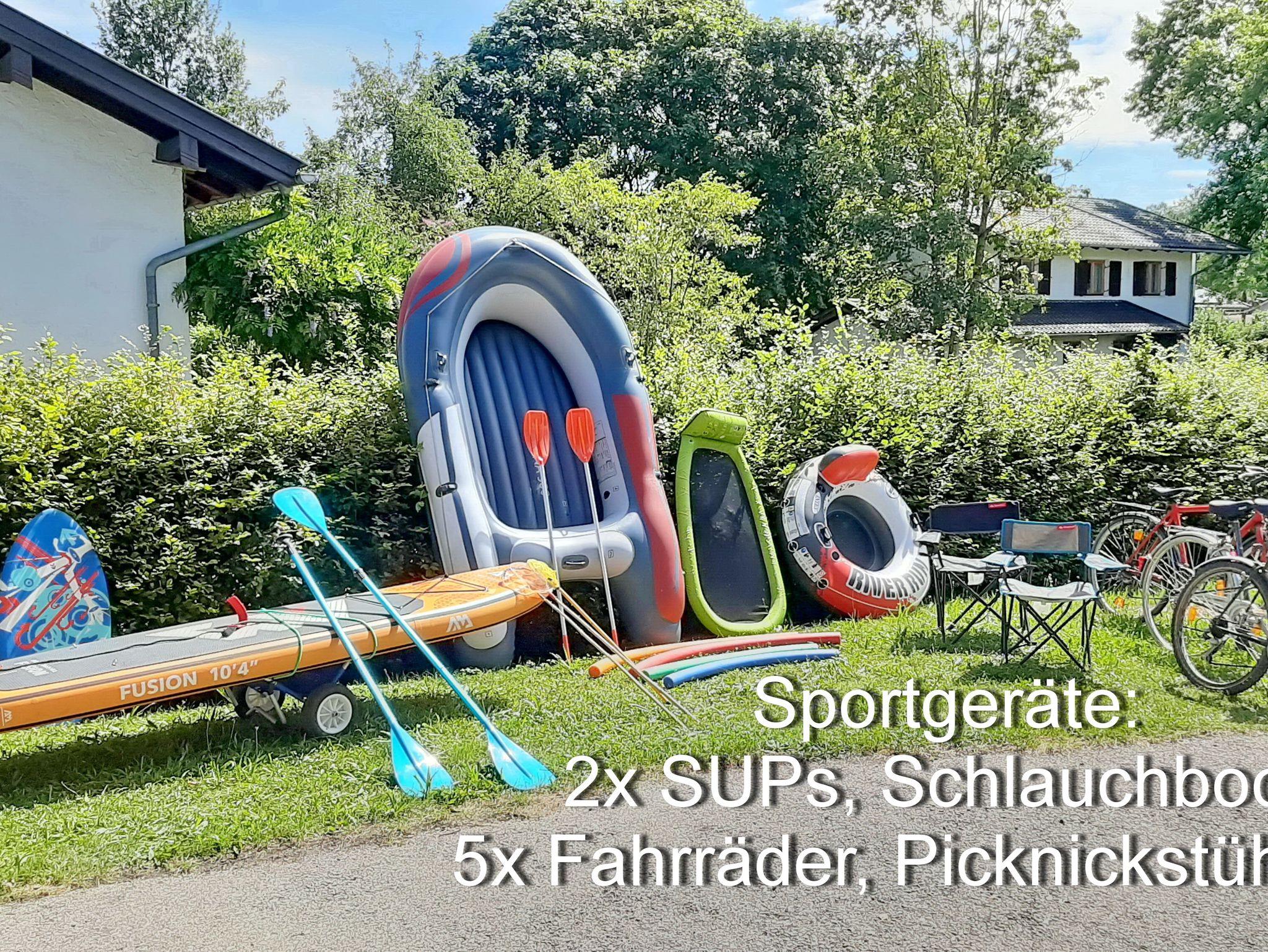 Chiemsee-Ferienhaus Schlegel:Nach einer vielleicht langen Anreise erwartet Sie eine kleine, gekühlte Begrüßung und die Sportgeräte warten schon auf Ihre Benutzung. Z. B. nehmen Sie das Fahrrad und das Stand-Up-Paddel direkt zum Strandbad und starten die erste Runde am Chiemsee. Natürlich sind Bettbezüge und Handtücher für alle Feriengäste vorhanden. Die Doppelhaushälfte befindet sich im Ortsgebiet von Breitbrunn, nur 800 m entfernt zum Chiemseeufer. Das Haus bieter auf 190 qm (incl. Studiowohnung 45 qm und zweiter Küche) Ihnen großzügige Räumlichkeiten für bis zu 8 Personen. Auf der Terrasse mit elektr. Markise, einer gemütlichen Bestuhlung mit Relax-Sessel finden Sie Zeit zum Entspannen. Gerne können Sie den im Untergeschoss befindlichen Hobbyraum mit 8ft Billardtisch, einer Tischtennisplatte, Kicker (Turnierniveau), sowie elektronischer Dartscheibe benützen. In das Ferienhaus können Sie auch gerne Ihren Haustier mitbringen. Zusätzlich steht für Sie im Waschraum eine Waschmaschine und ein Wäschetrockner bereit.