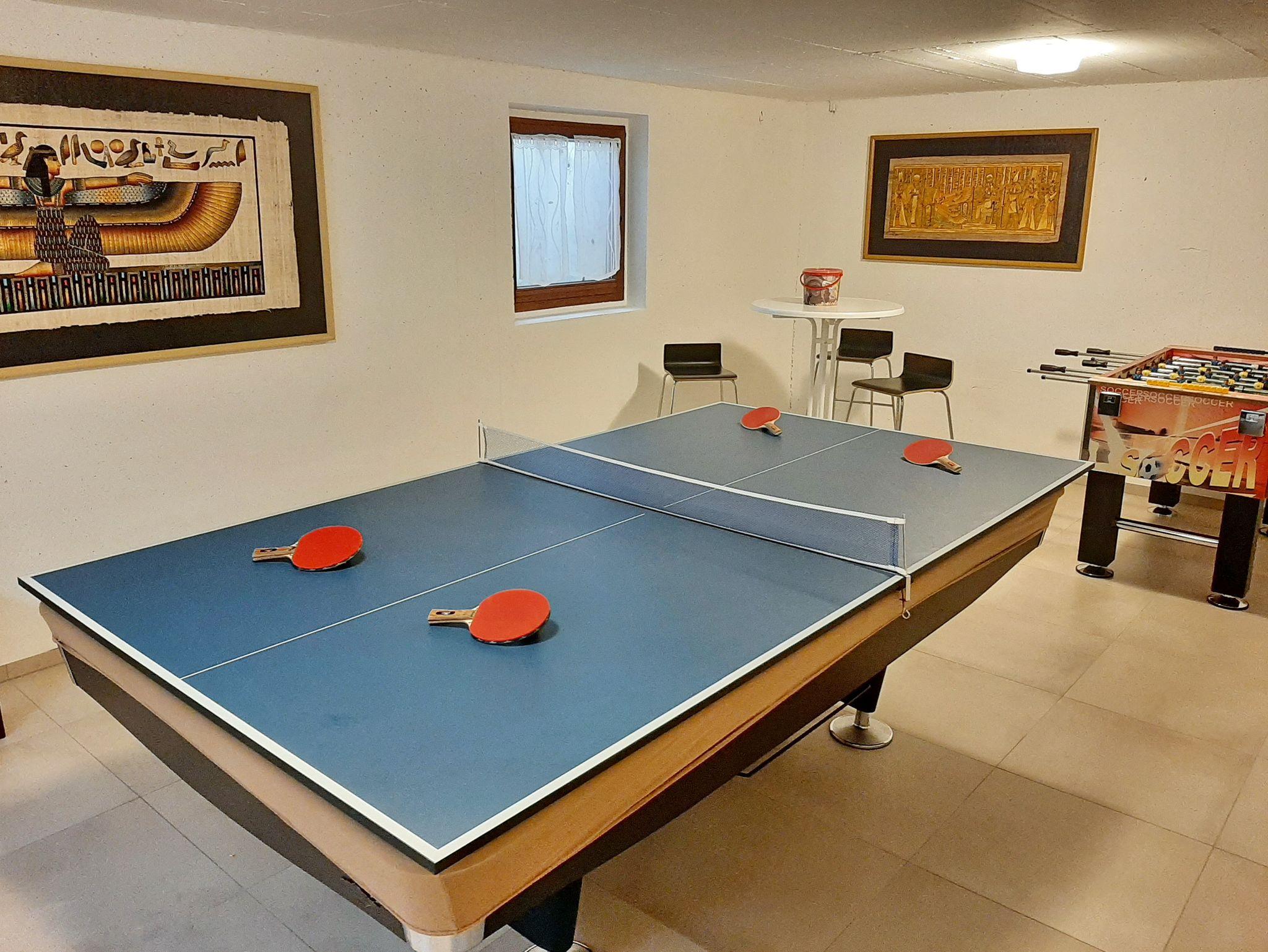 Das Ferienhaus erstreckt sich über 4 Etagen. Im Erdgeschoss erwartet Sie eine großzügige Diele, eine sehr gut ausgestattete Küche mit großem Essbereich, ein gemütliches Wohnzimmer mit Couch, Fernseher und einem weiteren Esstisch sowie ein Gäste-WC. Die Schlafräume befinden sich in der ersten Etage, ebenso ein großes Badezimmer mit Doppelwaschbecken, WC, Dusche und Badewanne. Das Schlafzimmer 1 bietet ein klassisches Doppelbett und Zugang zum Balkon, Schlafzimmer 2 ist mit einem französischen Bett von 1,40 m ausgestattet und Schlafzimmer 3 mit einem franz. Bett von 1,60 m. Das Schlafzimmer 3 hat ein eigenes kl. Bad mit Dusche / WC. Im Dachgeschoss befindet sich ein gemütliches Studio mit Balkon, eigener Küche und einem großen Arbeits-/Schreibtisch, sowie Fernseher und DVD. Die dort befindliche Schlafcouch bietet ideal Platz für max. 2 Kinder. Im Keller steht Ihnen ein Hobbyraum mit 8ft Billardtisch, Tischtennisplatte , Kicker (Turnierniveau), sowie eine elektronische Dartscheibe und im Waschraum eine Waschmaschine und ein Trockner zur Verfügung. Zudem können Sie gerne die zum Haus gehörenden Sportgeräte, wie Stand-Up-Paddel, Schlauchboot und drei Fahrräder (nicht verkehrssicher) und Picknickstühle kostenlos benützen.