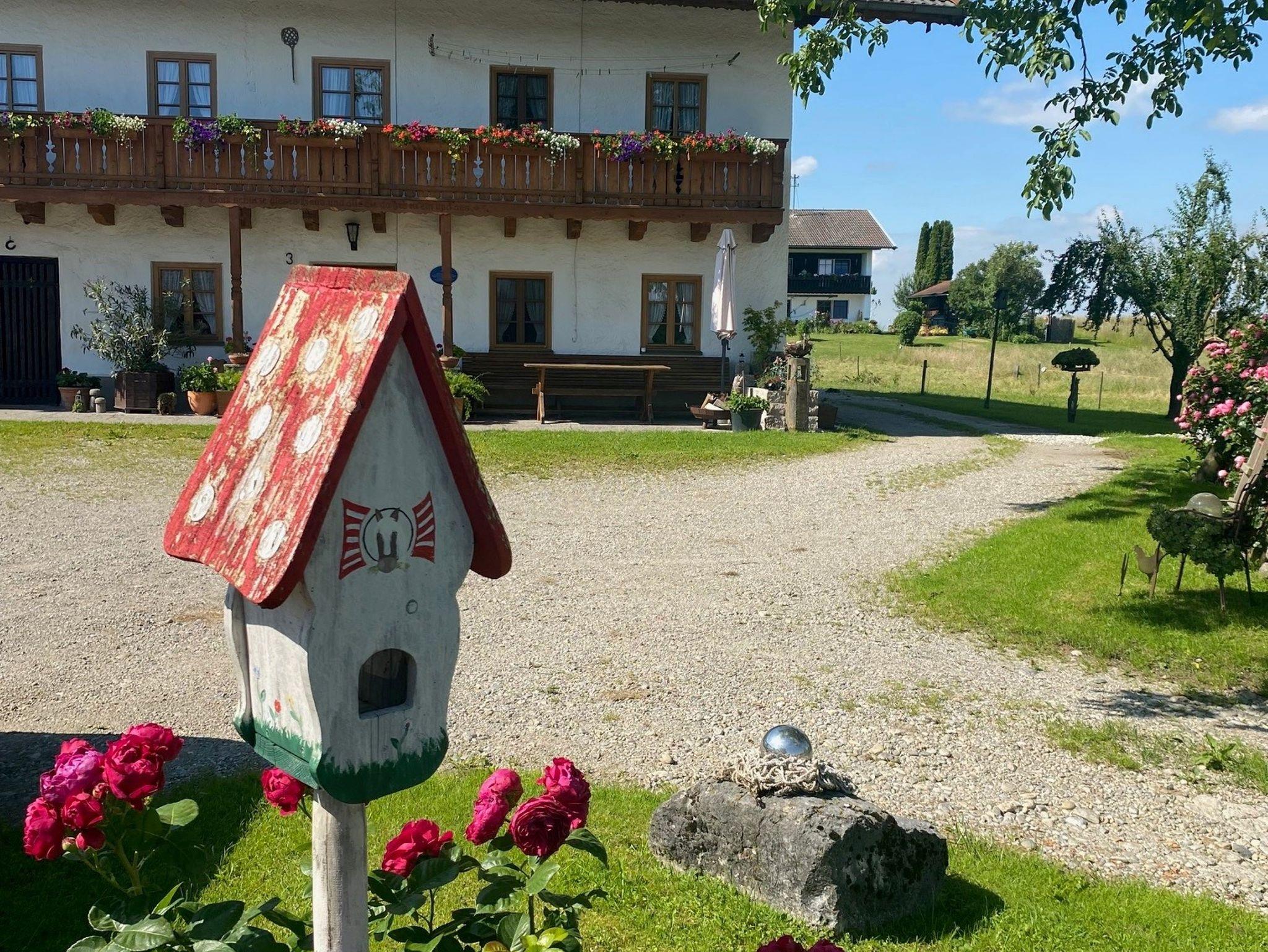 Familienfreundlicher, bewirtschafteter Bauernhof in ruhiger Lage. Im Wald- und Moorgebiet auf einer kleinen Anhöhe zwischen dem Chiemsee und der obb. Seenplatte. Kutschenfahrt ins Blaue nach Absprache möglich (gegen Gebühr), ca. 1 km außerhalb des Ortes. Rad- und Wanderwege ab Haus.