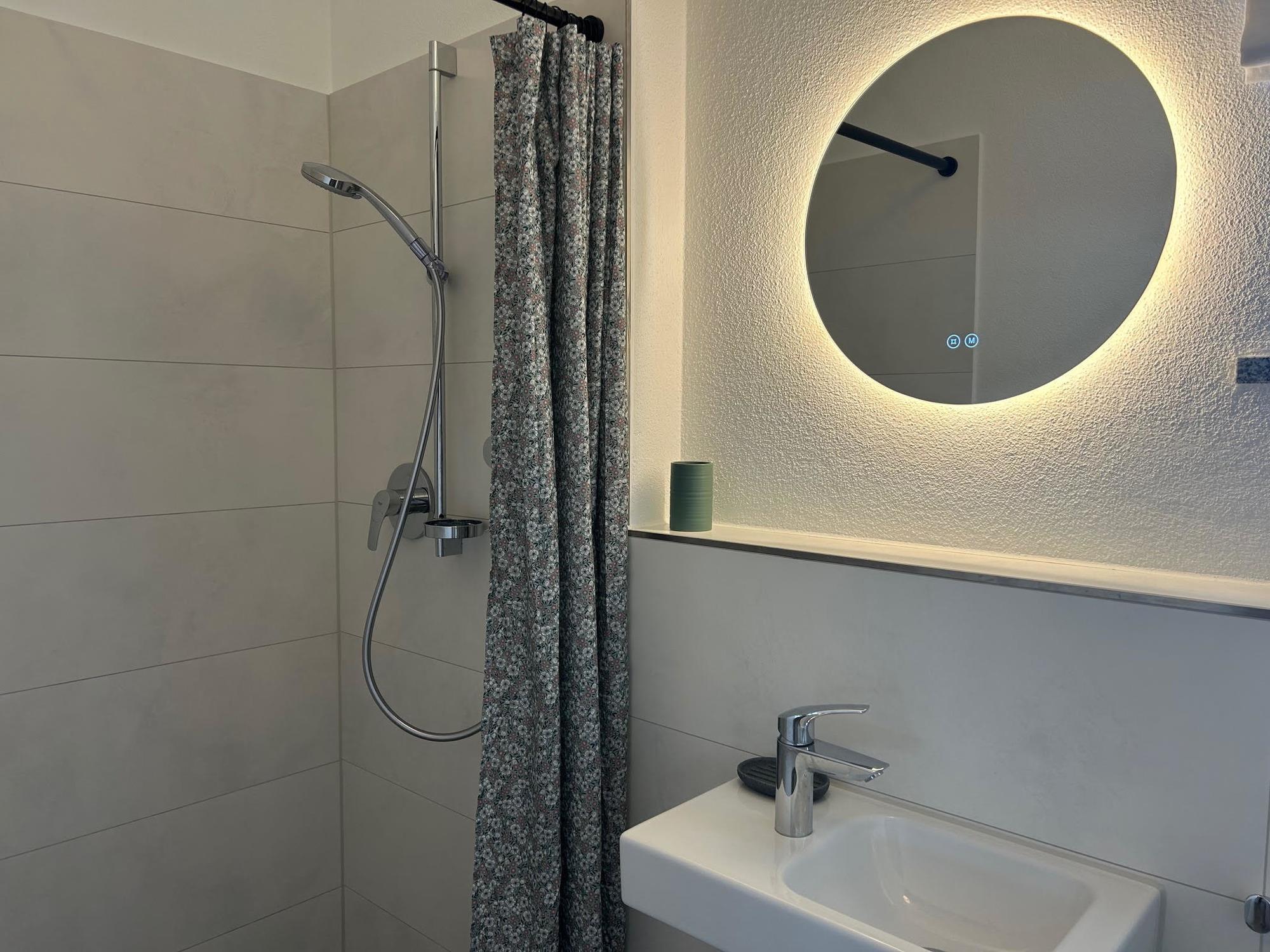 Badeværelse med bruser og badekar