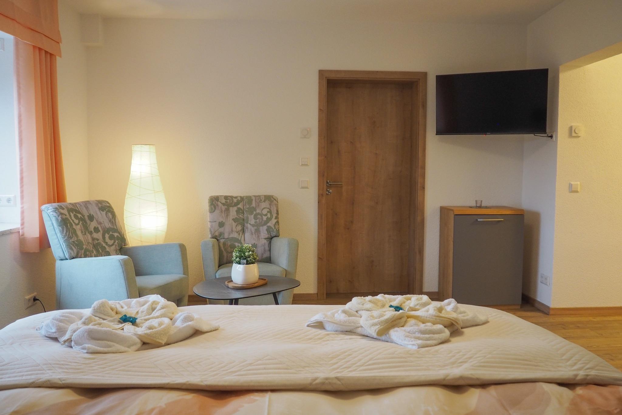 Denne kompakte lejlighed i stueetagen tilbyder komfort og bekvemmelighed i den fredelige udkant af Breitenbrunn, ideel til par eller solorejsende, der søger en rolig flugt. Det hyggelige opholdsområde fører ind i et veludstyret køkken med en keramisk/elektrisk kogeplade, mikroovn, opvaskemaskine, køleskab, kaffemaskine, brødrister og kedel - alt sammen klar til afslappet morgenmad eller aftensmad. Et soveværelse med dobbeltseng med fladskærms-kabel-tv og et lyst badeværelse med bruser, toilet og hårtørrer afrunder de indvendige faciliteter, forstærket af varm gulvvarme overalt. Træd udenfor for at nyde din egen private 40 m² store terrasse med liggestole, havemøbler og solcreme, perfekt til afslappende eftermiddage i solen. Parkering på stedet, festspil og nærliggende skovstier (500 m) tilføjer strejf af lethed og rekreation til dit ophold. De charmerende landsbymiljøer sikrer fred, mens bageriet, restauranterne og turistinformationen kun ligger 1-2 km væk. Med skiløjper (7 km), langrendsruter (6 km), ridning (9 km) og svømning (12 km) let tilgængelige, fungerer lejligheden som en indbydende base for aktive ferier og naturferier.