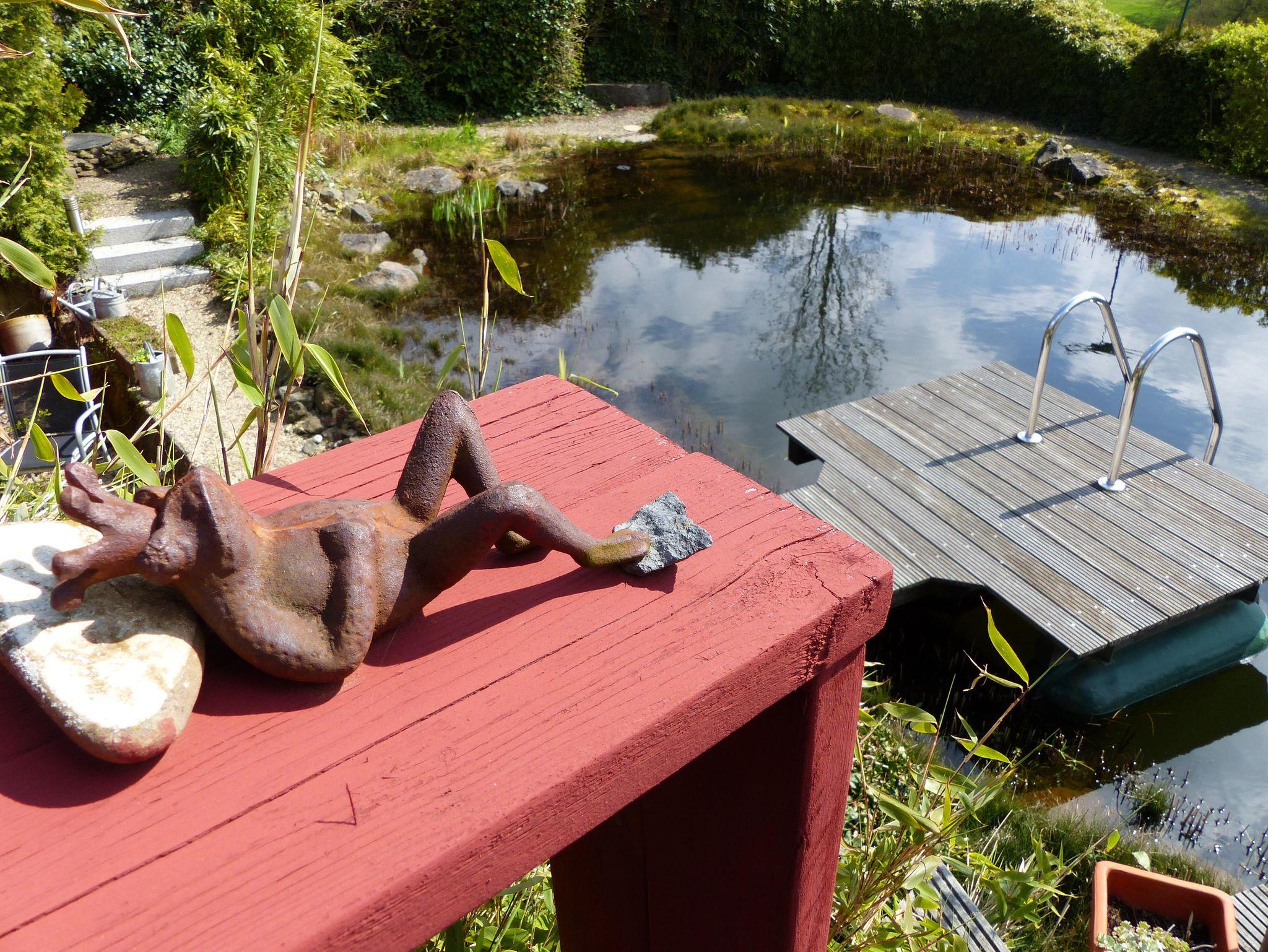 Highlight sind der Schwimmteich und die Außensauna, die Nutzung ist für unsere Gäste kostenfrei! Der Schwimmteich lockt nicht nur im Sommer sondern auch in der kühlen Jahreszeit, wenn Sie die Feuersauna im Garten nutzen. Auf einem Rundgang durch den verwunschenen Naturgarten, mit überwiegenden heimischen Sträuchern und Blumen kann immer wieder etwas Neues entdeckt werden.